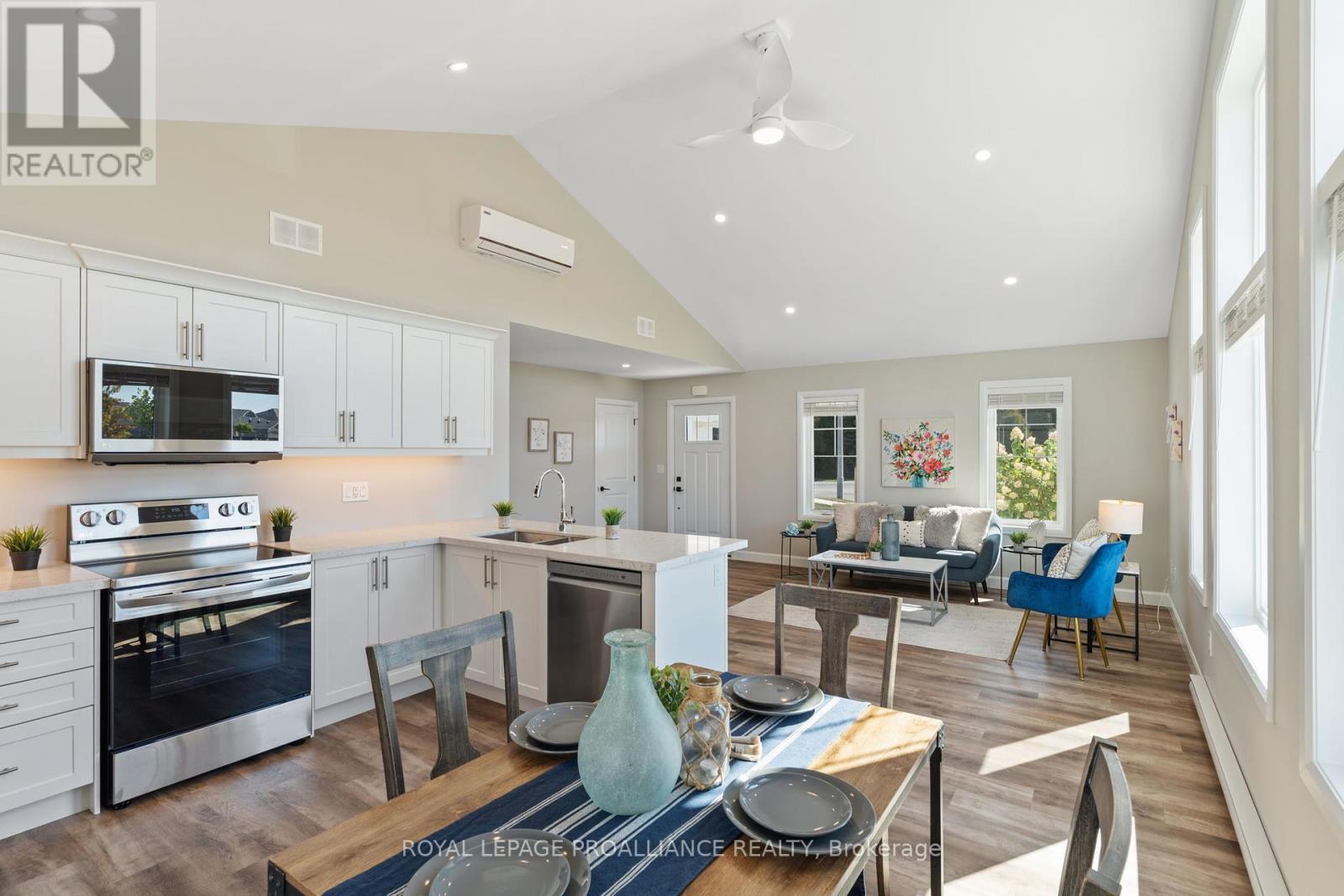 $300 MonthlyWelcome to Butler Creek, Brighton's Garden Home Condominiums! This brand-new 2-bedroom, 2-bathroom bungalow condo offers the perfect blend of modern style, comfort, and low-maintenance living in the heart of Brighton. Step inside and be greeted by 1,060 sq. ft. of bright, open-concept living space. The kitchen features contemporary finishes and flows seamlessly into the spacious living room, perfect for relaxing or entertaining. The primary bedroom includes a large closet, while the second bedroom provides plenty of space for guests, a home office, or hobbies. An oversized laundry/utility room adds valuable storage space, keeping your home organized and functional.With upgraded insulation, carpet-free flooring, and an air exchanger, comfort and efficiency are built right in. Enjoy the ease of single-level living with no basement, no stairs, and private parking included.This thoughtfully designed community is ideally located close to all that Brighton has to offer- local shops, art centre, restaurants, golf, library, community centre, and the waterfront. Outdoor enthusiasts will love nearby Presqu'ile Park, walking trails, and pickleball courts, making it easy to enjoy an active lifestyle. Immediate occupancy is available so that you can start your next chapter today. (id:51158)
