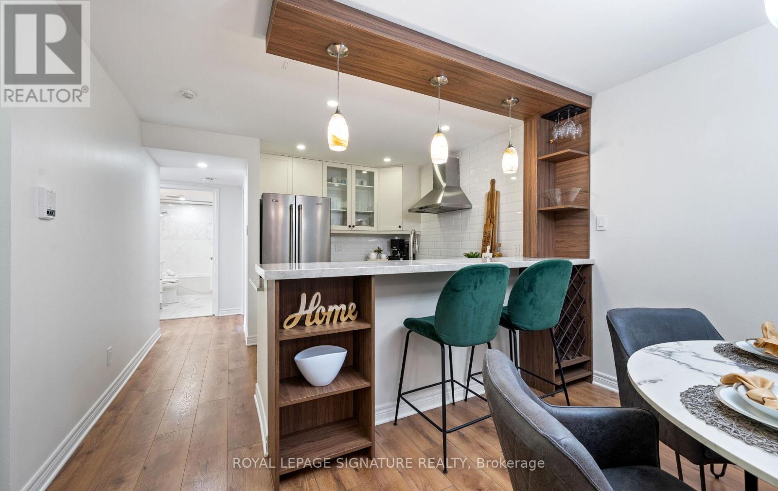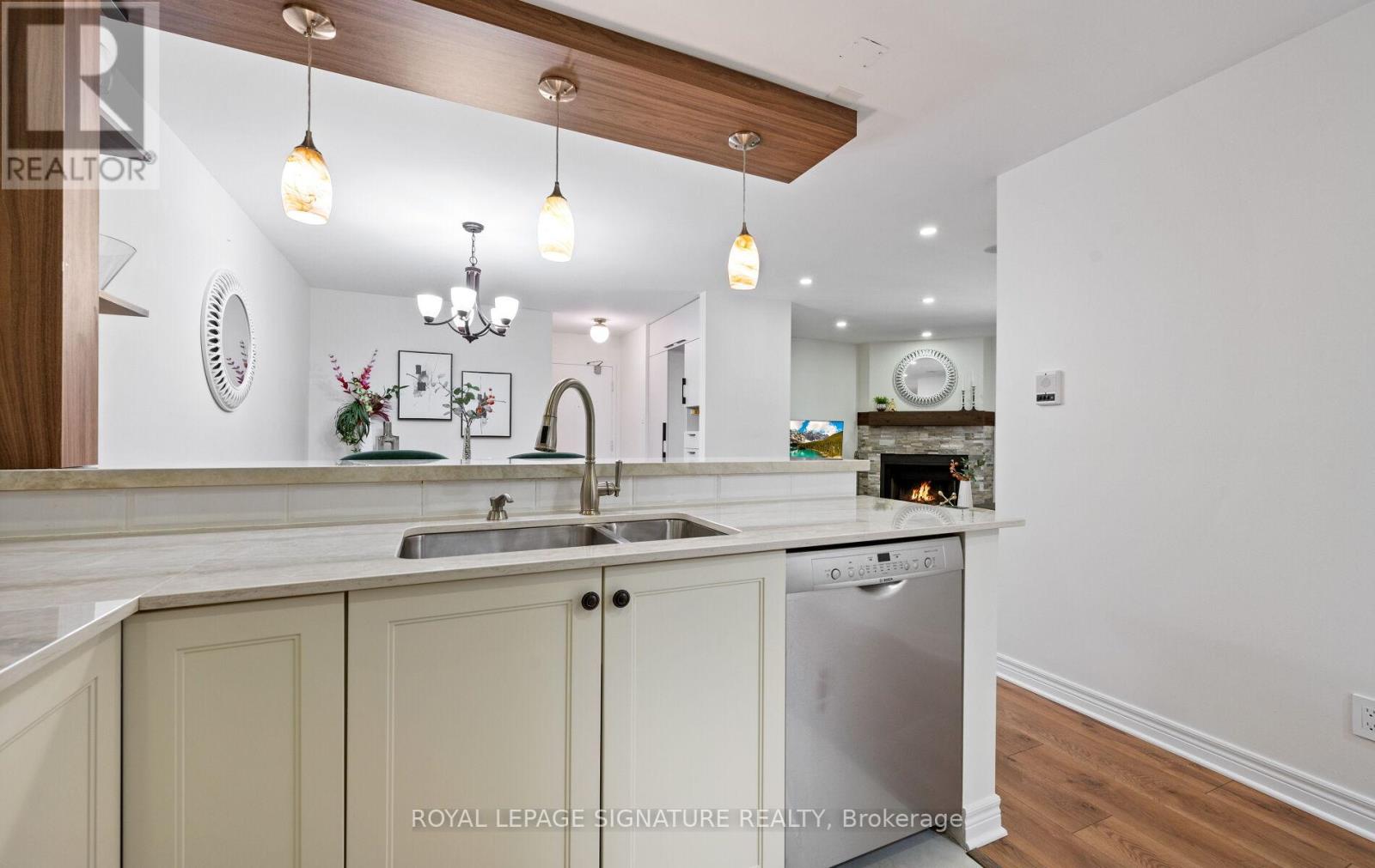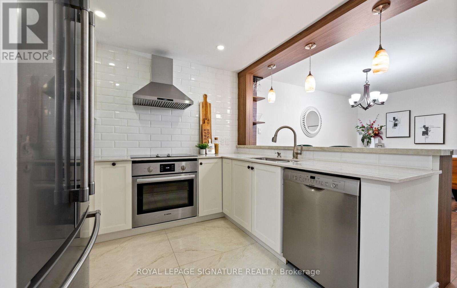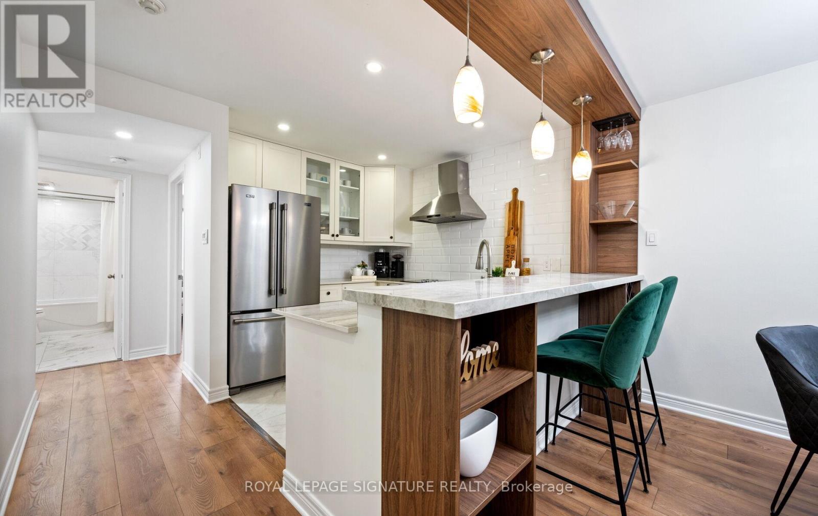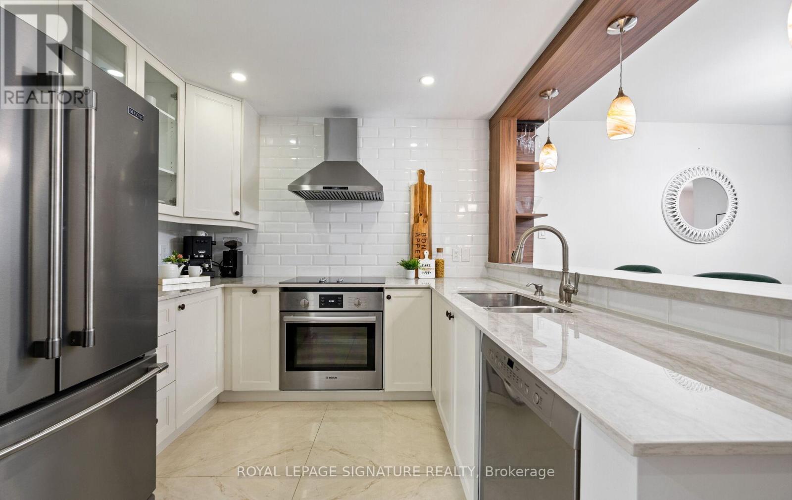 $680.65 MonthlyYou're in for a treat! Bathed in natural light, this stylishly renovated southwest-corner 3-bed, 1.5-bath Glen Abbey condo blends modern design with everyday comfort. Wide-plank laminate and marble-look tile flow into an open living/dining area with pot lights and a cozy fireplace. The kitchen shines with quartz counters, a raised breakfast bar, crisp white cabinetry, warm woodgrain built-ins, tile flooring, and premium stainless-steel appliances. The primary bedroom offers a custom walk-in closet and sleek two-piece ensuite, while the spa-inspired four-piece bath features a soaker tub and modern finishes. In-suite laundry adds convenience, and an entry pantry plus built-in coat-and-shoe closet keep life organized. Extend your living space on the private balcony with composite wood tiles and walk-in storage. Underground parking completes the package. Surrounded by scenic trails, parks, and playgrounds and within the highly ranked Abbey Park High School catchment, with Pilgrim Wood Elementary nearby this move-in-ready home offers nearly 1,100 sq. ft. of beautifully updated space. Steps to Glen Abbey Community Centre, shops, dining, and Abbey Plaza amenities, with quick four-minute access to the QEW/403. Your search stops here this Glen Abbey beauty checks all the boxes! (id:51158)
