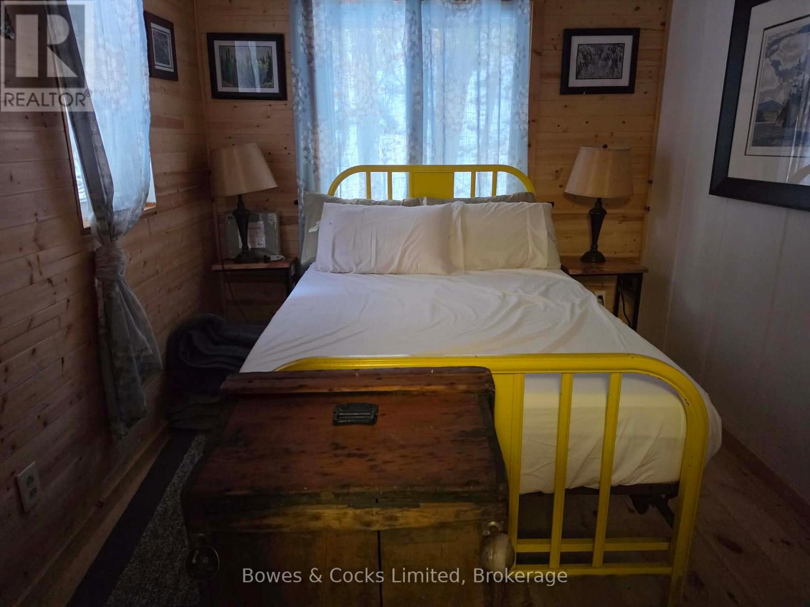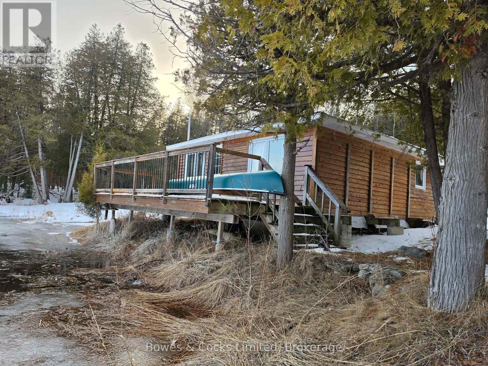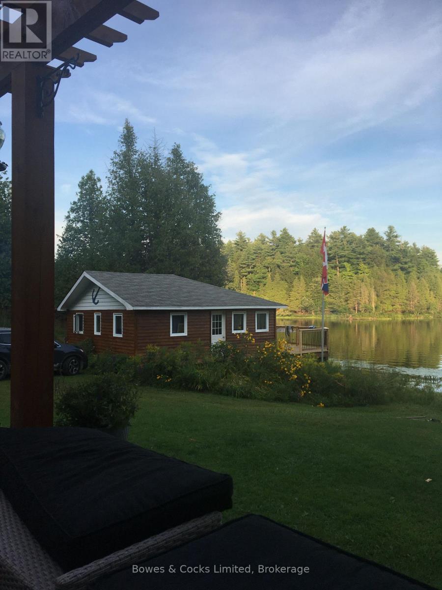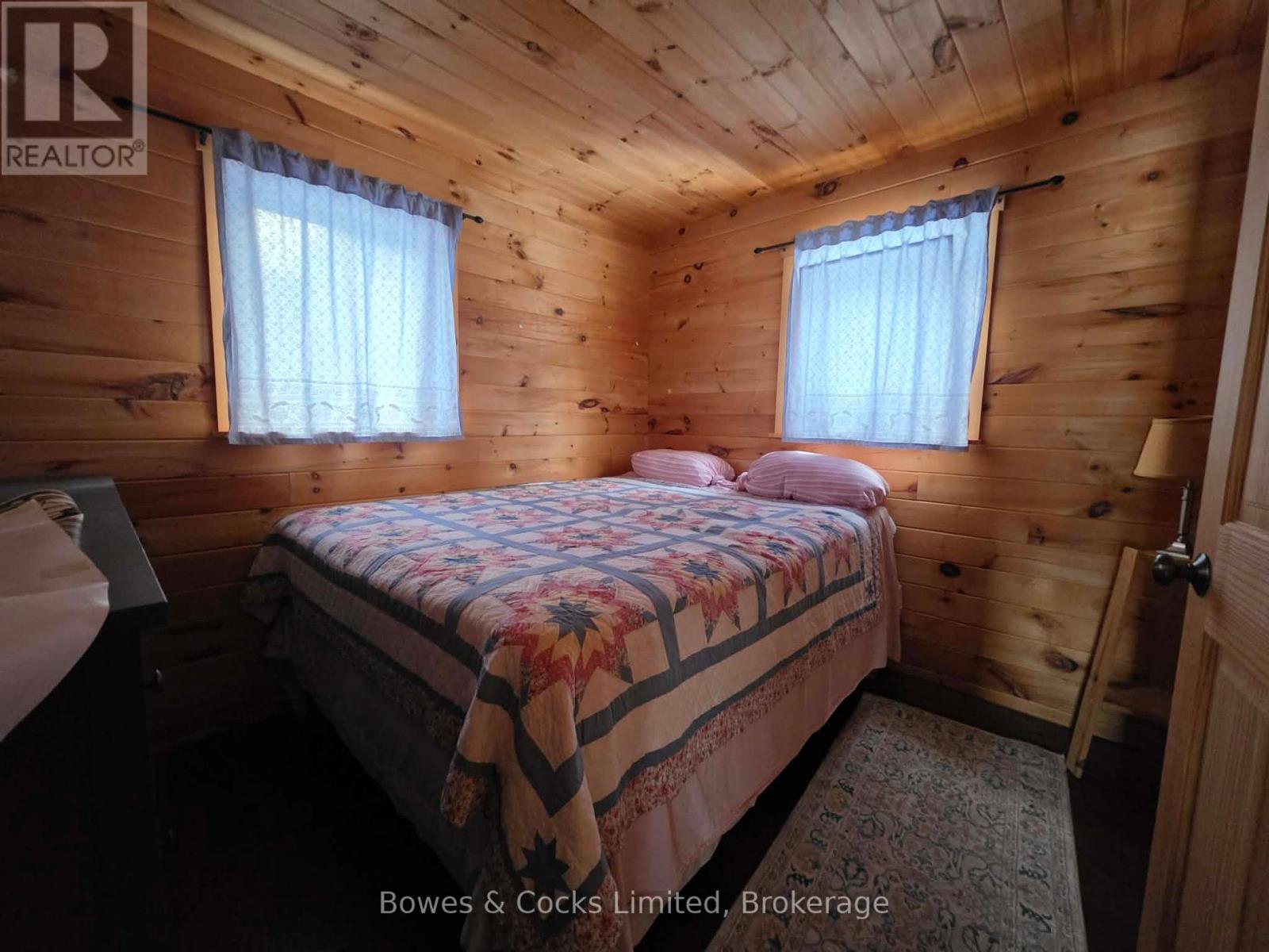 Welcome to 1022 Hummingbird Lane-an extraordinary retreat set on over 21 acres of complete privacy along the shores of beautiful Bull Lake. This rare offering blends timeless rustic character with modern comfort, creating the ultimate haven for nature lovers and outdoor enthusiasts. The main cottage exudes charm with its open-to-the-rafters design, reclaimed walnut flooring, and stained hemlock walls. Inside, you'll find a bright and spacious living/dining area, a well-appointed kitchen, two inviting bedrooms, and a full bathroom-perfectly suited for relaxed lakeside living. Complementing the main cottage is a stunning boathouse finished entirely in white pine, featuring two additional bedrooms and a generous gathering space. Step outside onto the expansive waterside deck and take in the sweeping lake views-an ideal setting for hosting family and friends. With over 564 feet of pristine frontage, endless recreational opportunities await. Spend your days swimming, boating, fishing, or exploring the extensive acreage. From Bull Lake, you can easily venture into Horseshoe, Buck, and Crotch Lakes for even more adventure. Mornings begin with the peaceful sounds of nature and coffee overlooking the water; evenings end with unmatched serenity and star-filled skies. Offering end-of-the-road seclusion with no neighbours in sight, this property is perfectly suited as a family compound or an exceptional investment opportunity with potential for severance. A truly unique chance to own your own private slice of paradise. (id:51158)