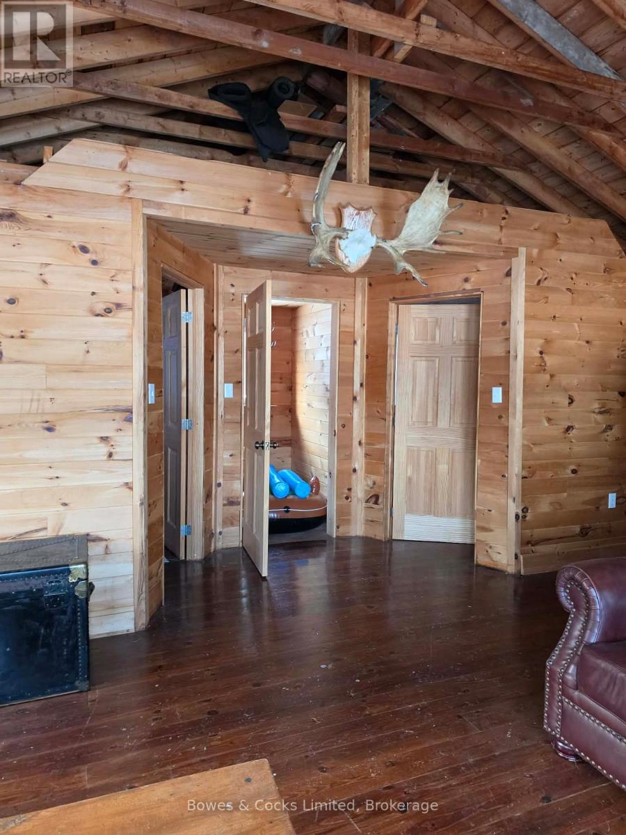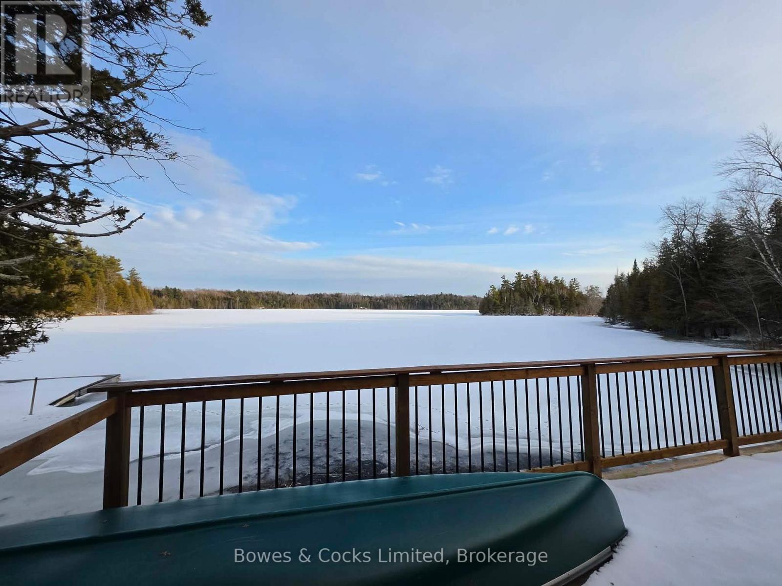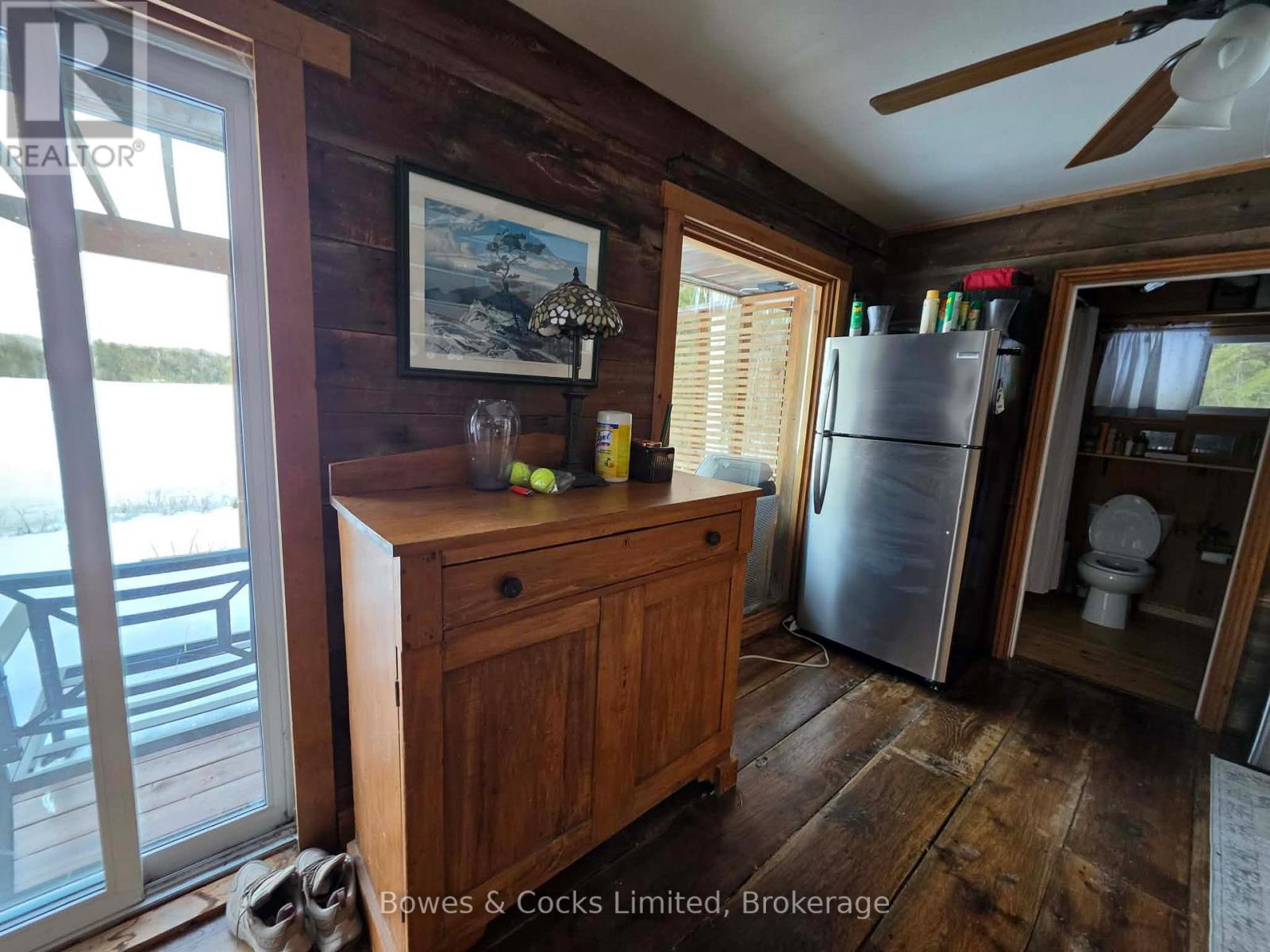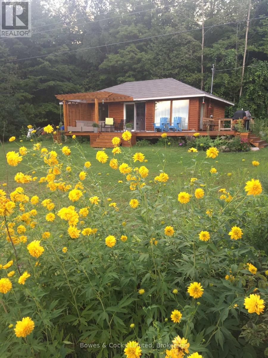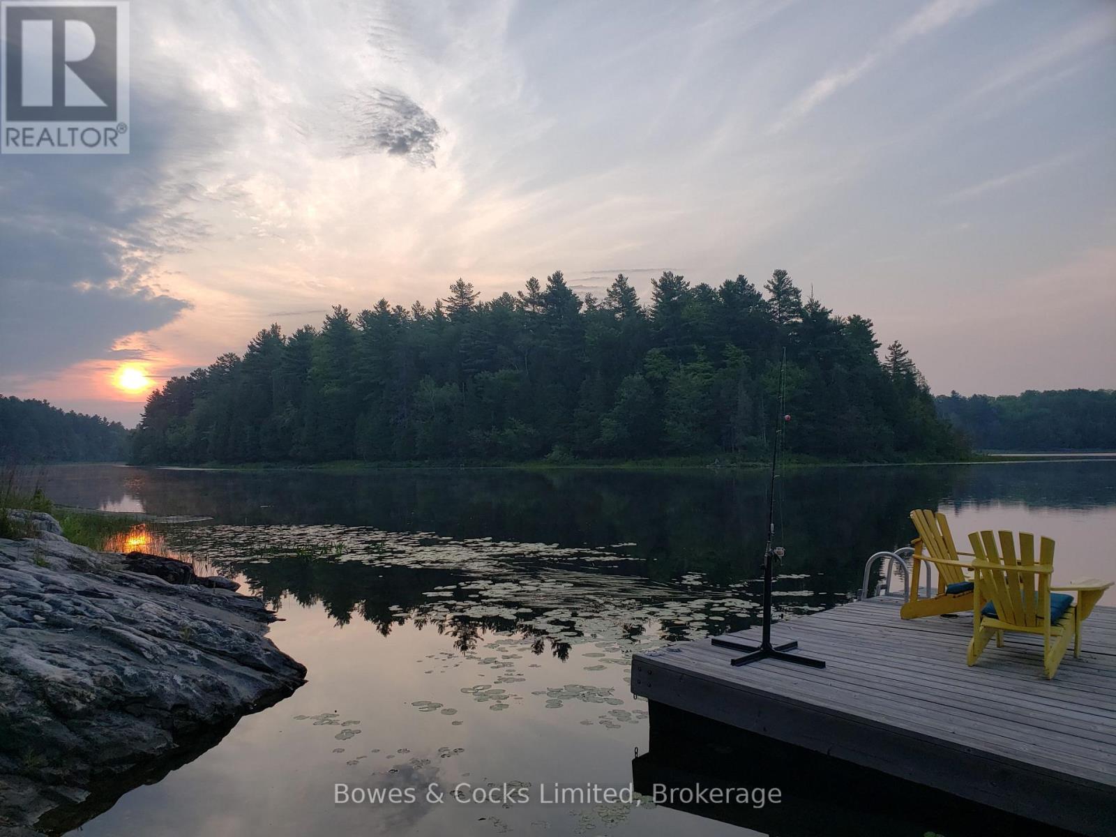 Welcome to 1022 Hummingbird Lane-an extraordinary retreat set on over 21 acres of complete privacy along the shores of beautiful Bull Lake. This rare offering blends timeless rustic character with modern comfort, creating the ultimate haven for nature lovers and outdoor enthusiasts. The main cottage exudes charm with its open-to-the-rafters design, reclaimed walnut flooring, and stained hemlock walls. Inside, you'll find a bright and spacious living/dining area, a well-appointed kitchen, two inviting bedrooms, and a full bathroom-perfectly suited for relaxed lakeside living. Complementing the main cottage is a stunning boathouse finished entirely in white pine, featuring two additional bedrooms and a generous gathering space. Step outside onto the expansive waterside deck and take in the sweeping lake views-an ideal setting for hosting family and friends. With over 564 feet of pristine frontage, endless recreational opportunities await. Spend your days swimming, boating, fishing, or exploring the extensive acreage. From Bull Lake, you can easily venture into Horseshoe, Buck, and Crotch Lakes for even more adventure. Mornings begin with the peaceful sounds of nature and coffee overlooking the water; evenings end with unmatched serenity and star-filled skies. Offering end-of-the-road seclusion with no neighbours in sight, this property is perfectly suited as a family compound or an exceptional investment opportunity with potential for severance. A truly unique chance to own your own private slice of paradise. (id:51158)