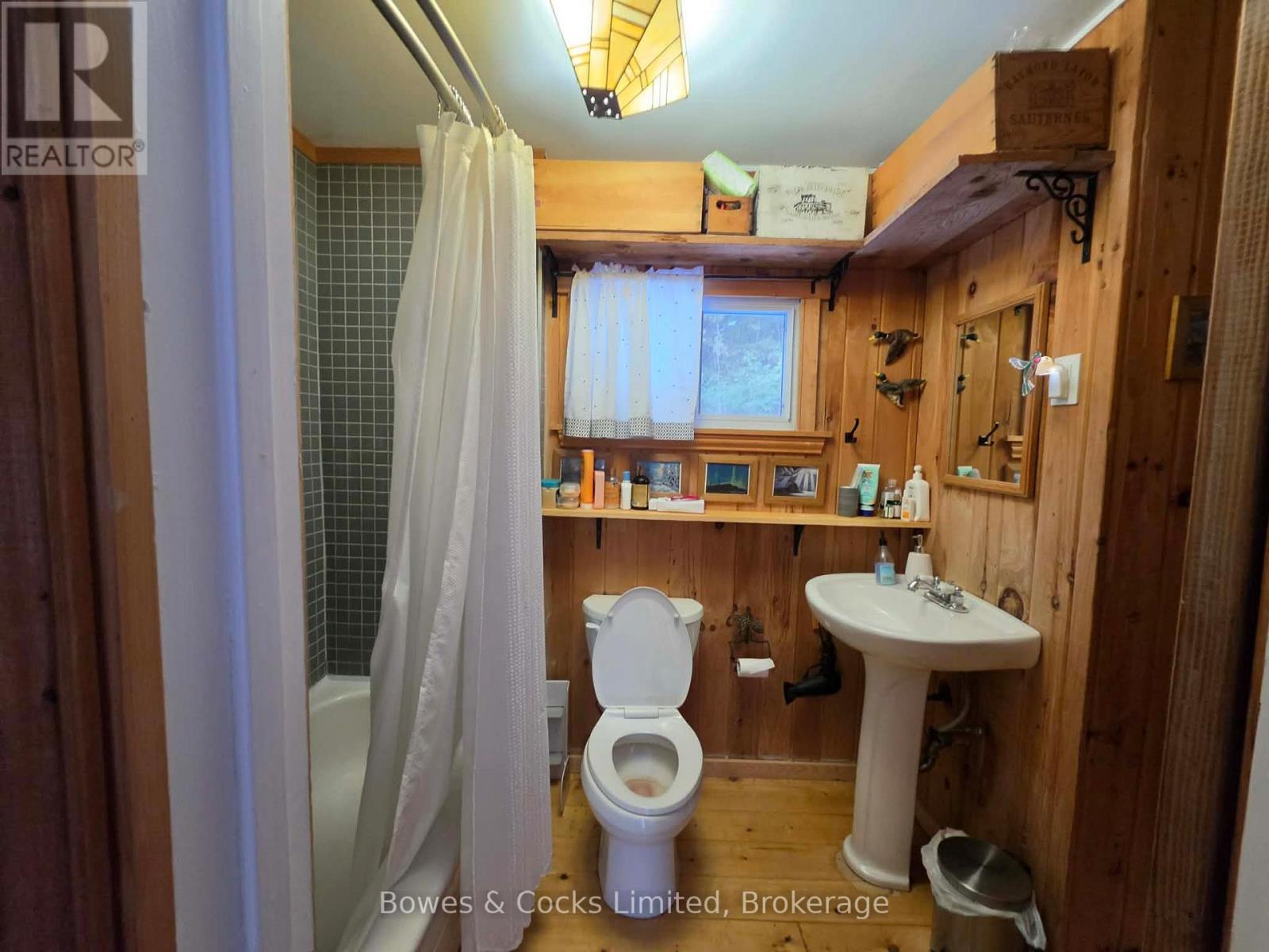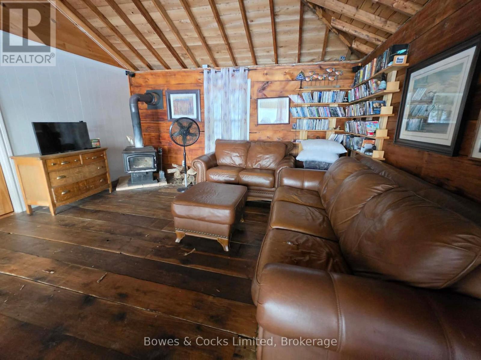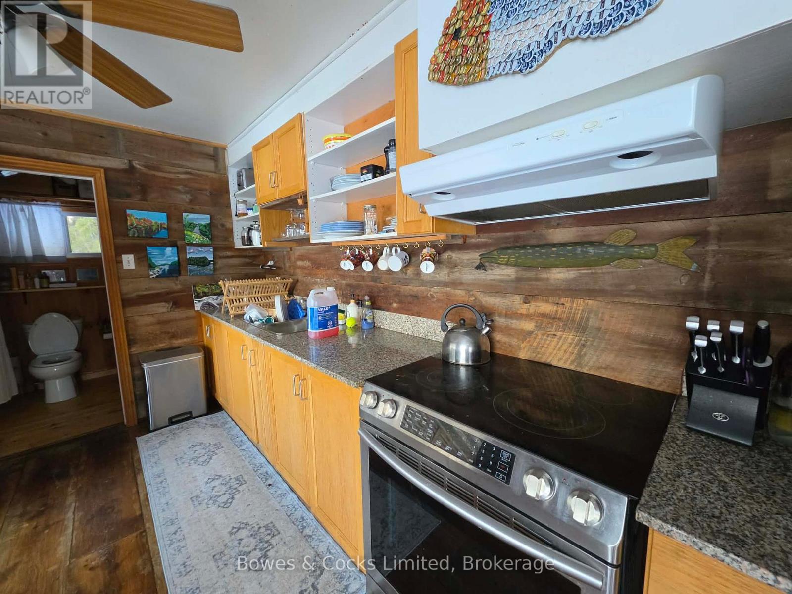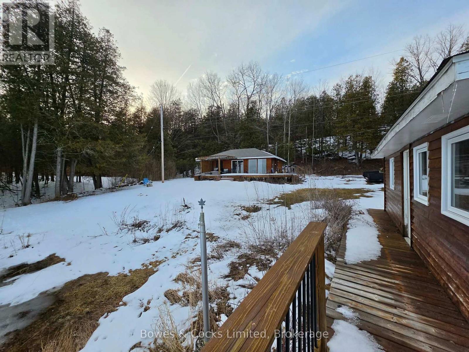 Welcome to 1022 Hummingbird Lane-an extraordinary retreat set on over 21 acres of complete privacy along the shores of beautiful Bull Lake. This rare offering blends timeless rustic character with modern comfort, creating the ultimate haven for nature lovers and outdoor enthusiasts. The main cottage exudes charm with its open-to-the-rafters design, reclaimed walnut flooring, and stained hemlock walls. Inside, you'll find a bright and spacious living/dining area, a well-appointed kitchen, two inviting bedrooms, and a full bathroom-perfectly suited for relaxed lakeside living. Complementing the main cottage is a stunning boathouse finished entirely in white pine, featuring two additional bedrooms and a generous gathering space. Step outside onto the expansive waterside deck and take in the sweeping lake views-an ideal setting for hosting family and friends. With over 564 feet of pristine frontage, endless recreational opportunities await. Spend your days swimming, boating, fishing, or exploring the extensive acreage. From Bull Lake, you can easily venture into Horseshoe, Buck, and Crotch Lakes for even more adventure. Mornings begin with the peaceful sounds of nature and coffee overlooking the water; evenings end with unmatched serenity and star-filled skies. Offering end-of-the-road seclusion with no neighbours in sight, this property is perfectly suited as a family compound or an exceptional investment opportunity with potential for severance. A truly unique chance to own your own private slice of paradise. (id:51158)