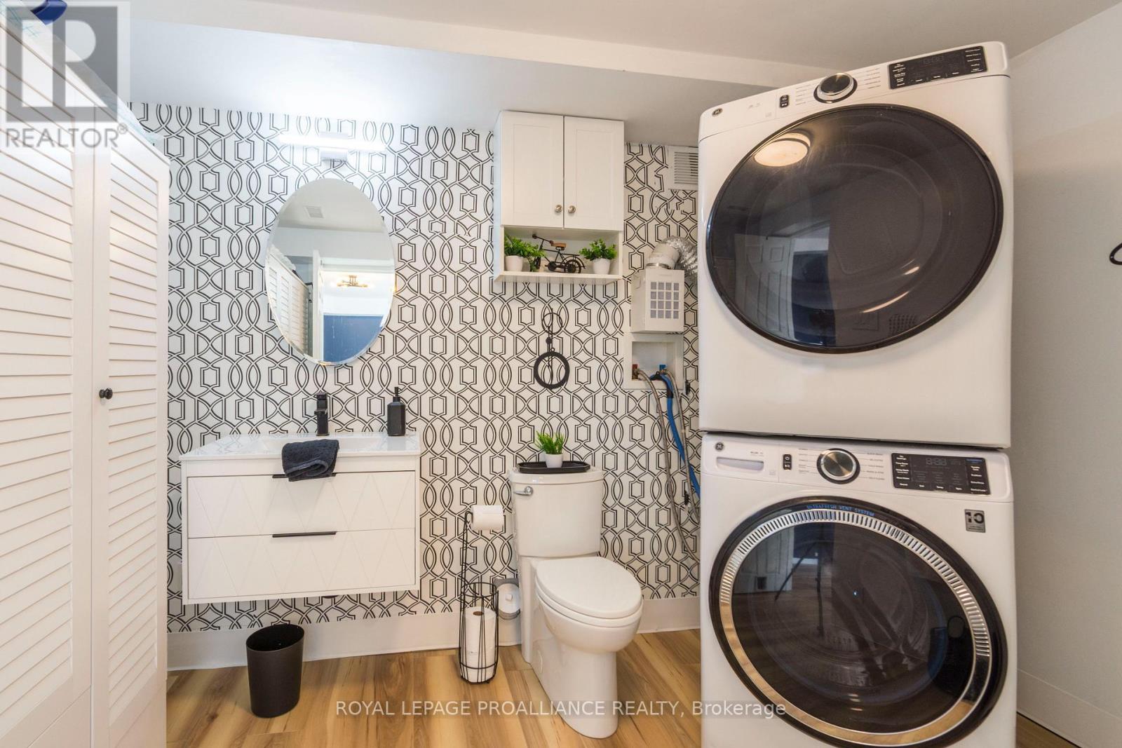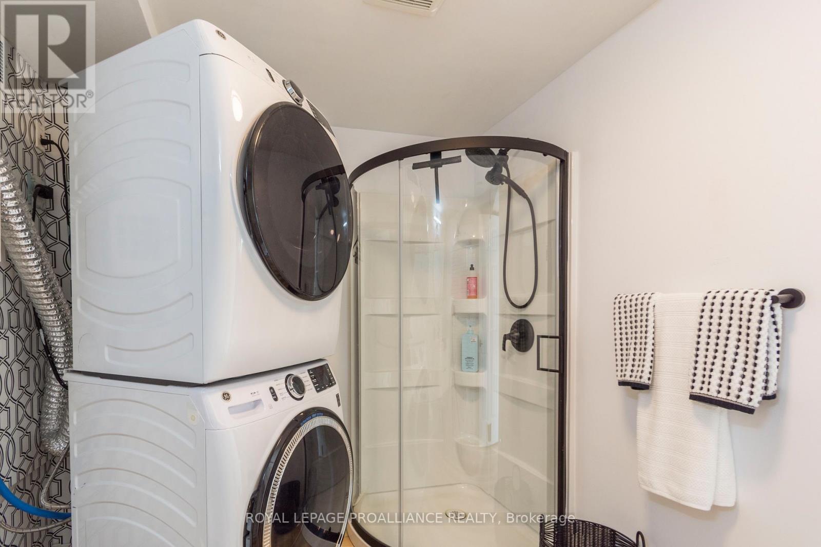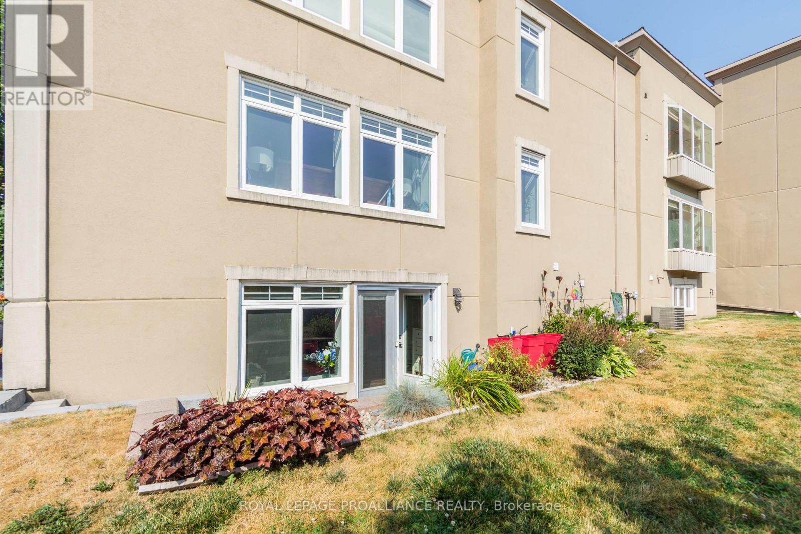 $1,285.35 MonthlyDiscover a rate opportunity at the Trillium Grand - a spacious condominium offering nearly 3,000 sq. ft. of finished living space. Perfectly located in Belleville's desirable east end, this two-level unit provides the feel of a full-sized home with all the convenience of low-maintenance condo living. The main level (1,500 sq. ft.) is designed for easy living with a bright, open-concept layout, modern white kitchen, and generous living and dining areas filled with natural light. Two large bedrooms include a primary suite with dual closets and private en-suite bath, plus an additional full bathroom for family or guests. The lower level (1,440 sq. ft.) sets this home apart, offering endless possibilities with spacious rec room or hobby space, a three-piece bath, and a large storage/workshop area. Ideal for a home business, an extended family member, or hobby enthusiasts looking for room to create and store. Enjoy your own garden walkout, along with building amenities including an exercise room and party room. With two parking spaces, elevator access for comfort and accessibility, and stress-free upkeep, this unique home blends condo convenience with the expansive space of a house. (id:51158)