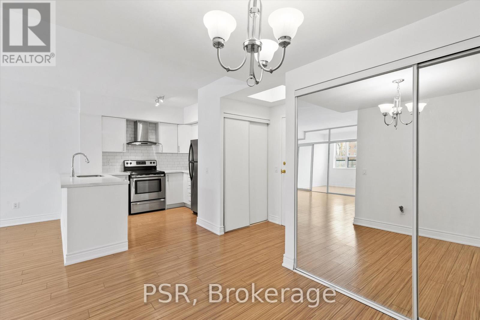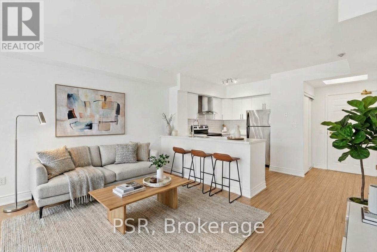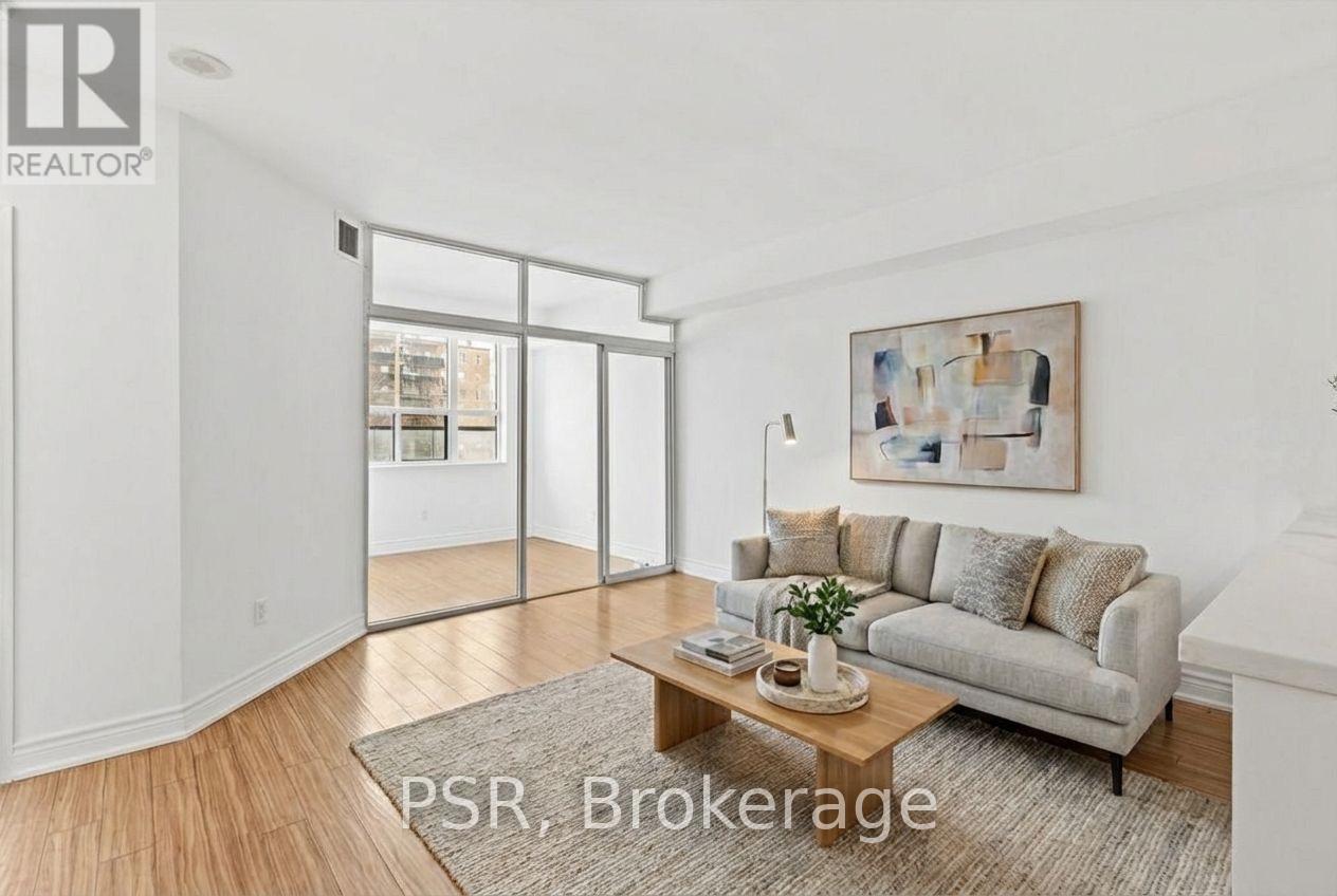 Presenting a superb 1-bedroom + den condo set along the Yonge Street corridor in an established Thornhill community. A perfectly proportioned and planned layout offers generously sized principal rooms, plus a glass-enclosed den that can easily function as a second bedroom or home office - ideal for a single professional, couple, or young family seeking a smart and flexible living space. This unit features a beautifully updated and highly functional kitchen with expansive quartz countertops, full-size stainless steel appliances, a subway tile backsplash, and a practical double sink, blending modern style with timeless appeal. Open-concept living shines here, with the kitchen perfectly positioned to overlook both the dining and living areas, creating an inviting space for entertaining and everyday life. Large sliding glass doors in both the bedroom and den lead to a full-length balcony, seamlessly extending your living space outdoors. Freshly updated throughout with new paint, smooth plaster ceilings, LED light fixtures, custom roller blinds, a new kitchen faucet, an updated bathroom mirror, and the convenience of an ensuite washer and dryer, the unit also includes one underground parking space and a storage locker. Situated in a prime Yonge Street location just steps to groceries, restaurants, cafés, and community services, residents also enjoy excellent connectivity with easy access to transit and major roadways. Set within an established, family-friendly community known for its stable and desirable neighbourhood feel, the area features a pleasant mix of townhomes, detached homes, and condominiums surrounded by mature landscaping. (id:51158)