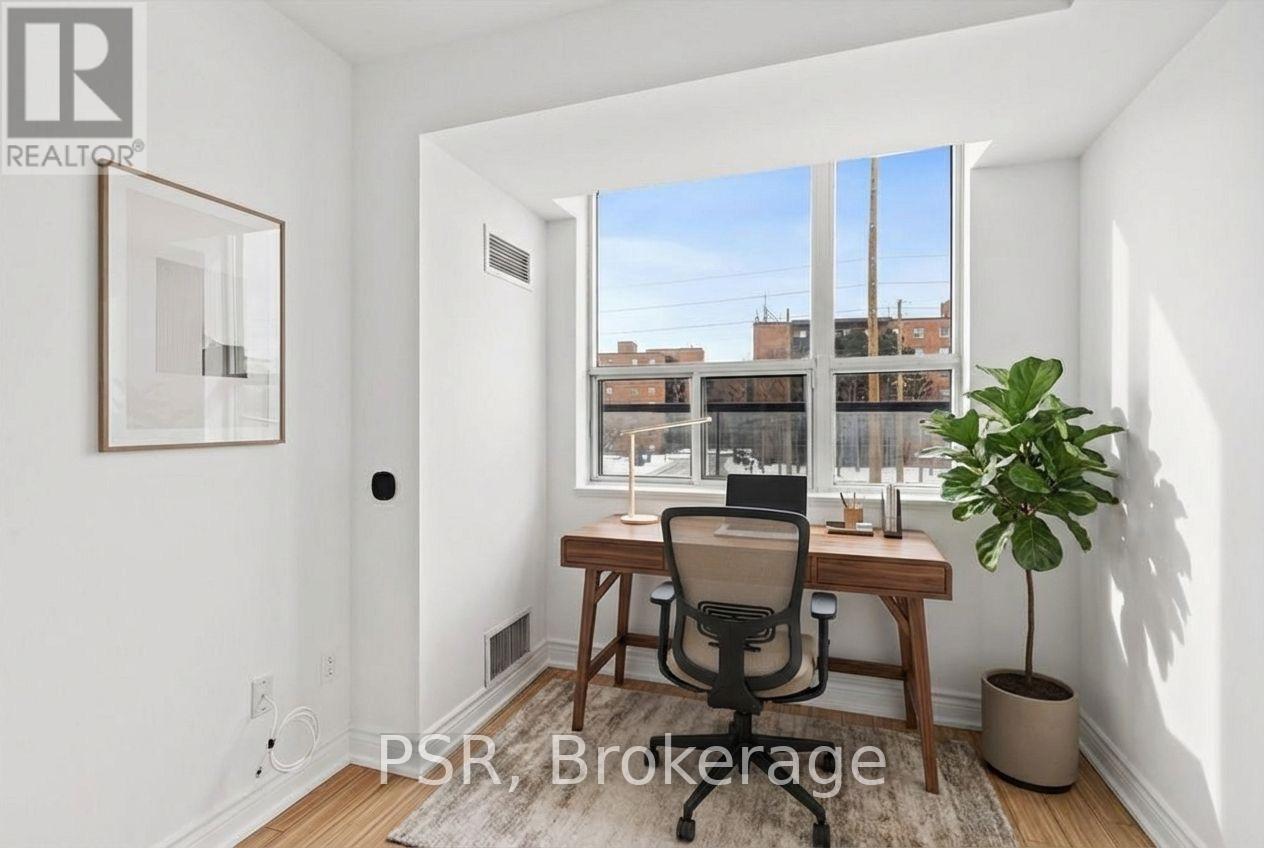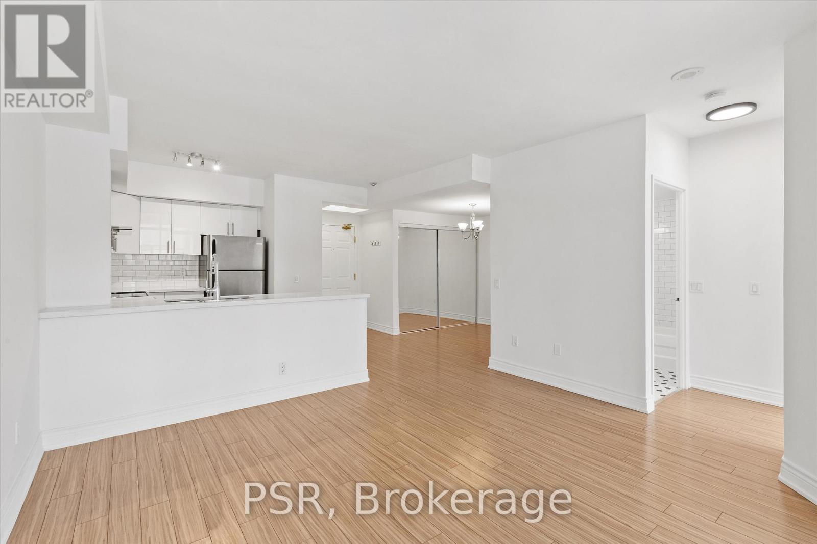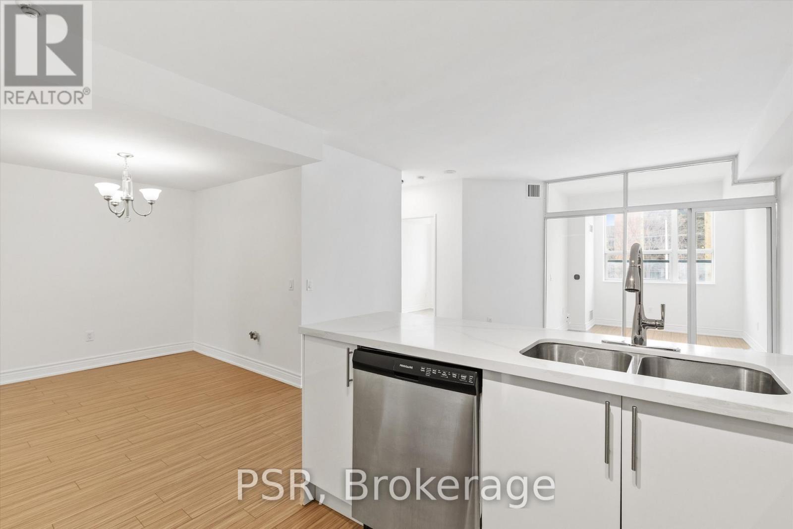 Presenting a superb 1-bedroom + den condo set along the Yonge Street corridor in an established Thornhill community. A perfectly proportioned and planned layout offers generously sized principal rooms, plus a glass-enclosed den that can easily function as a second bedroom or home office - ideal for a single professional, couple, or young family seeking a smart and flexible living space. This unit features a beautifully updated and highly functional kitchen with expansive quartz countertops, full-size stainless steel appliances, a subway tile backsplash, and a practical double sink, blending modern style with timeless appeal. Open-concept living shines here, with the kitchen perfectly positioned to overlook both the dining and living areas, creating an inviting space for entertaining and everyday life. Large sliding glass doors in both the bedroom and den lead to a full-length balcony, seamlessly extending your living space outdoors. Freshly updated throughout with new paint, smooth plaster ceilings, LED light fixtures, custom roller blinds, a new kitchen faucet, an updated bathroom mirror, and the convenience of an ensuite washer and dryer, the unit also includes one underground parking space and a storage locker. Situated in a prime Yonge Street location just steps to groceries, restaurants, cafés, and community services, residents also enjoy excellent connectivity with easy access to transit and major roadways. Set within an established, family-friendly community known for its stable and desirable neighbourhood feel, the area features a pleasant mix of townhomes, detached homes, and condominiums surrounded by mature landscaping. (id:51158)