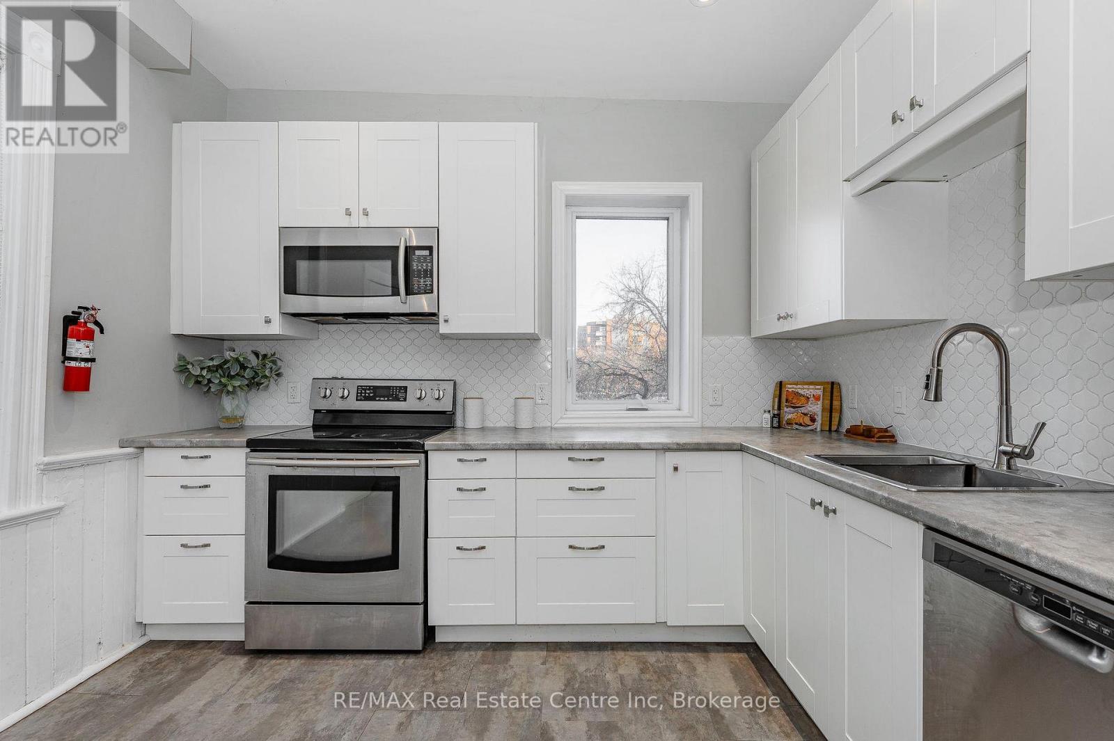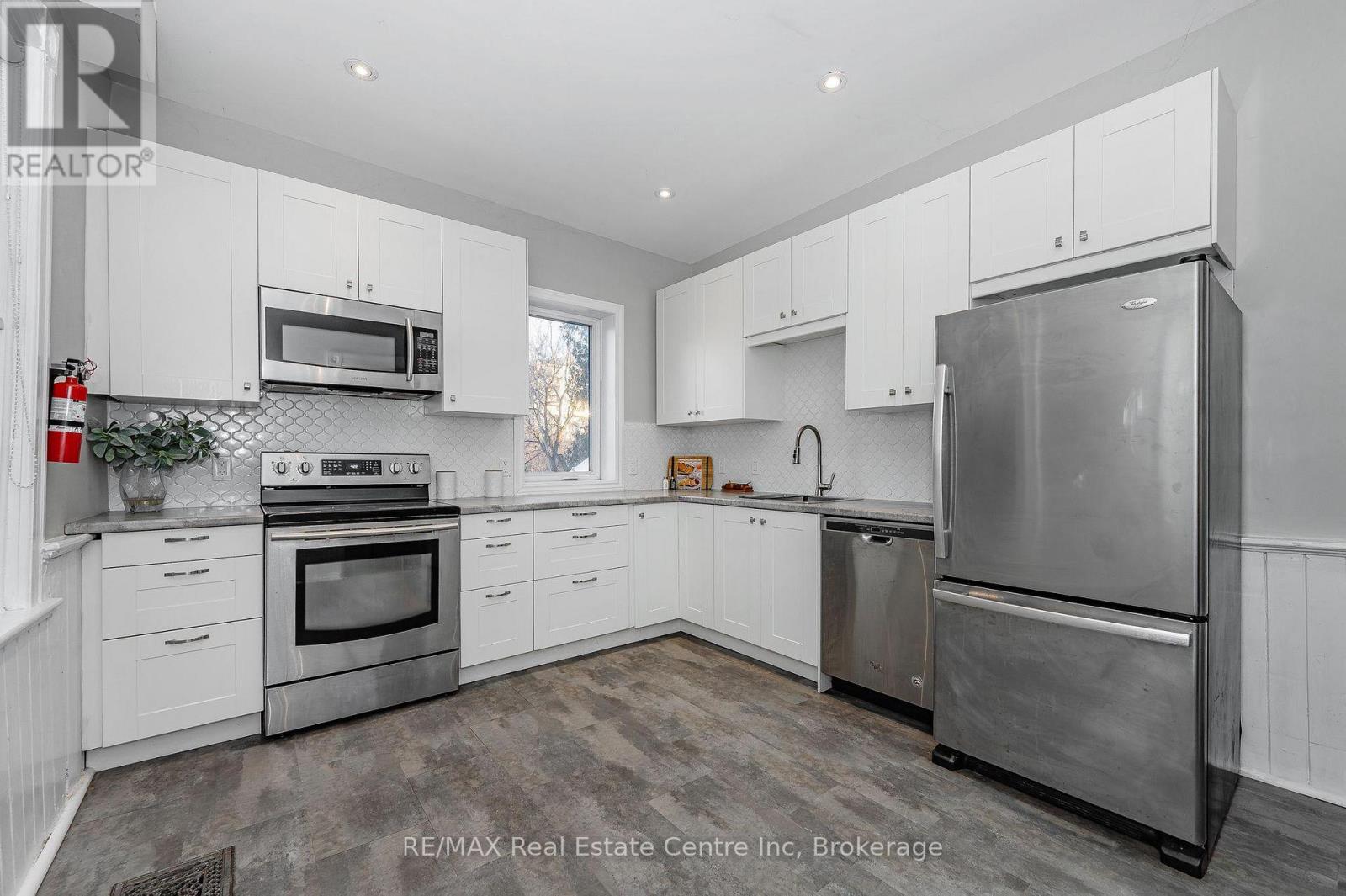 Welcome to 103 Surrey St E, beautifully renovated century home nestled in one of Guelph's most desirable locations, just a short stroll from vibrant downtown! This 3-bdrm property offers excellent upside W/the potential to add a 4th bdrm, making it especially attractive for student housing, rental investors or parents purchasing for their students. Positioned within walking distance to downtown, GO Train & University, the home sits in a high-demand rental corridor consistently sought after by students & young professionals. With student rents on the rise, prices having adjusted-rare opportunity to own a detached home under $500,000, lower interest rates & City of Guelph loosening restrictions, this represents one of the most favourable markets in recent years for student rentals & an excellent time to act. Upon entry you're greeted by bright & airy living room featuring solid hardwood floors & multiple windows. The living room flows effortlessly into spacious dining room ideal for hosting family gatherings or dinner parties with friends. Eat-in kitchen is a showstopper with fresh white cabinetry, beautiful backsplash & S/S appliances. Charming wainscoting adds character & direct access to the deck makes outdoor entertaining a breeze-perfect for BBQs with friends & family. Upstairs you'll find 3 spacious bdrms all with hardwood floors, high baseboards & large windows. Modern 3pc bath features sleek vanity & convenient stackable laundry. With room to add a 4th bdrm & zoning that allows for future possibilities, this home offers incredible flexibility! Property also includes detached garage at the back, perfect for add'l storage & parking. Home has been mechanically updated: newer furnace, wiring, windows & plumbing along with cosmetic upgrades such as the kitchen, bathroom & flooring. This property's location is unbeatable: walking distance to restaurants, boutiques, nightlife & more! Local gems like Sugo on Surrey & Zen Gardens are at your doorstep! Being sold as is. (id:51158)