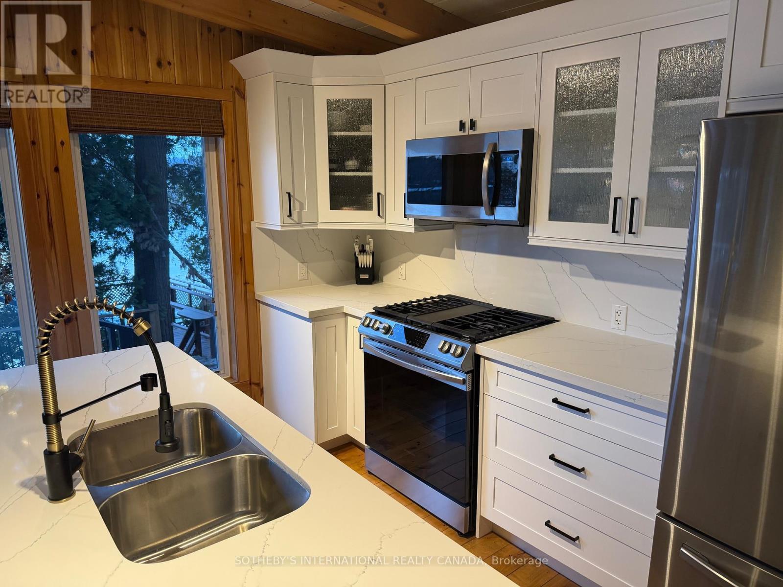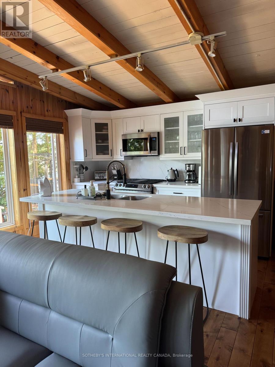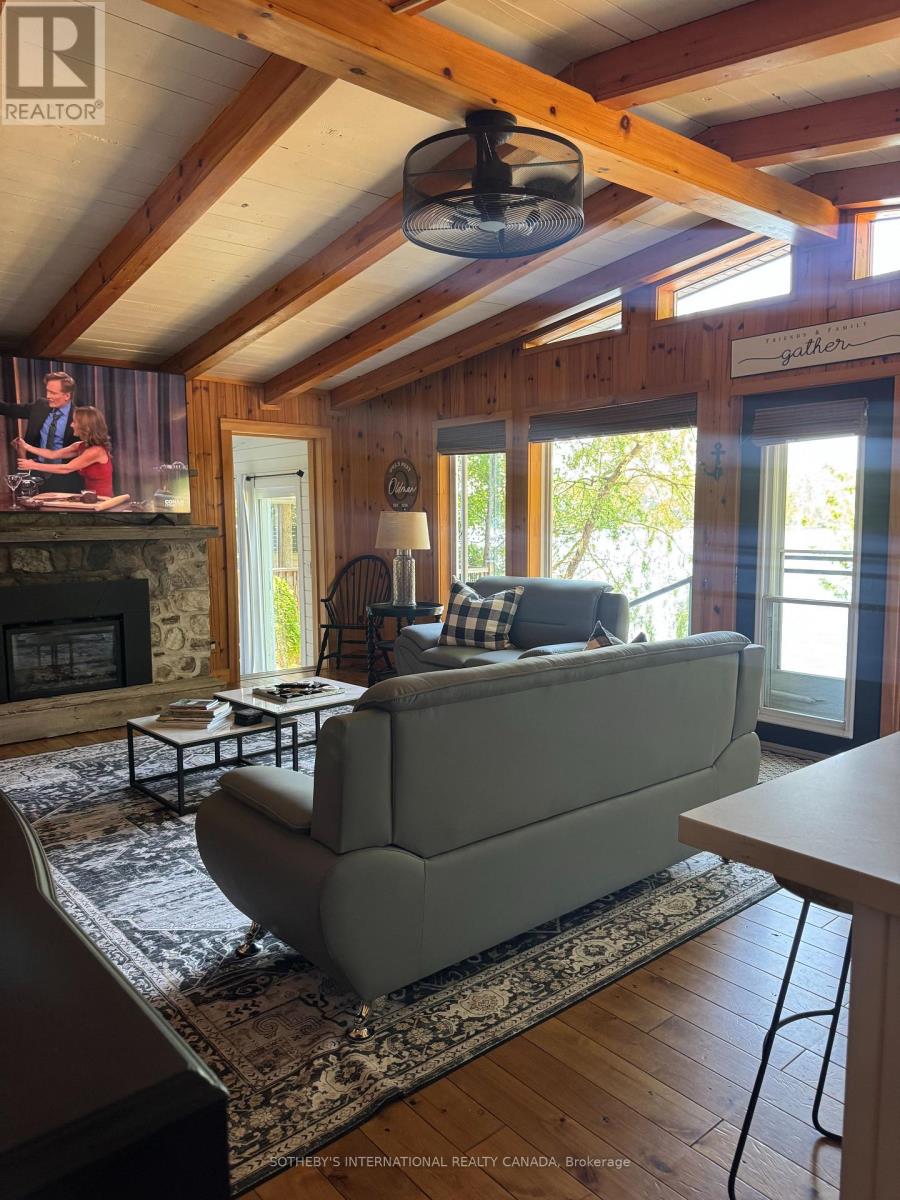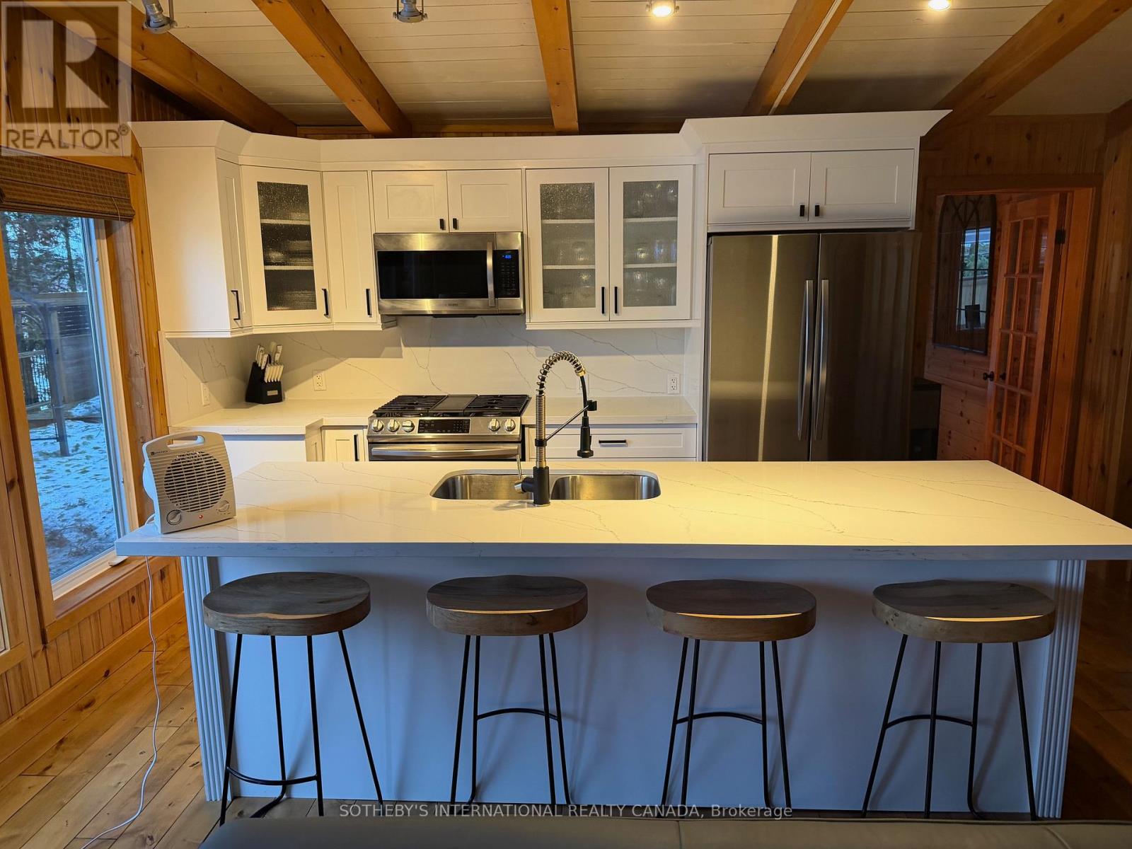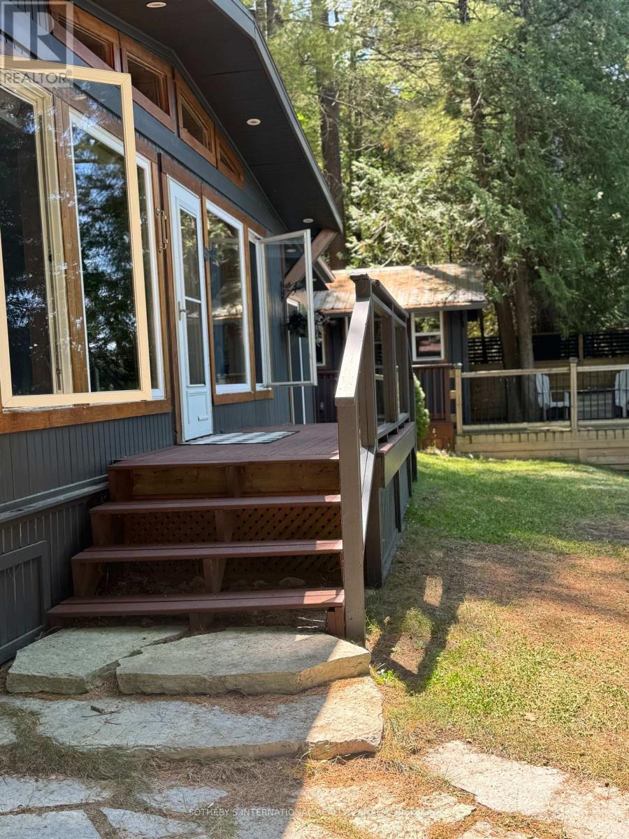 Moore Lake Gem- Charming 4+ bedroom 1 full bath panabode cottage with Boathouse and Guest Cabin on Pristine Moore Lake in Minden Hills-Haliburton. 100 feet of Sunny Western exposure shoreline on a .5 acre lot. The thoughtful layout offers a balance of gathering spaces and private retreats, ideal for hosting family and friends. Recent addition of backlot provides opportunity to build a garage. Extensive Lakeside decking and a wetslip boathouse with an upper sundeck complete this inviting Haliburton retreat.Set against a backdrop of classic Haliburton granite and mature pines, the property captures long lake views and unforgettable sunsets. . Whether enjoyed as a peaceful weekend escape or a future year-round retreat, this is a property that embodies the enduring appeal of cottage living. (id:51158)