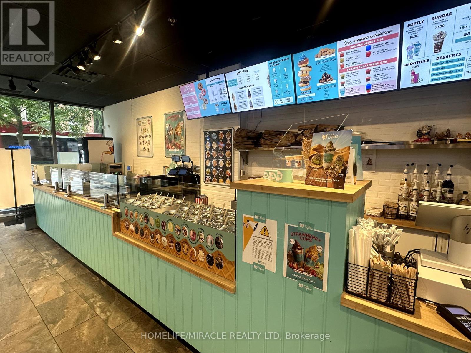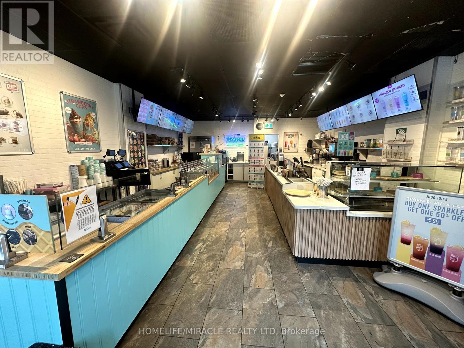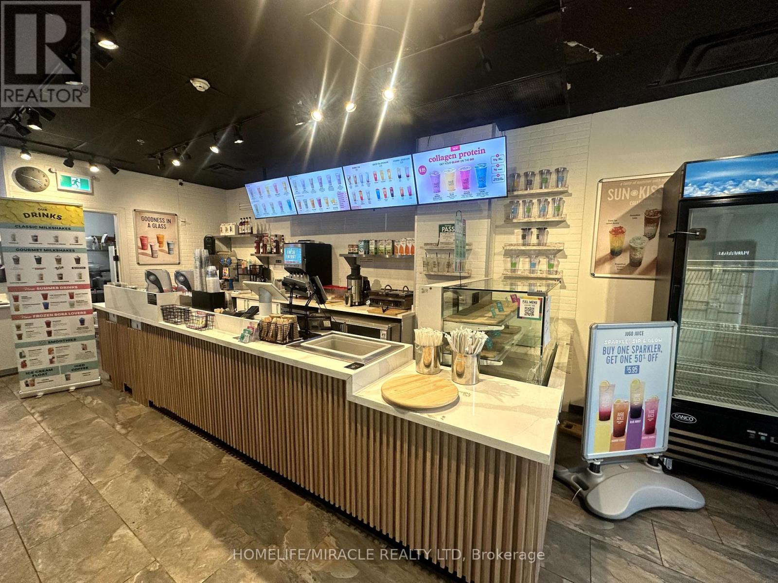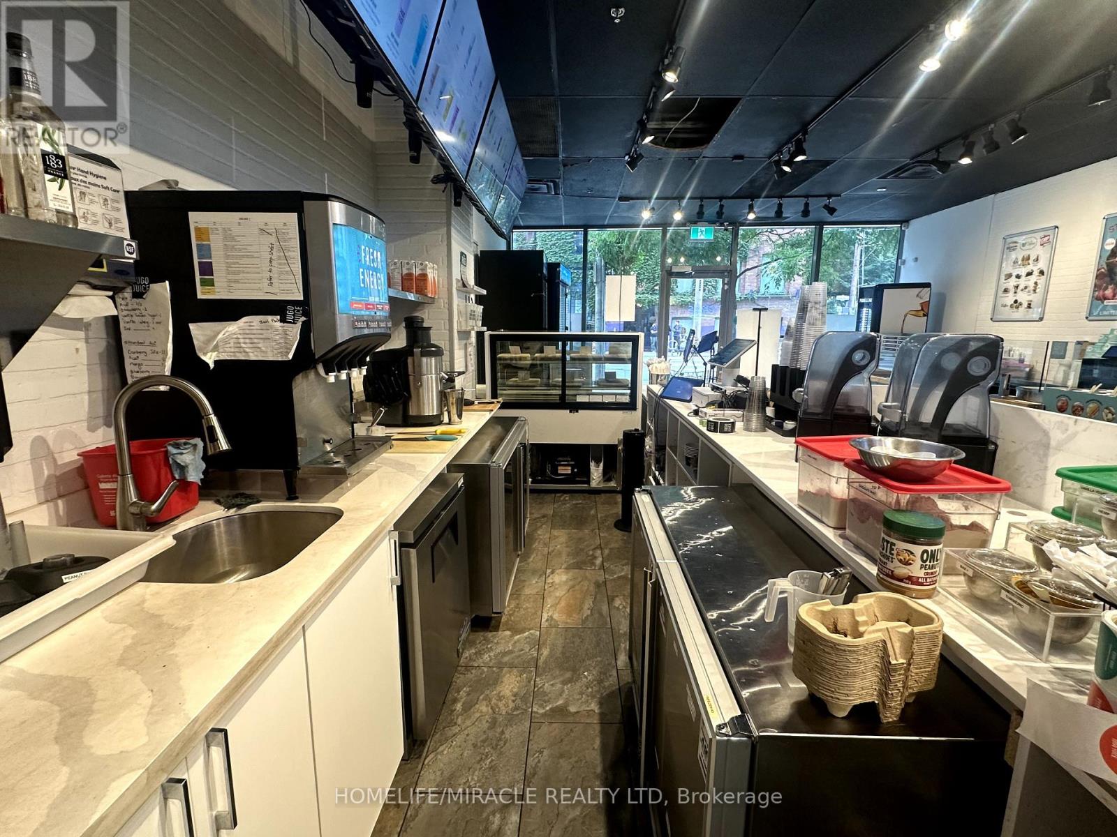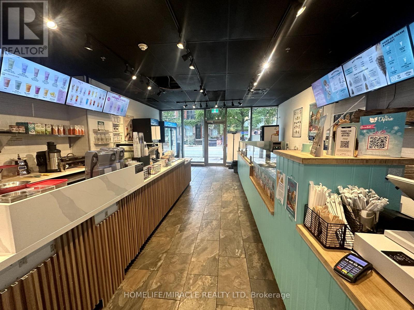 La Diperie & Jugo Juice in Toronto is For Sale. Located at the busy intersection of Sherbourne St/ Richmond St E. Very Busy, High Traffic Area and Popular Neighbourhood Plaza. Surrounded by Fully Residential Neighbourhood, schools, Highway and more. Excellent Business with Long Lease, and more. Monthly Sales: Approx. $30,000 - $32,000, Rent: $4700 + HST/m (including heat, water, Garbage, TMI & 1 underground Parking), Lease Term: 2.5 Years + 5 years option to renew, Store SQFT Area: 1150 approx, Royalty: 6%, Advertising: 2.5%. (id:51158)