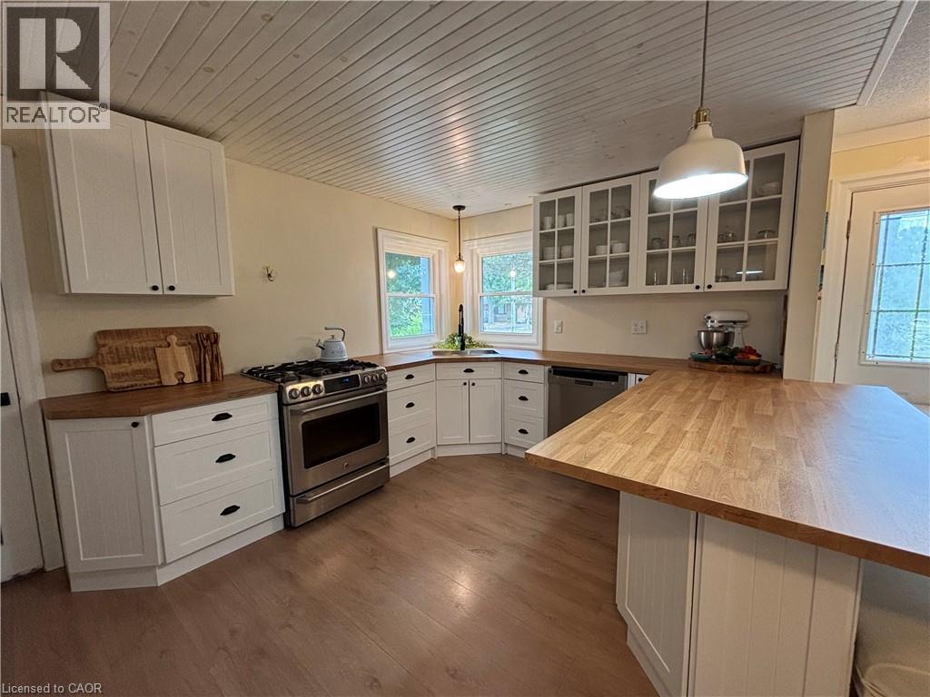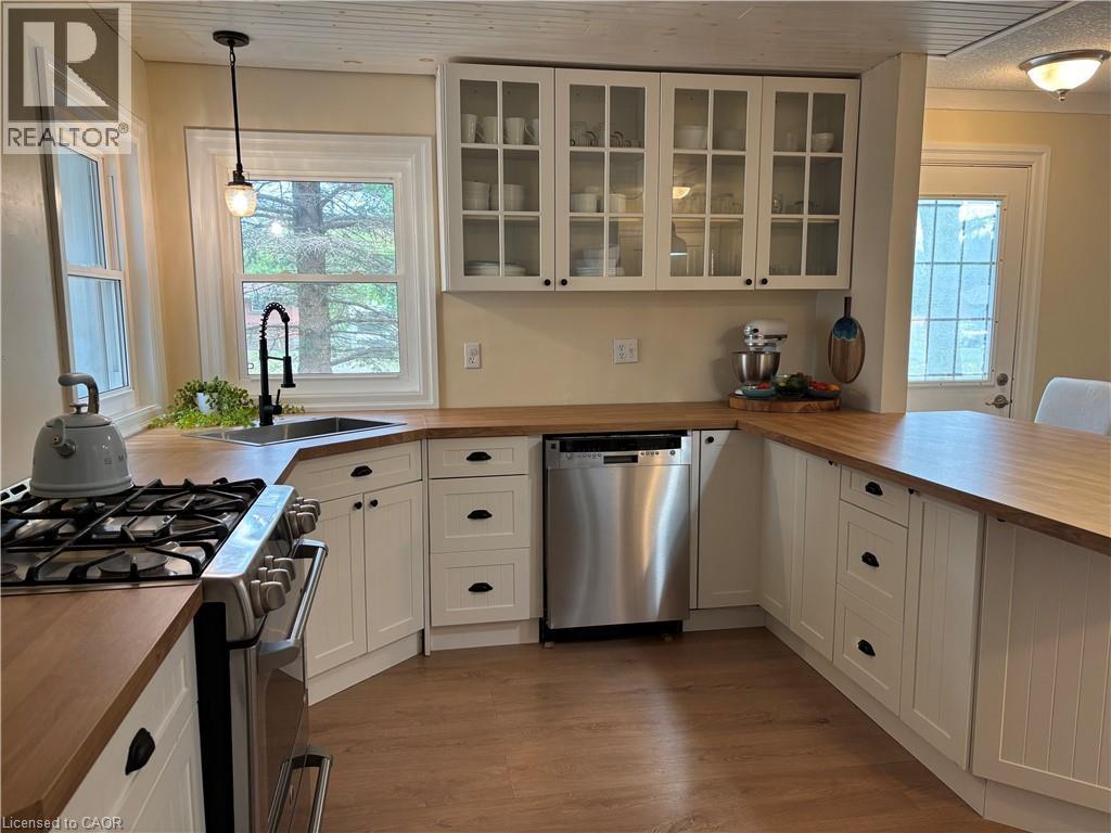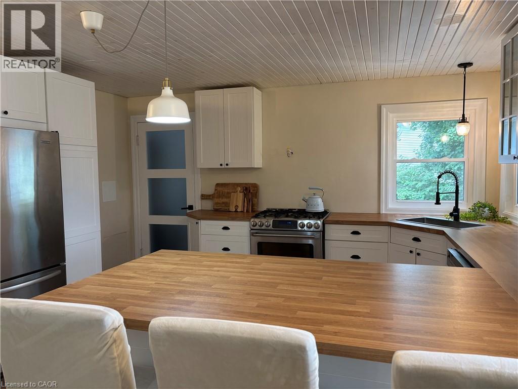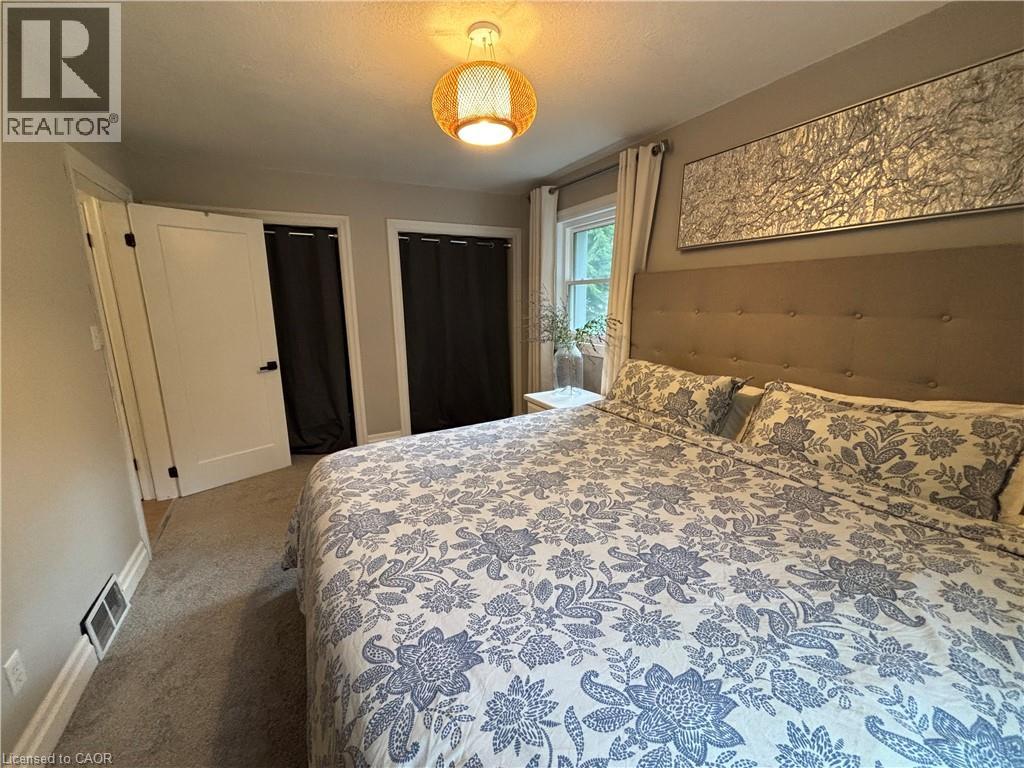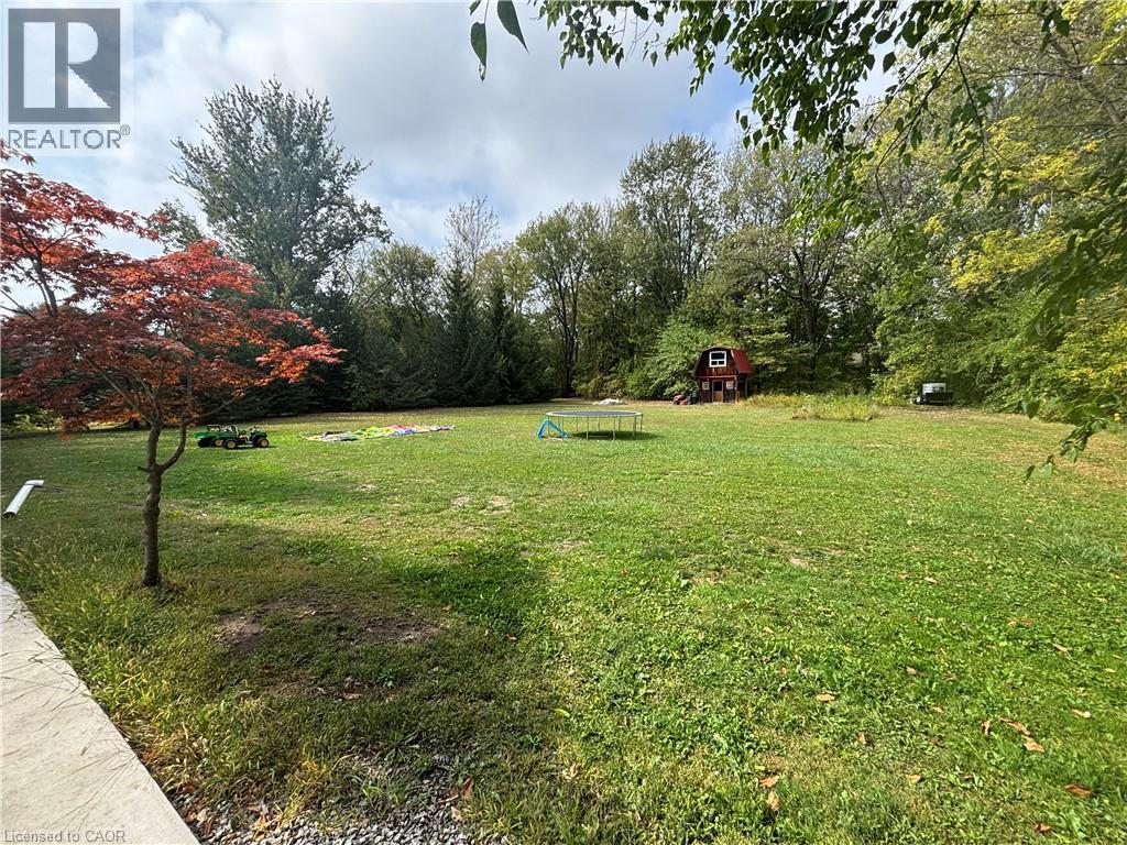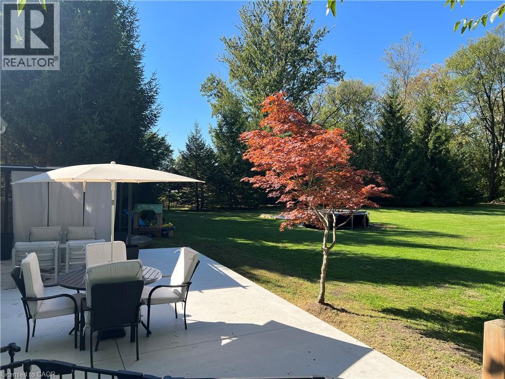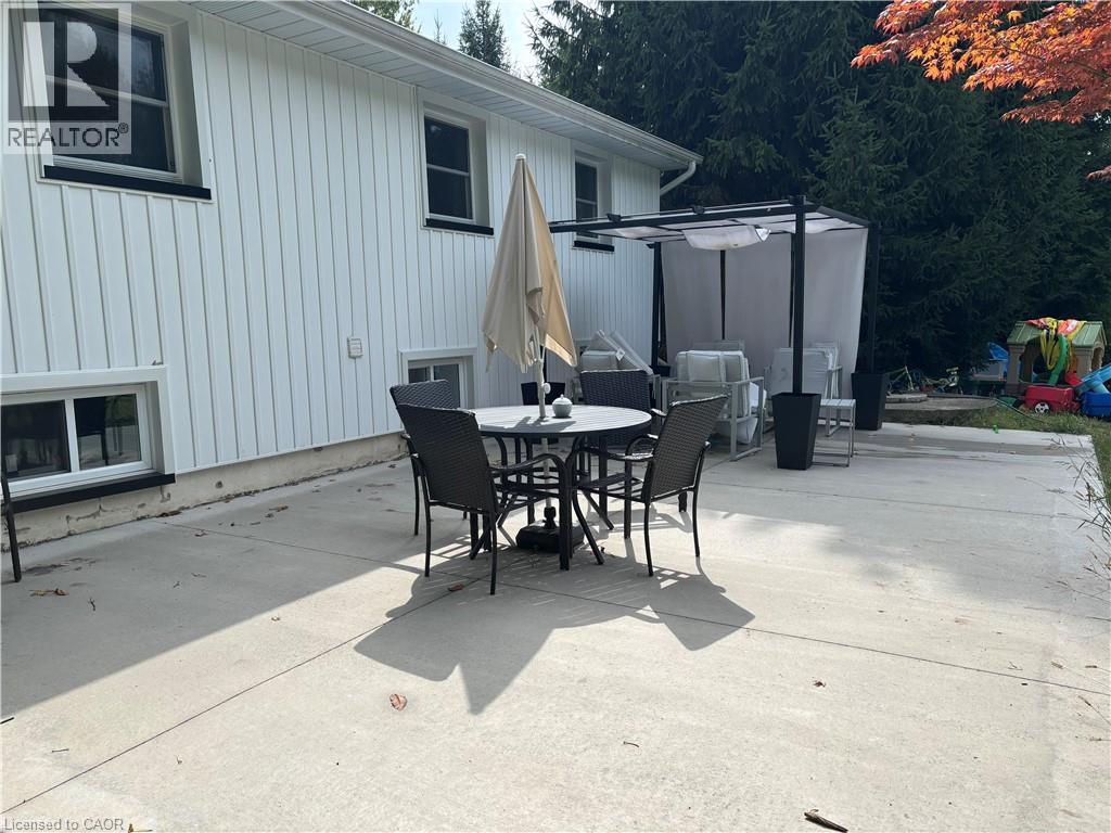 Country living close to town and all amenities! This 3+1, 2.5 bath bungalow on sought after 173 x 300 private mature treed lot. Great curb appeal with brick & vinyl sided exterior with attached garage, ample parking, deck, large patio and private mature treed backyard. Breezeway foyer to open interior layout: kitchen with breakfast bar, stainless steel appliances, spacious living/dining room with electric fireplace, 3 beds, 4 pc main bath & 2 pc guest, basement with family room, bedroom, 3 pc bath, laundry & storage. Enjoy the private yard, deck, new patio (2025), hot tub (as-is) and large lawn area, edged with mature trees. Shed with power. Updates include Septic 2022, windows, weeping tile and waterproofing, large patio, some siding, main bathroom, interior painting throughout, interior doors & trim, laminate flooring & carpeting in bedrooms (original hardwood underneath). Some minor finishes will make it your own! RSA (id:51158)