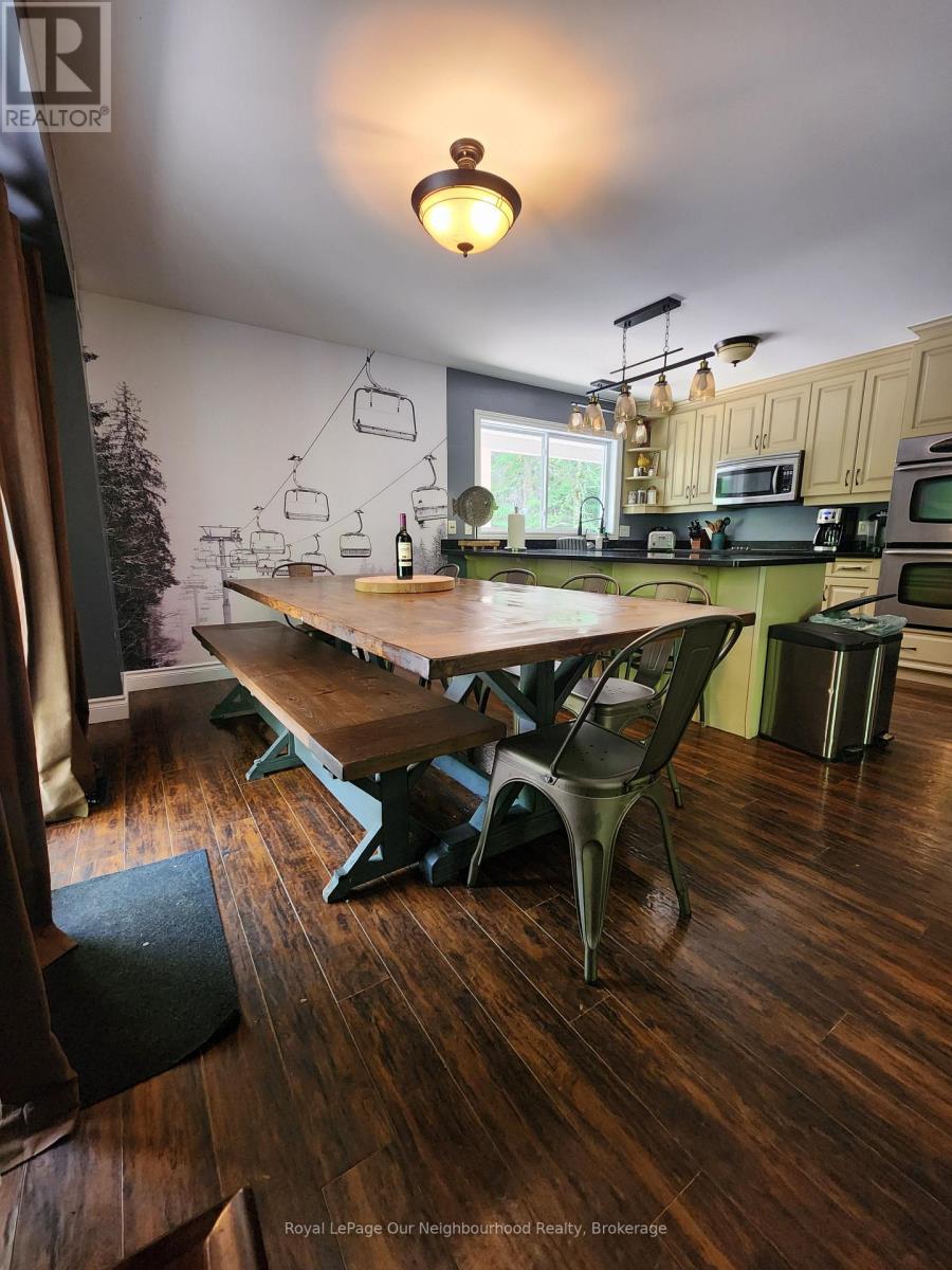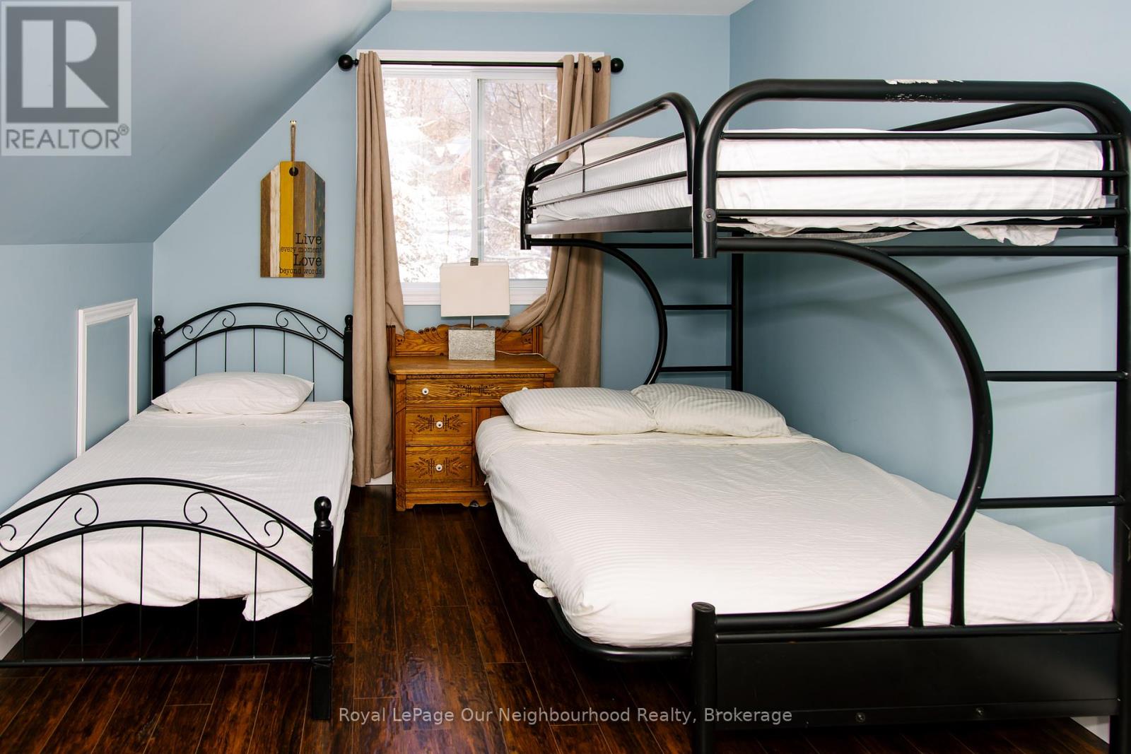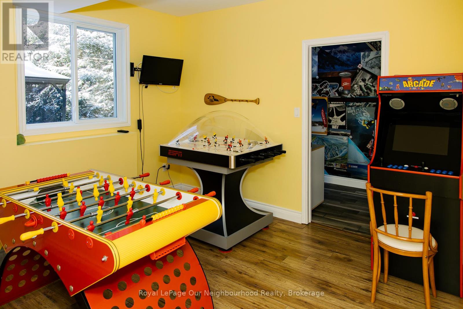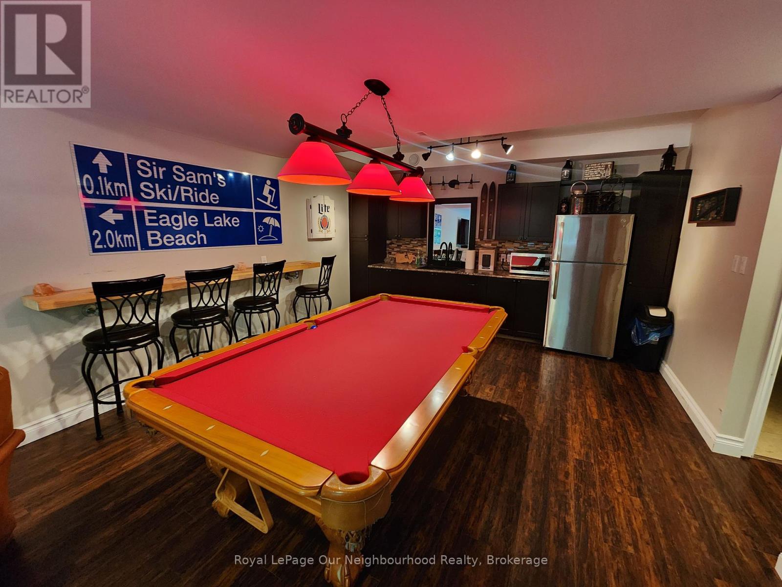 Welcome to 1042 Ski Ridge Trail.This 4 bedroom masterpiece offers convenient ski-in/ski-out access to Sir Sams Ski & Ride. Privately situated on 1.4 acres of pristine forest offering peace and tranquillity. The main floor consists of a stunning open concept kitchen/dining room combination and cozy living room along with 1 bedroom and 4-piece bath. 2nd floor consists of 3 additional bedrooms including primary bedroom and 3-piece bath. Fully finished basement offers additional living space, including recreation room, wet bar, games room and 3-piece bath. Basement walks out to beautiful patio and hot tub. Enjoy roaring fires out front and sip your favourite drink on the stunning covered custom stone wrap around porch. Enjoy relaxing evenings in the charming and spacious authentic wood burning outdoor sauna. Home is complete with multi-camera security system and EV fast charging station. Private, secondary driveway located on the back side of the property leading to endless possibilities. During the winter months, enjoy ski-in/ski-out access to the ski hill, double the fun with bike-in/bike-out access to the incredible bike trails during the rest of the year. There is never a dull moment here with Hiking, ATVing, snowmobiling and much more at your finger tips,, the possibilities are endless! 10 minute walk to a beautiful beach on Eagle Lake. (id:51158)