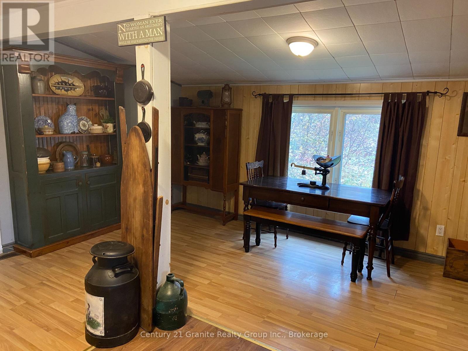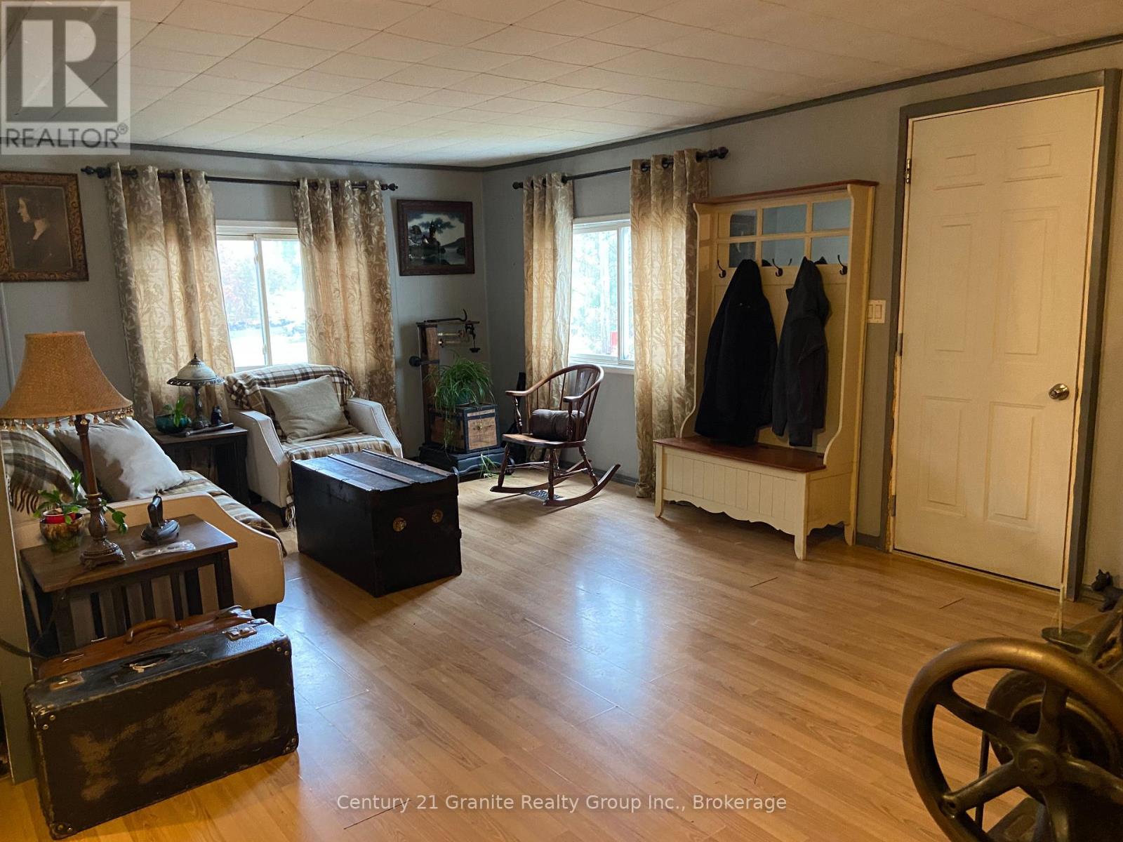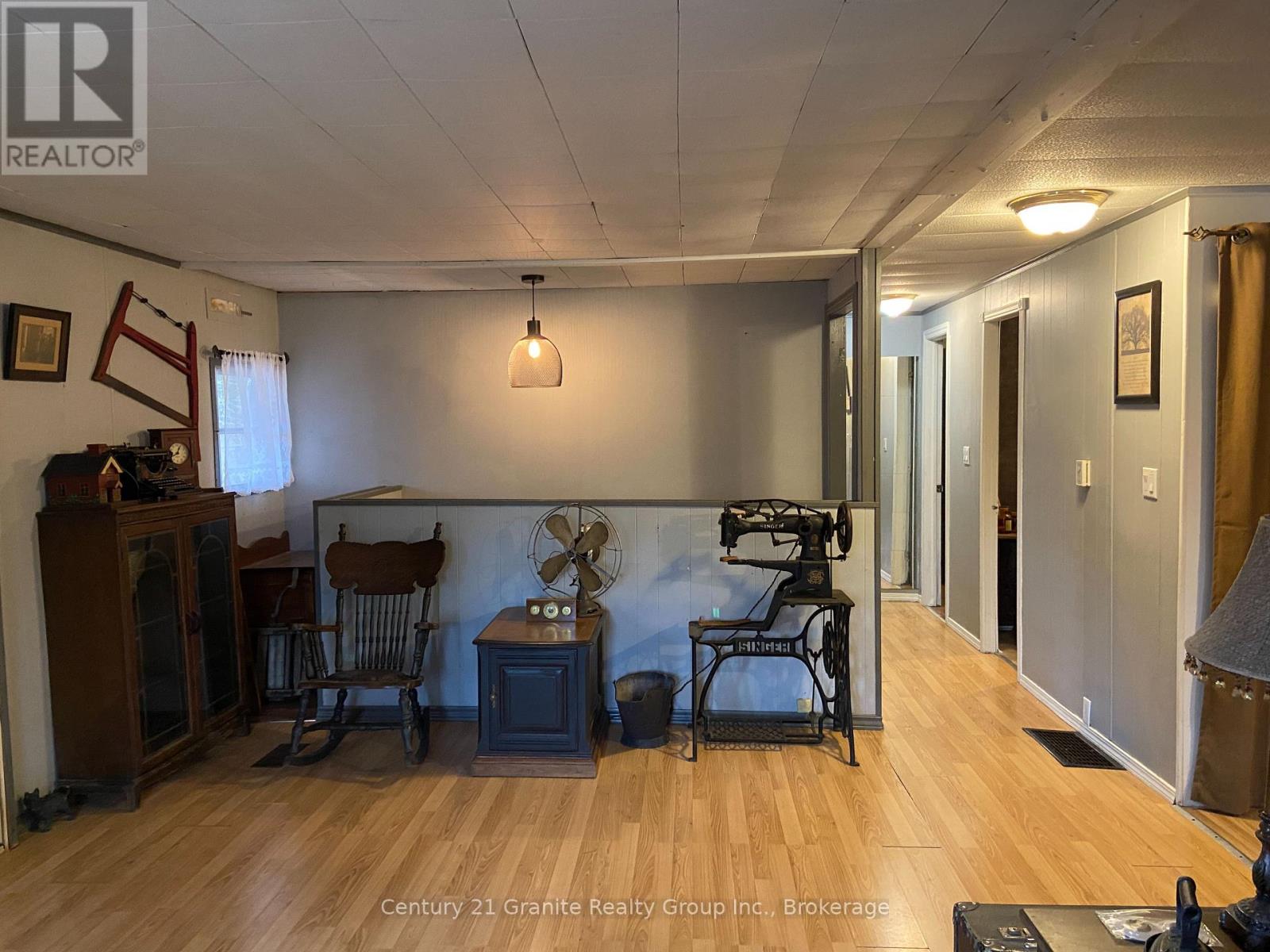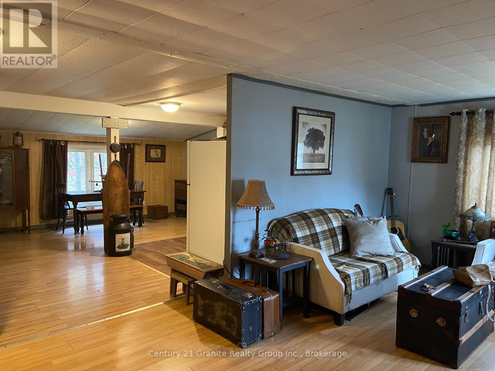 Located a short distance to Minden on a year round municipal road and an oversized lot in Lutterworth Pines, this corner property backs on a forest. Serviced by a municipal water system this home has two bedrooms, a living room, kitchen, dining room and bathroom on the main floor. The 800 sq. ft. partially finished basement has potential for an in-law suite or an apartment. A workshop/storage building is an added bonus to this modular home. The property is being sold "as is/where is" with no representations or warranties. (id:51158)