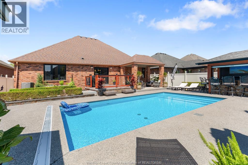 Welcome to this stunning ranch-style brick-to-roof bungalow located in the heart of Belle River, perfectly positioned near top-rated school districts and major roadways for ultimate convenience. This beautifully updated home offers modern finishes throughout, blending timeless charm with contemporary comfort. Windows, Hot Water Tank, Furnace and Air Conditioner - All Updated (2024) Step into your own private paradise out back—featuring a resort-worthy oasis complete with an inground heated saltwater pool, stylish pool bar, and meticulously designed hardscaping ideal for entertaining or relaxing in luxury. A rare find that truly checks every box. (id:51158)