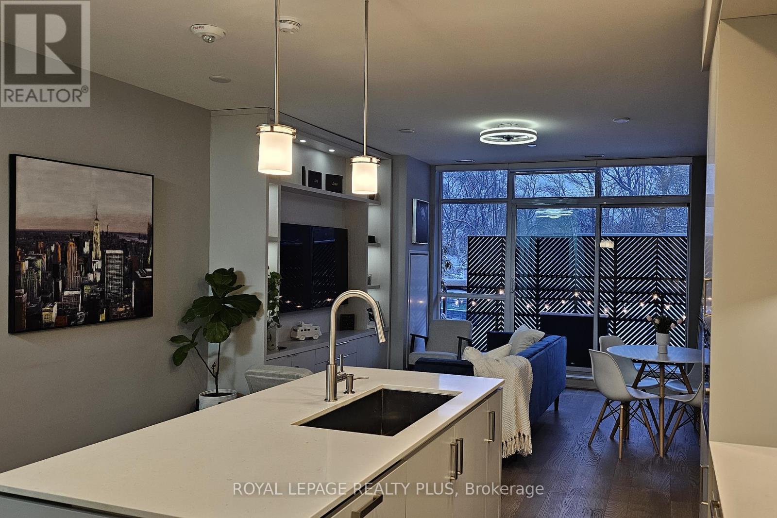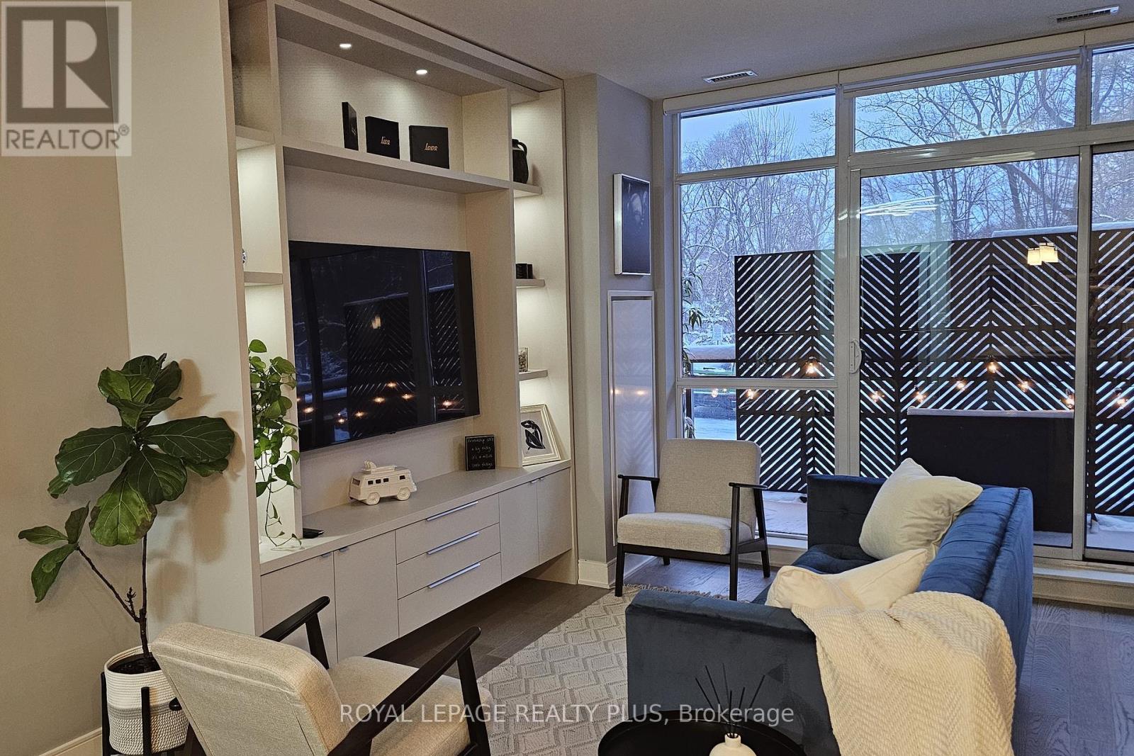 Situated in one of South Mississauga's most desirable communities, this sunny west-facing suite has unobstructed views of parkland and offers a rare blend of privacy and convenience - located just steps to the lobby, building amenities and the elevator to your two oversized parking spots. Inside, 5-inch engineered hardwood floors and open sightlines create a seamless flow from foyer to balcony. Expansive windows flood the suite with natural light, while motorized blinds offer privacy and shade at the touch of a button. The open living area has plenty of room for both living and dining, plus a custom media unit with integrated display lighting anchors the space - an upscale focal point that also maximizes storage. The sleek kitchen features two-tone cabinetry, built-in appliances and a large island - perfect for casual dining or entertaining. Two large bedrooms sit on opposite sides of the suite, with the primary retreat offering a walk-in closet, balcony access and a spa-like ensuite with two sinks and a glass shower stall featuring Kohler fixtures. Beyond the front door lies The Craftsman - a landmark for the city thanks to its Frank Lloyd Wright-inspired design and forested setting of Birchwood Park. This luxurious complex has many useful amenities and elegant common spaces but what makes it truly unique is the sense of community among its residents, with neighbours frequently gathering for events and celebrations thanks to a vibrant social club. Step outside to discover Clarkson Village with its boutique shops, cafés, and some of Mississauga's finest dining. Within minutes you'll reach Jack Darling Park, Rattray Marsh and countless trails, plus nearby MiWay transit stops, GO stations, and major routes like Lakeshore, Southdown and the QEW make commuting a breeze. With its refined finishes, thoughtful upgrades, and prime location, Suite 105 at The Craftsman offers affordable luxury living in the heart of Clarkson. (id:51158)