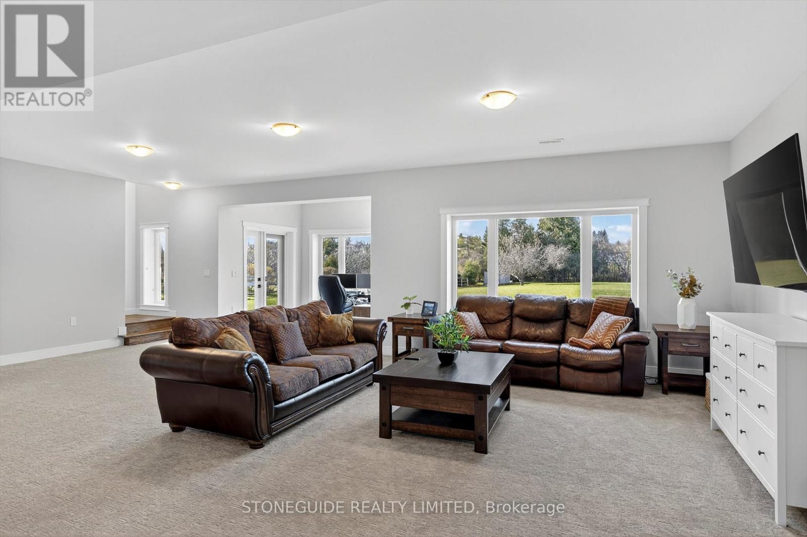 WELCOME TO 105 ARNOTT DRIVE, ENNISMORE. A MUCH SOUGHT AFTER RURAL DEVELOPMENT OF EXECUTIVE HOMES MINUTES FROM PRHC, HYW 115/407 AND ALL AMENITIES PETERBOROUGH HAS TO OFFER. THIS BEAUTIFUL ONE OWNER, CUSTOM BUILT HOME ON SITS ON A .9 ACRE LOT, ENJOYS NATURAL GAS, DEEDED WATER ACCESS AND CURBSIDE SCHOOL BUS PICK UP. OFFERING APPROX 4000' OF FINISHED LIVING SPACE. THE MAIN FLOOR IS BRIGHT AND AIRY WITH OVERSIZED (TRIPLE PANE) WINDOWS, DINING ROOM, GORGEOUS CUSTOM KITCHEN WITH AMPLE CABINETRY, HARD SURFACE COUNTERTOPS, LARGE WORK ISLAND AND OVERLOOKS THE EATING AREA (DECK ACCESS) AS WELL AS THE COZY FAMILY ROOM, ENHANCED WITH GAS FIREPLACE. THE PRIMARY BEDROOM OFFERS SECLUSION WITH DESIGNER 5 PC ENSUITE, DECK ACCESS, COFFERED CIELING AND WALK IN CLOSET. THE FULLY FINISHED LOWER, WALK OUT LEVEL, IS SUITABLE FOR IN-LAW USE OR OUT OF TOWN GUESTS AND FEATURES A MASSIVE REC ROOM, FULL BATH AND 2 EXTRA BEDROOMS ONE WITH ACCESS TO COVERED PATIO, HOT TUB INCLUDED. THIS HOME IS IN MOVE IN CONDITION, POSSESSION IS FLEXIBLE. (id:51158)