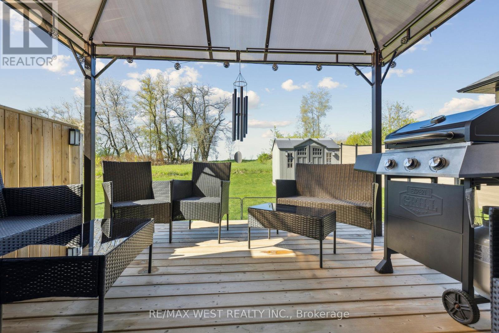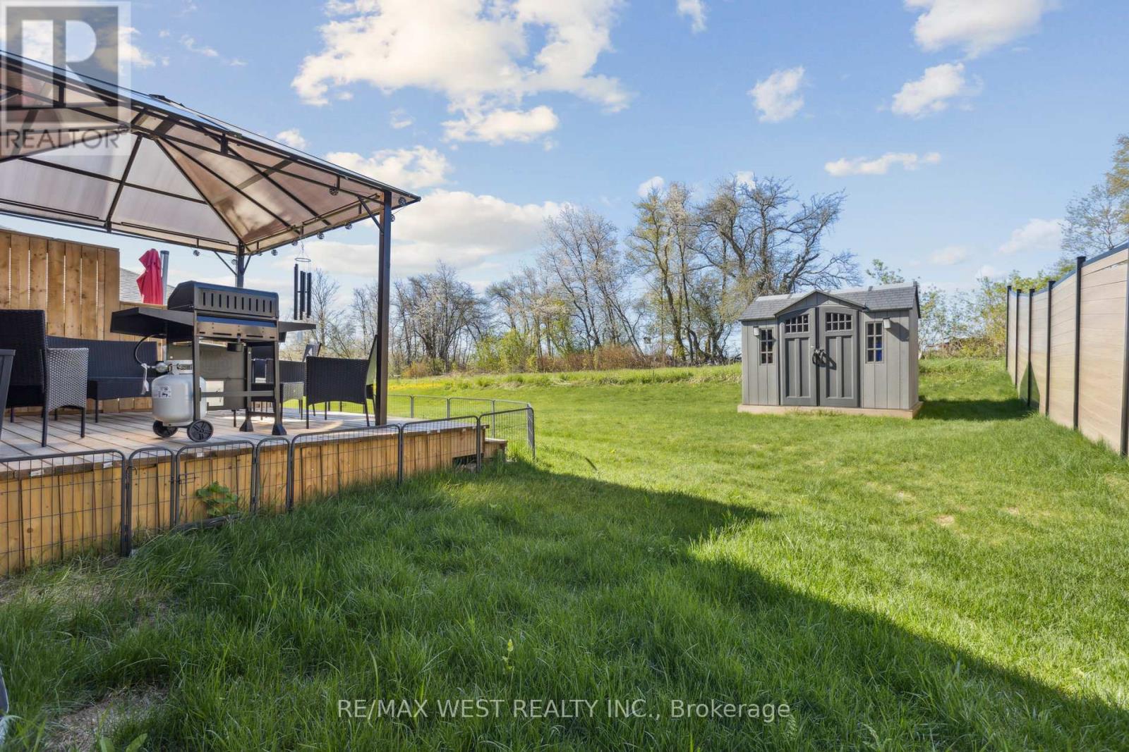 EXCEPTIONAL VALUE: Nearly New Semi-Detached Home in Charming Milverton. Discover this stunning one-year-old Stroh Homes semi-detached in the picturesque community of Milverton, perfectly positioned just 30 minutes from Kitchener-Waterloo and between the vibrant towns of Listowel and Stratford. PREMIUM FEATURES & MODERN CONVENIENCE: Step inside to soaring 9-foot ceilings, elegant wide-plank engineered hardwood floors, and energy-efficient LED pot lighting throughout. The bright, open-concept design creates seamless flow between the gourmet kitchen, living, and dining areas. CHEFS DREAM KITCHEN: The heart of this home features premium quartz countertops, crisp white soft-close cabinetry, and top-of-the-line KitchenAid appliances including an induction range with built-in air fryer. The oversized island with sink and breakfast bar is perfect for entertaining and everyday living. COMFORTABLE LIVING SPACES: Three well-appointed bedrooms upstairs include a spacious primary suite with private ensuite. All bathrooms showcase beautiful quartz countertops, while the unfinished basement offers endless potential with large egress windows and rough-in plumbing. OUTDOOR PARADISE: Walk out from the dining room to your private deck with gazebo, overlooking a peaceful backyard with no rear neighbours, just the tranquil sounds of nature. Garden shed provides additional storage. SMART HOME READY: WiFi-enabled washer/dryer, water softener, and reverse osmosis system. Smartphone-controlled garage door opener for ultimate convenience. MOVE-IN READY BENEFITS: This property offers a widened driveway for extra parking with no sidewalks to maintain. The owned water heater means no rental fees, and the transferable Tarion Warranty provides peace of mind. Everything in this home is one year old or newer, situated in a welcoming neighborhood atmosphere.This exceptional property offers luxury living at an incredible value. (id:51158)