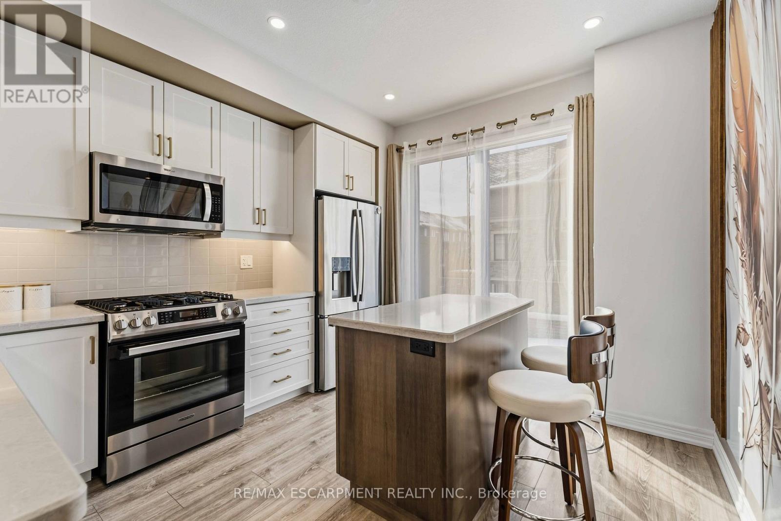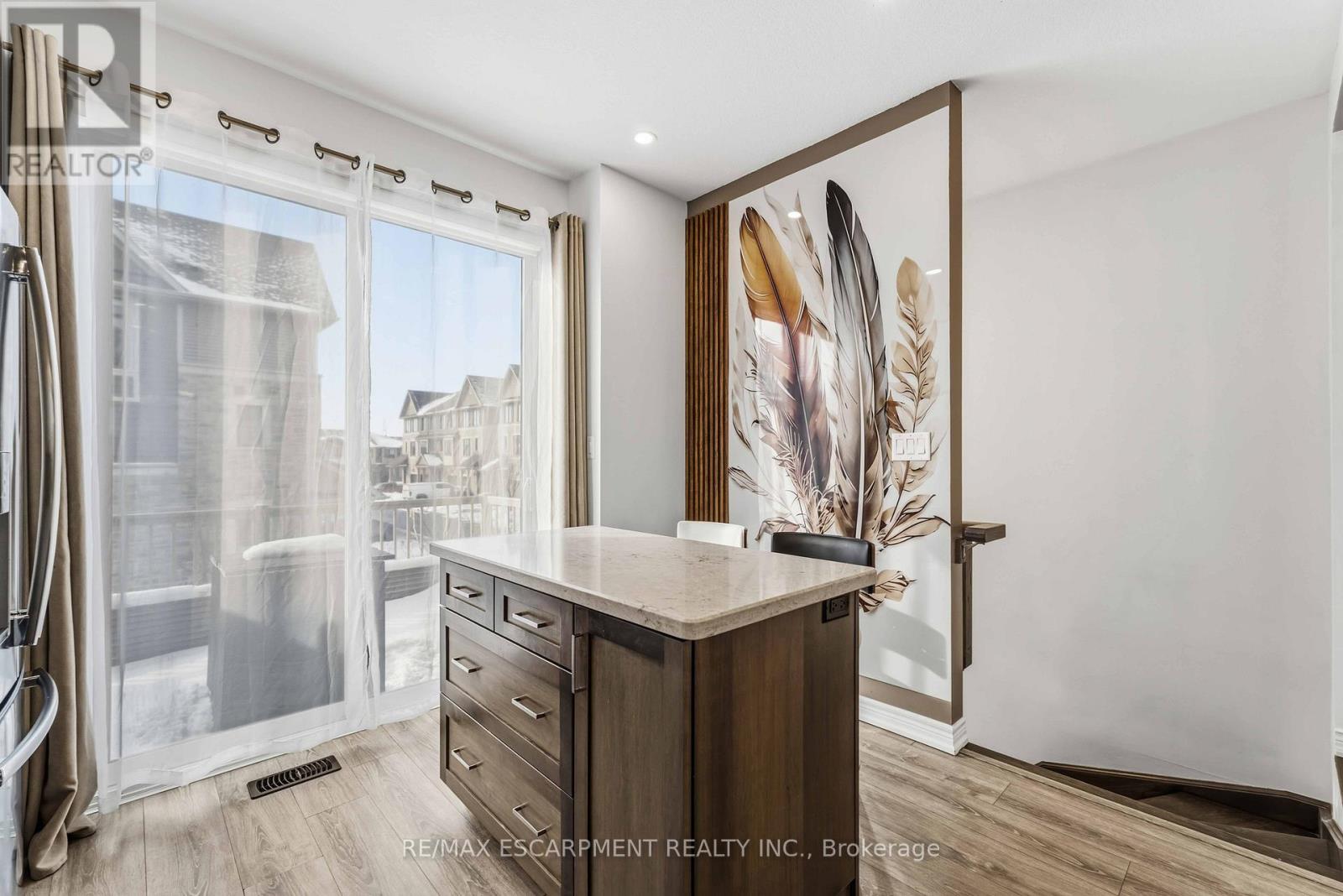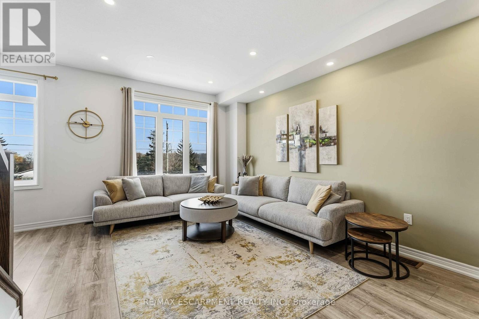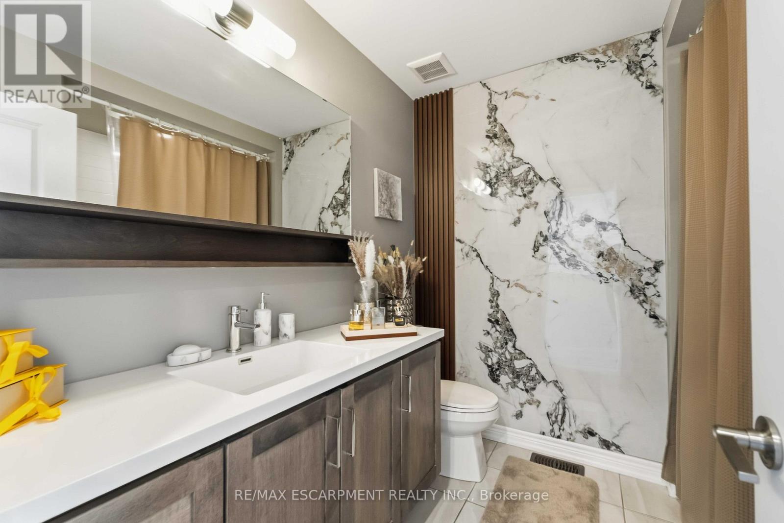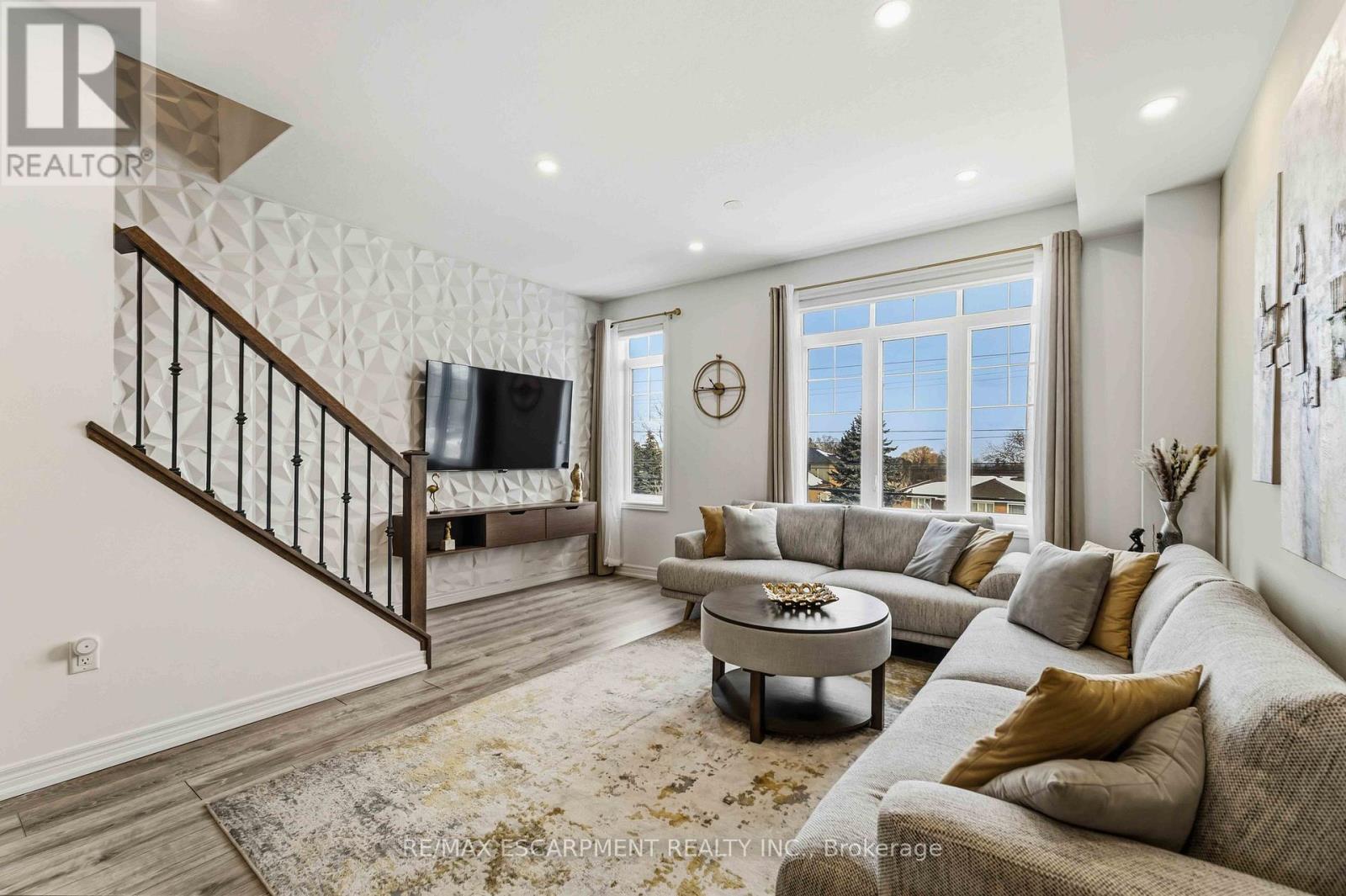Welcome to this beautifully designed 3-storey townhome in one of Hamilton's most desirable and convenient neighbourhoods. This home features a thoughtfully planned layout that blends flexibility, comfort, and modern functionality. The second level is the heart of the home, featuring a bright, open-concept kitchen, living, and dining area - perfect for entertaining or enjoying cozy nights in. Large windows invite natural light throughout, creating a warm and inviting atmosphere. On the third floor, you'll find two generously sized bedrooms, including a spacious primary retreat complete with its own private ensuite and balcony access. A second full bathroom on this level provides added convenience for family or guests. The ground level offers a versatile family room, ideal as a media space, home office, or play area, along with a 3-piece bathroom and direct access to the garage. The basement level features an additional bedroom and a dedicated laundry room, providing extra flexibility for guests, extended family, or work-from-home needs. Situated close to shopping, schools, parks, dining, transit, and easy highway access, this home combines style, comfort, and location. A fantastic opportunity to own in the Hannon community. (id:51158)