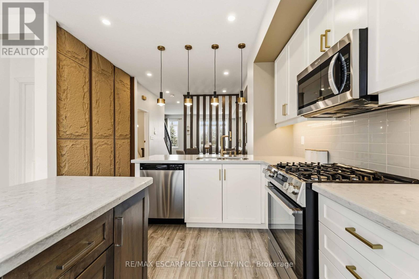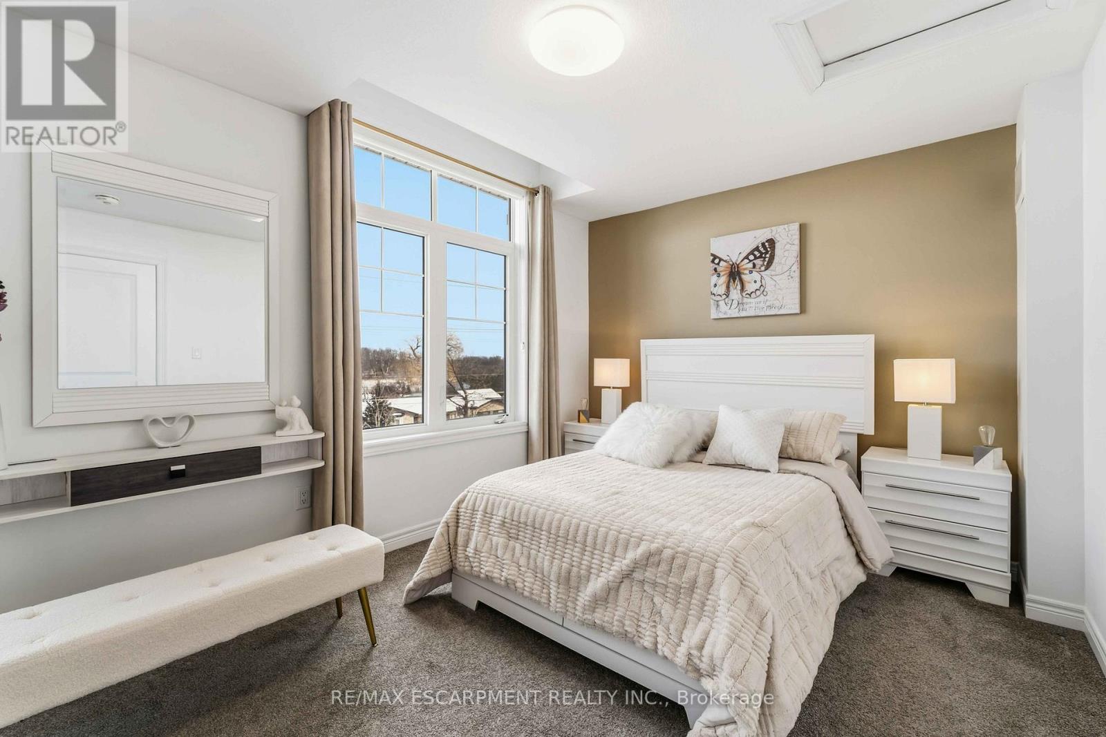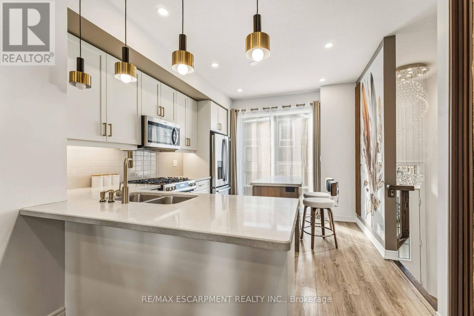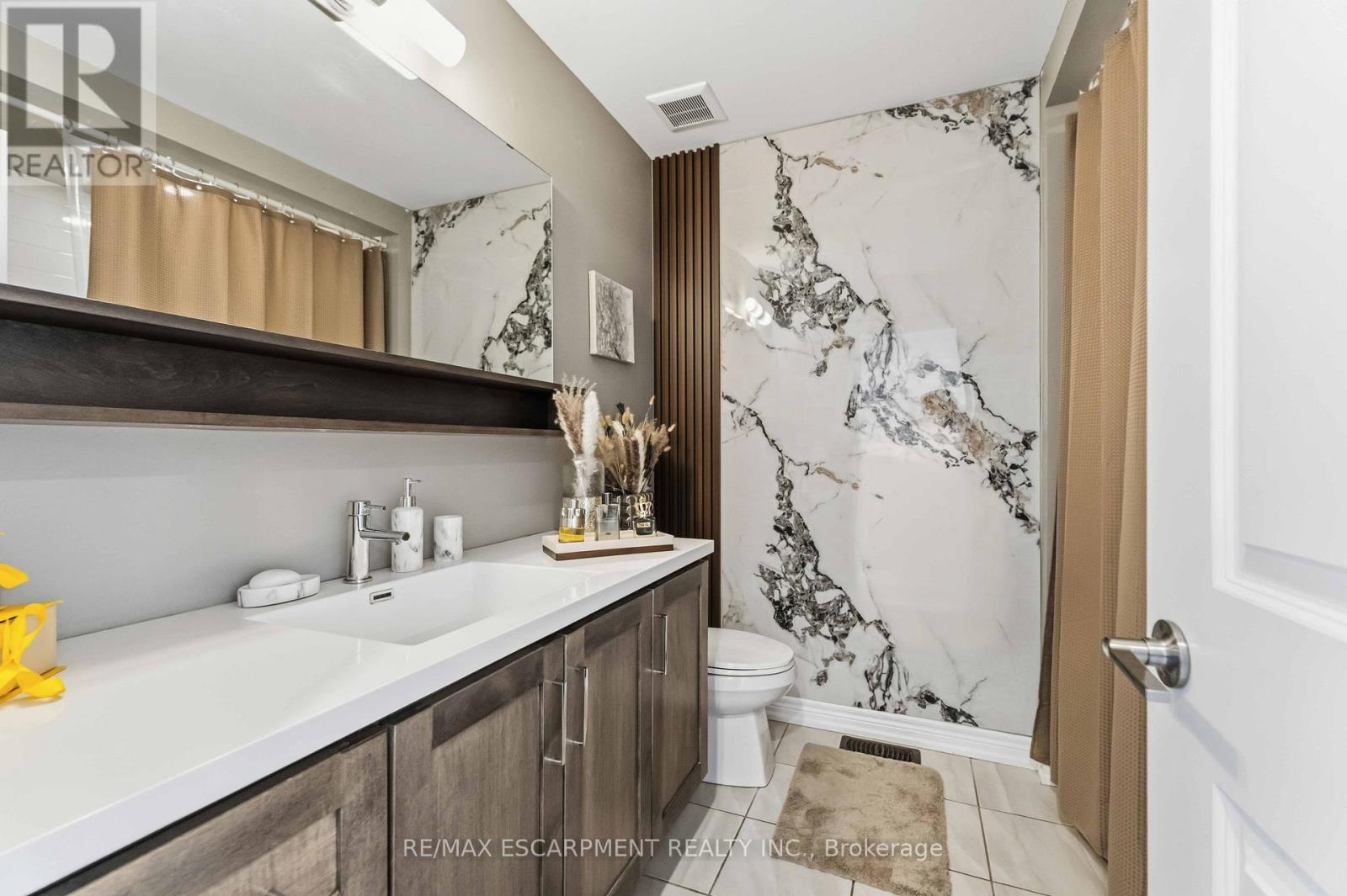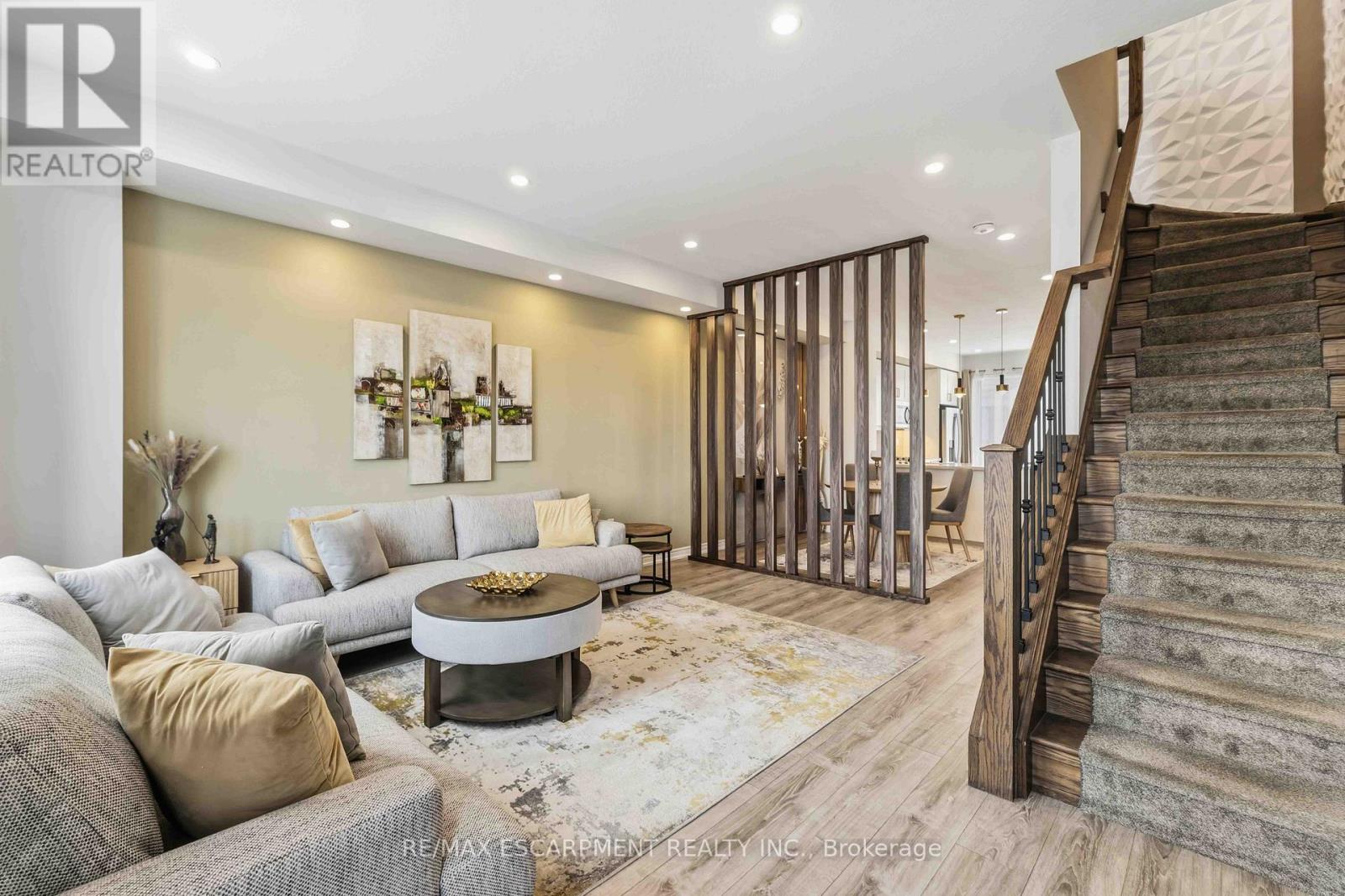 Welcome to this beautifully designed 3-storey townhome in one of Hamilton's most desirable and convenient neighbourhoods. This home features a thoughtfully planned layout that blends flexibility, comfort, and modern functionality. The second level is the heart of the home, featuring a bright, open-concept kitchen, living, and dining area - perfect for entertaining or enjoying cozy nights in. Large windows invite natural light throughout, creating a warm and inviting atmosphere. On the third floor, you'll find two generously sized bedrooms, including a spacious primary retreat complete with its own private ensuite and balcony access. A second full bathroom on this level provides added convenience for family or guests. The ground level offers a versatile family room, ideal as a media space, home office, or play area, along with a 3-piece bathroom and direct access to the garage. The basement level features an additional bedroom and a dedicated laundry room, providing extra flexibility for guests, extended family, or work-from-home needs. Situated close to shopping, schools, parks, dining, transit, and easy highway access, this home combines style, comfort, and location. A fantastic opportunity to own in the Hannon community. (id:51158)