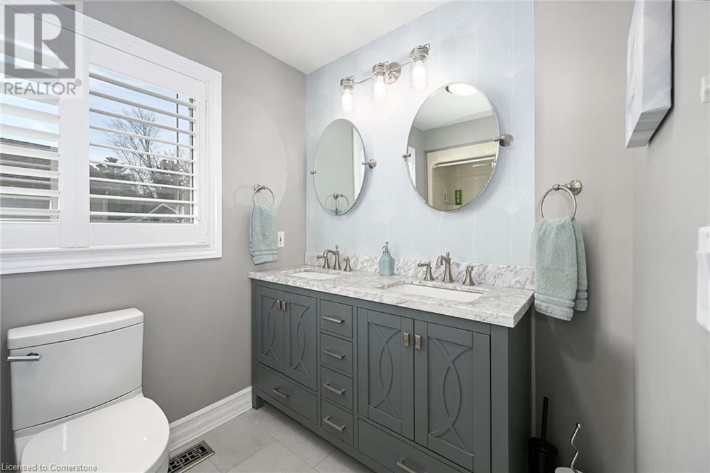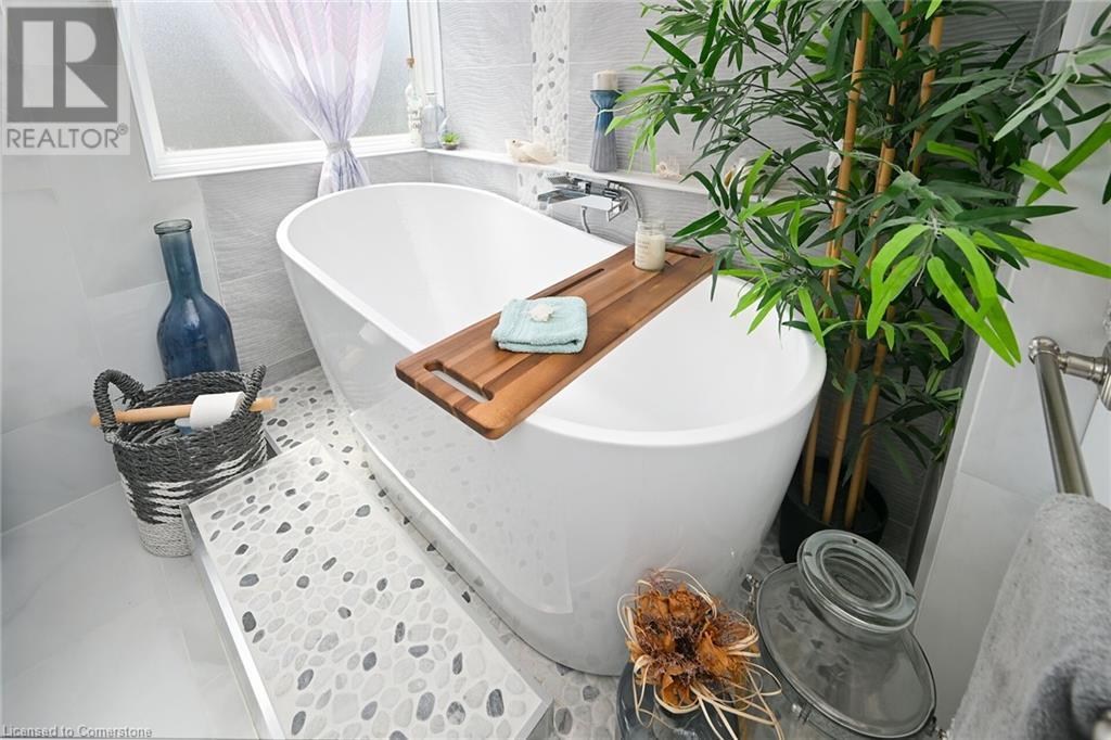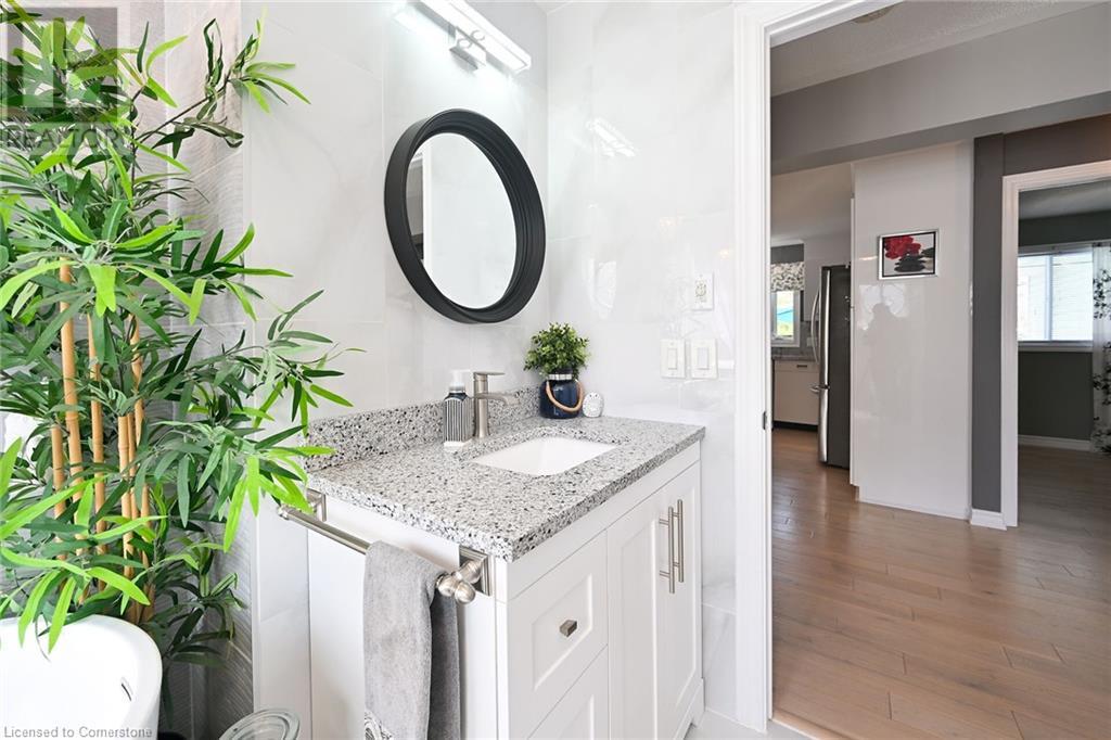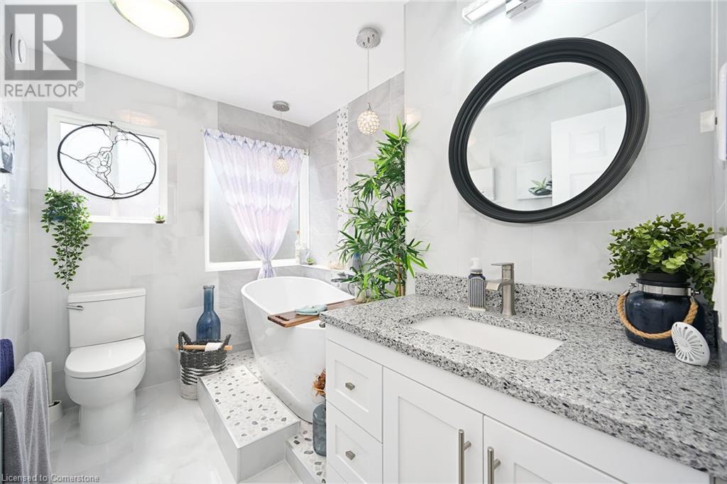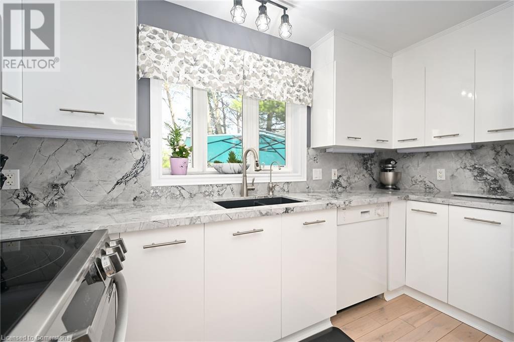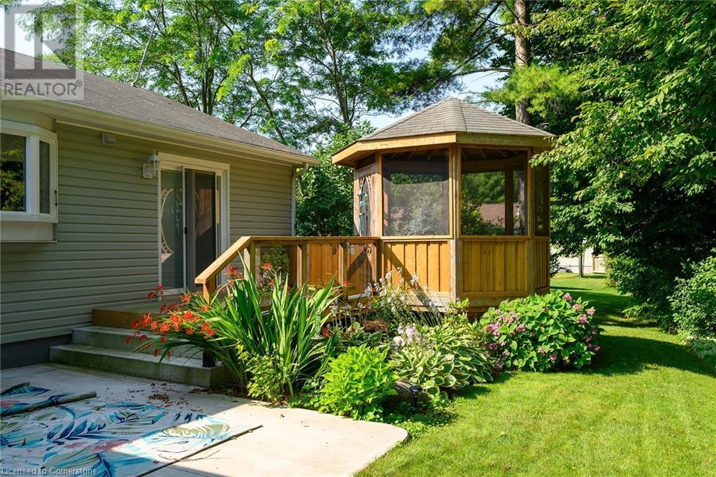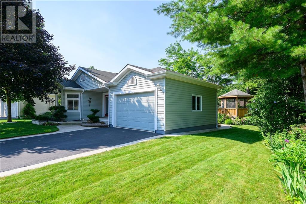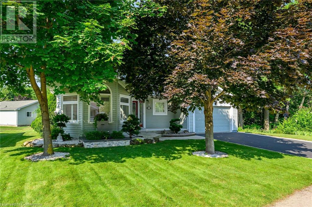 Welcome to 106 Bushmill, beautifully updated from top to bottom, located on the most coveted street in the desirable Antrim Glen Adult Community. Impeccably maintained home, offering ample main level living space and a professionally finished basement. This bright and open bungalow has gorgeous hand-scraped oak floors. The living and dining rooms flow seamlessly together, perfect for family gatherings. The updated kitchen is stunning with quartz counters, including a quartz waterfall island with seating, custom cabinetry, quality appliances and a view of your award winning gardens. The cozy family room overlooks the backyard and has a walk out to your very private composite deck with screened in gazebo and stone patio. The landscaping and gardens are breathtaking, the proud recipient of several awards! The curb appeal is 10+ with your charming front porch and cascading water-feature. An in-ground sprinkler system provides carefree maintenance. Back inside, the main level offers two spacious bedrooms, including a primary retreat with walk-in closet, and two full bathrooms including a dreamy soaker tub. The updated glass railing leads you to the finished basement, featuring new carpet, two large bedrooms, a recreation room, two piece bathroom (with space for a shower) and a utility room with lots of storage. The home has been freshly painted in neutral designer decor. Custom window coverings adorn the windows. Attached garage with access through the main floor laundry room as well as to the backyard. Antrim Glen is conveniently located between Waterdown, Cambridge and Guelph. Offering a vibrant lifestyle community with heated salt water pool, sauna, BBQ area, a lounge and kitchen for large gatherings, billiards, shuffleboard, library, craft room, horseshoes, private vegetable garden plots, and wooded walking trails. Move in ready, all you need to do is unpack, relax and enjoy! (id:51158)