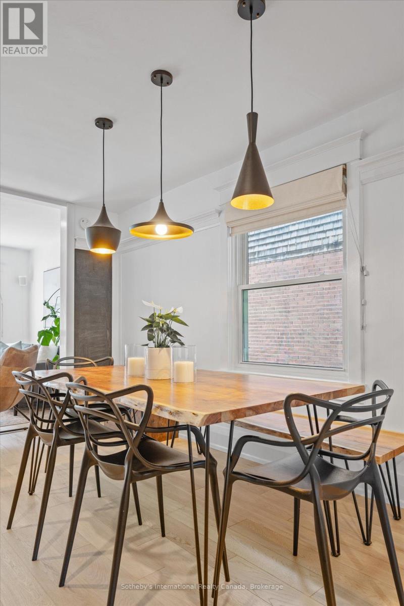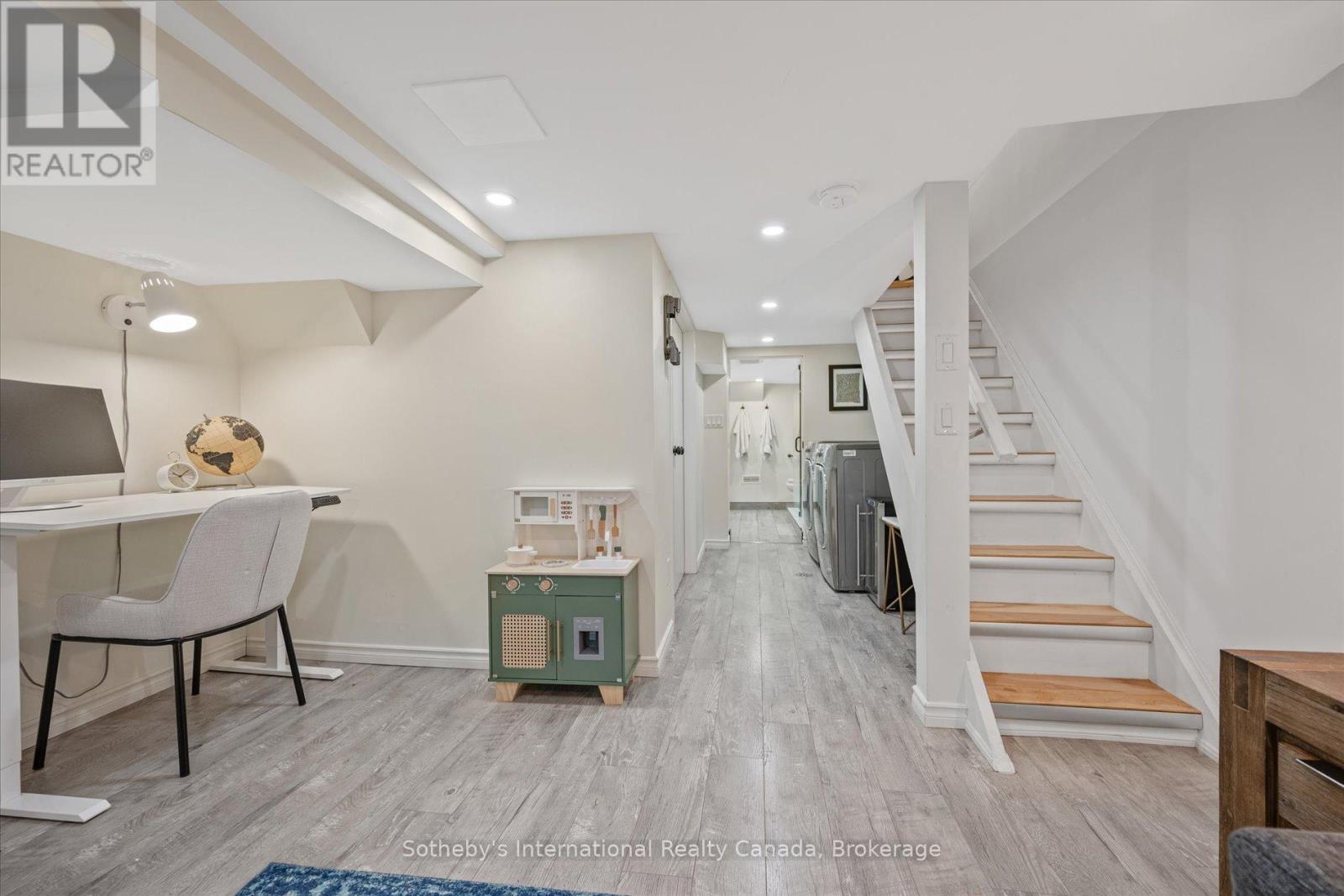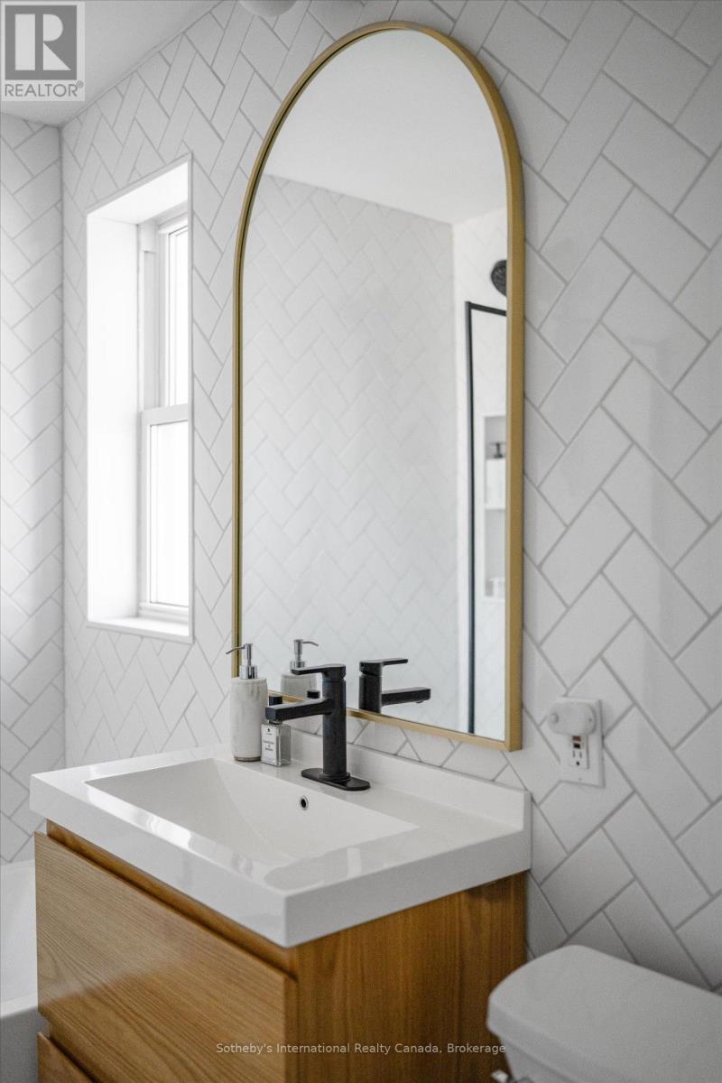 Welcome to 106 Hiltz Avenue - a stylishly renovated 2 bed, 2 bath semi on a coveted street in vibrant Leslieville, mere steps from 15-acre Greenwood Park. Enter the sun-filled foyer, a separate space to kick off your shoes and leave your worries at the door. Across the threshold, the open and airy main level with white oak hardwood floors offers a seamless flow between living and dining rooms. The renovated kitchen is stylish yet functional with hand crafted zellige tiles, custom cabinets and quartz countertops. Upstairs, the new rich hardwood floors and glass bannister set a transitional tone for the space. The primary bedroom includes a picturesque arched window nook with built-in bench storage plus a wall to wall closet, while the second bedroom is a cozy space for a nursery or home office. The renovated 4 pc washroom features modern finishes with a sleek glass shower door for natural light. The fully finished basement is a versatile space for a family room with built-in cabinetry, or a guest suite with a 3 pc bathroom with glass shower. Head outside to the deck for dining al fresco or lounge in the grassy yard. Bonus laneway access with a sliding gate providing extra parking. Full of curb appeal with fresh landscaping at the quieter end of a tree lined street and a stones throw from one of the city's best parks with an outdoor pool, outdoor gym, dog park, pickleball courts, baseball and more. Enjoy a weekly farmers market in the summer and outdoor skating in the winter. Better yet right out the back gate is a hidden treasure - a quiet park with playground and basketball. A true extension of your own backyard without the maintenance. Ideally located walking distance to transit, breweries & dining (Maha's Brunch, anyone?), shopping (local shops and convenient big box stores) plus a short stroll to Woodbine Beach. This truly is the lifestyle people dream of - a turn-key home in one of the most vibrant, walkable, family friendly neighbourhoods Toronto has to offer. (id:51158)