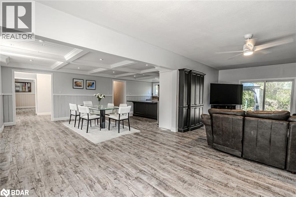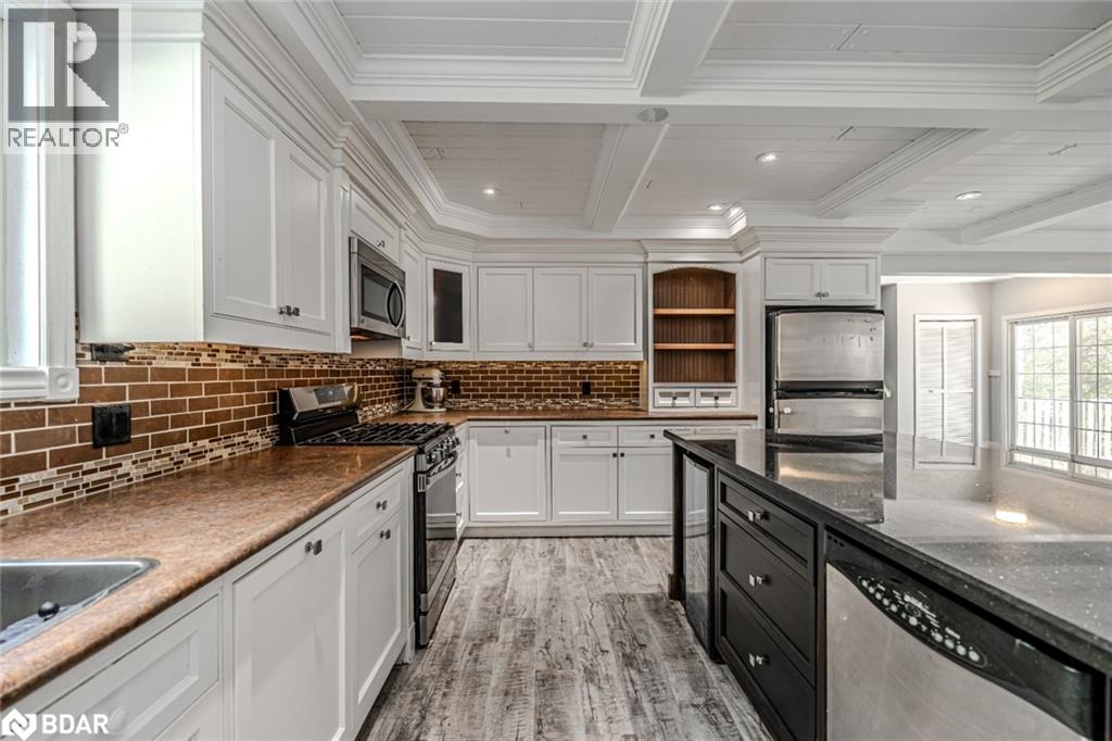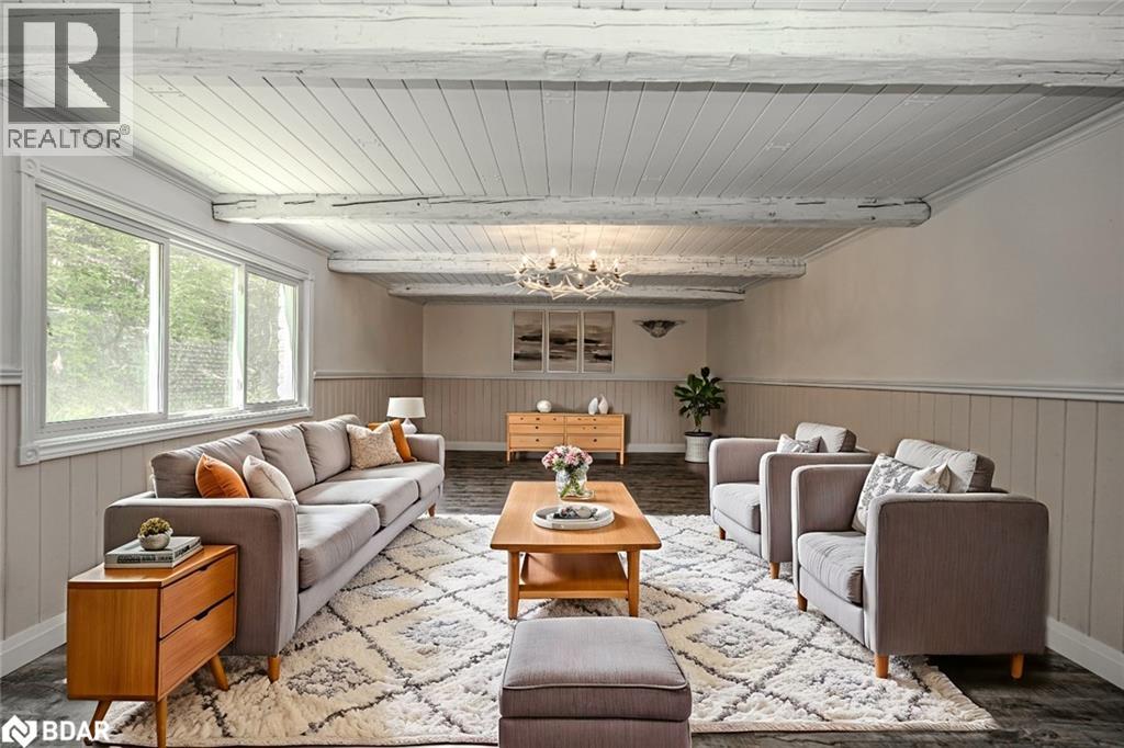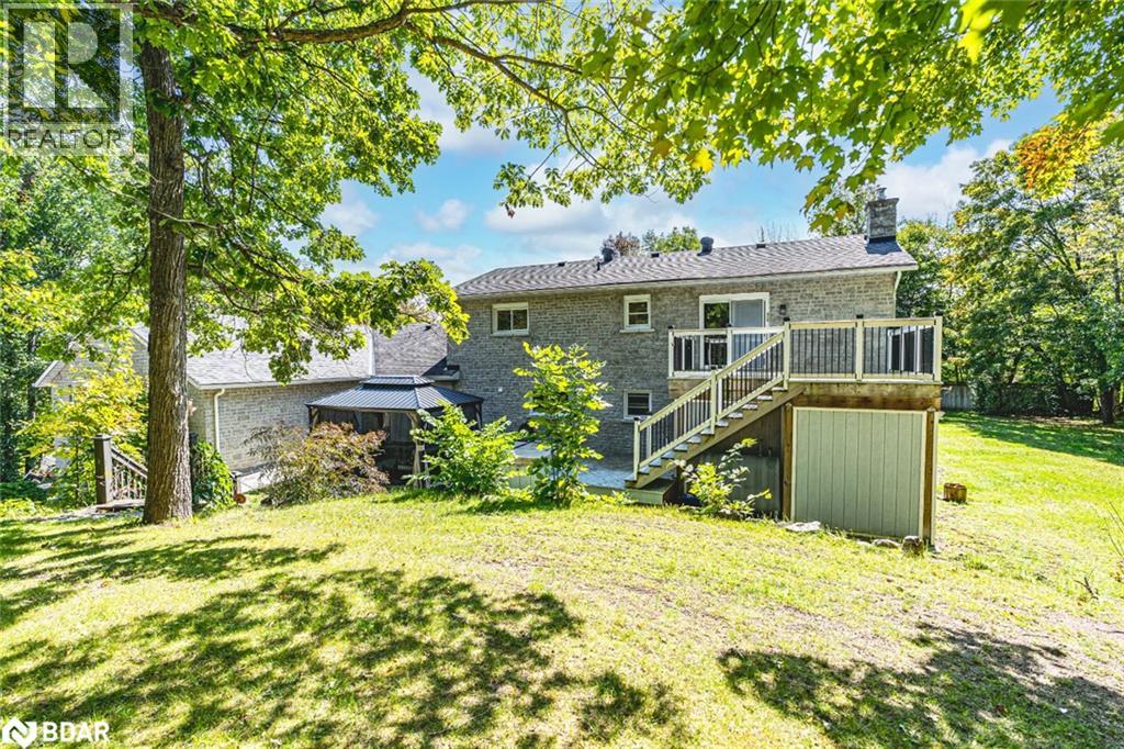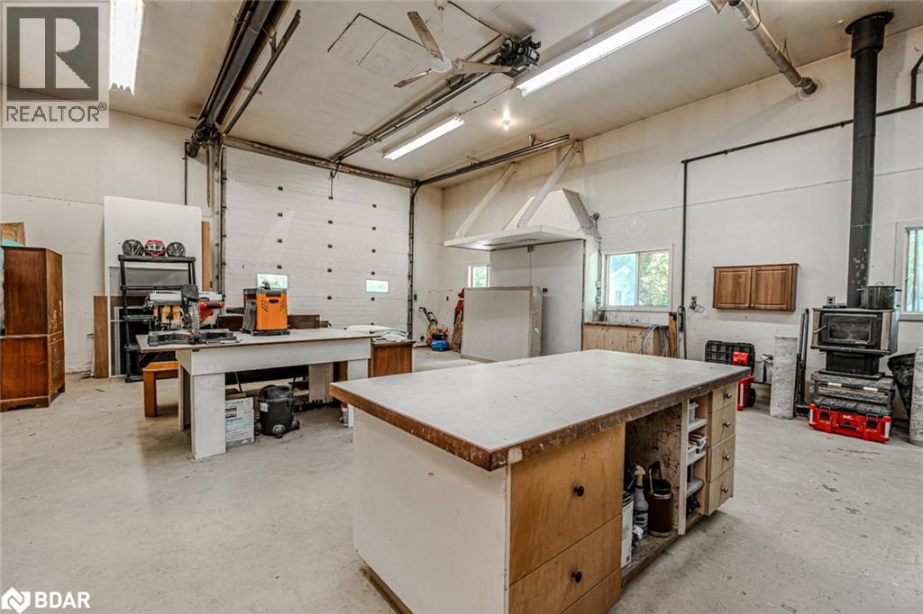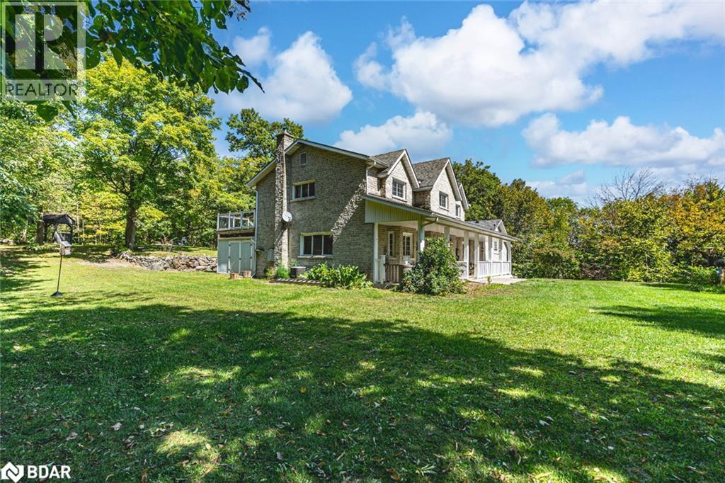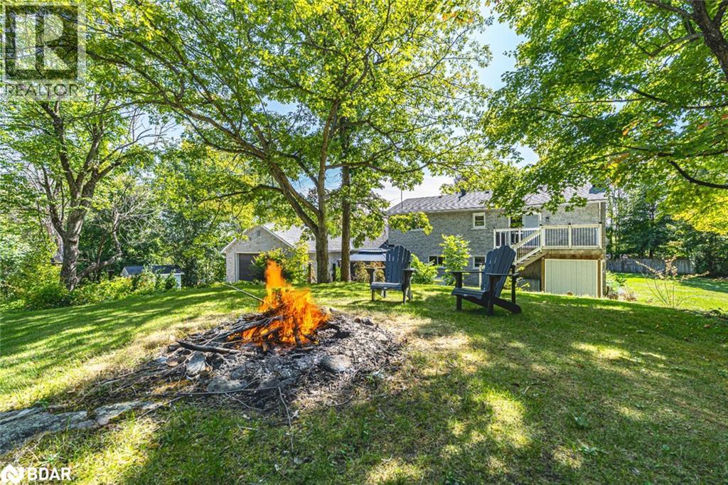 WELCOME TO YOUR OWN PRIVATE 3+ ACRES OF MUSKOKA PARADISE WITH A 1400 SQ FT HEATED GARAGE/SHOP, RESORT-STYLE OUTDOOR LIVING, & RUSTIC CHARM! This 3+ acre retreat showcasing a Muskoka-style landscape with rock outcroppings, abundant wildlife, and a private forested EP backdrop, all located just 5 minutes from Hwy 400 and the Oak Bay Golf Club, under 10 minutes to marinas, and close to all everyday essentials. Enjoy year-round recreation with Mount St. Louis and Horseshoe Valley Ski Resort less than 30 minutes away, while Orillia, Barrie, and Midland are within 35 minutes for urban amenities. The 2-storey brick home boasts dramatic rooflines, stamped concrete walkways and steps, and a welcoming full-width covered front porch. The 1,400 sq ft insulated and heated garage is a standout with 13+ ft ceilings, radiant heat, compressed air lines, a paint spray booth, overhead storage, office and loft space, and multiple access points including dual garage doors, an oversized roll-up rear door, a side man door, and interior entry. Outdoor living shines with a patio and screened pergola, a powered tiki bar and firepit, a two-tiered deck with covered storage below, and a garden shed with a wood storage overhang, all complemented by a 5-zone irrigation system. The open kitchen, dining, and living area features a walkout to the back patio, plus a pantry, family room, and a renovated bathroom with heated floors, granite counters, and a steam shower. The upper level offers 4 bedrooms, including a primary retreat with a walk-in closet, fireplace, and a walkout to the deck, paired with a second full bathroom with heated floors and granite counters. Shiplap-style ceilings with faux wood beams add character, while thoughtful upgrades include vinyl and tile flooring, modern door hardware, fresh paint, and updated electrical. From the striking exterior to the thoughtful interior finishes, this one-of-a-kind #HomeToStay promises a life of natural beauty, convenience, and endless enjoyment. (id:51158)