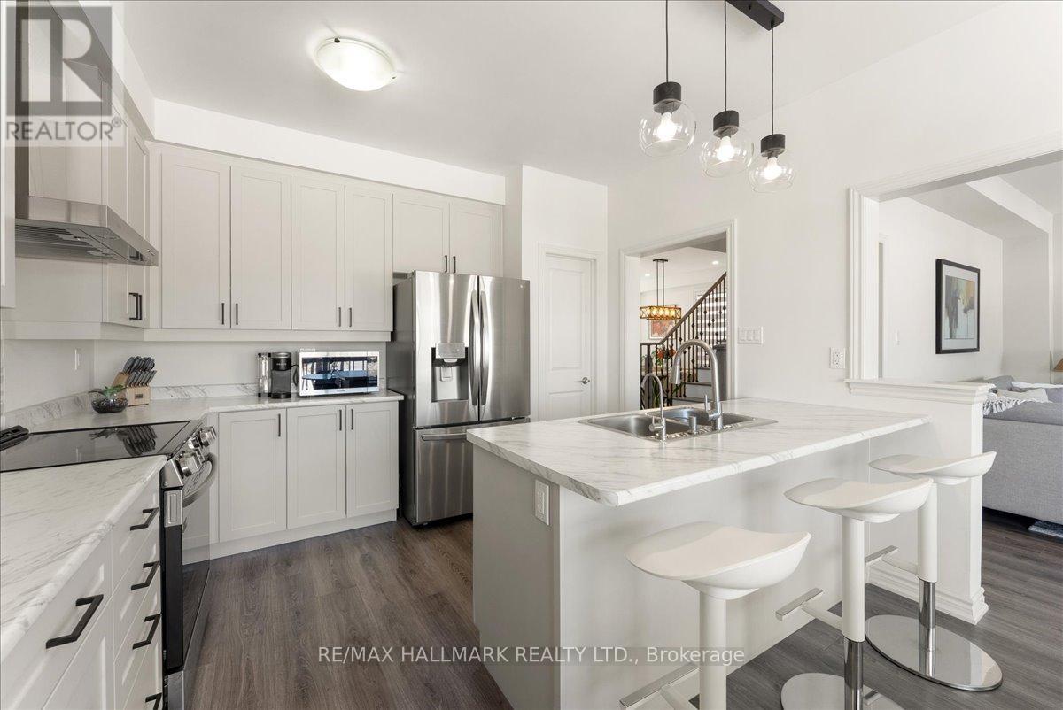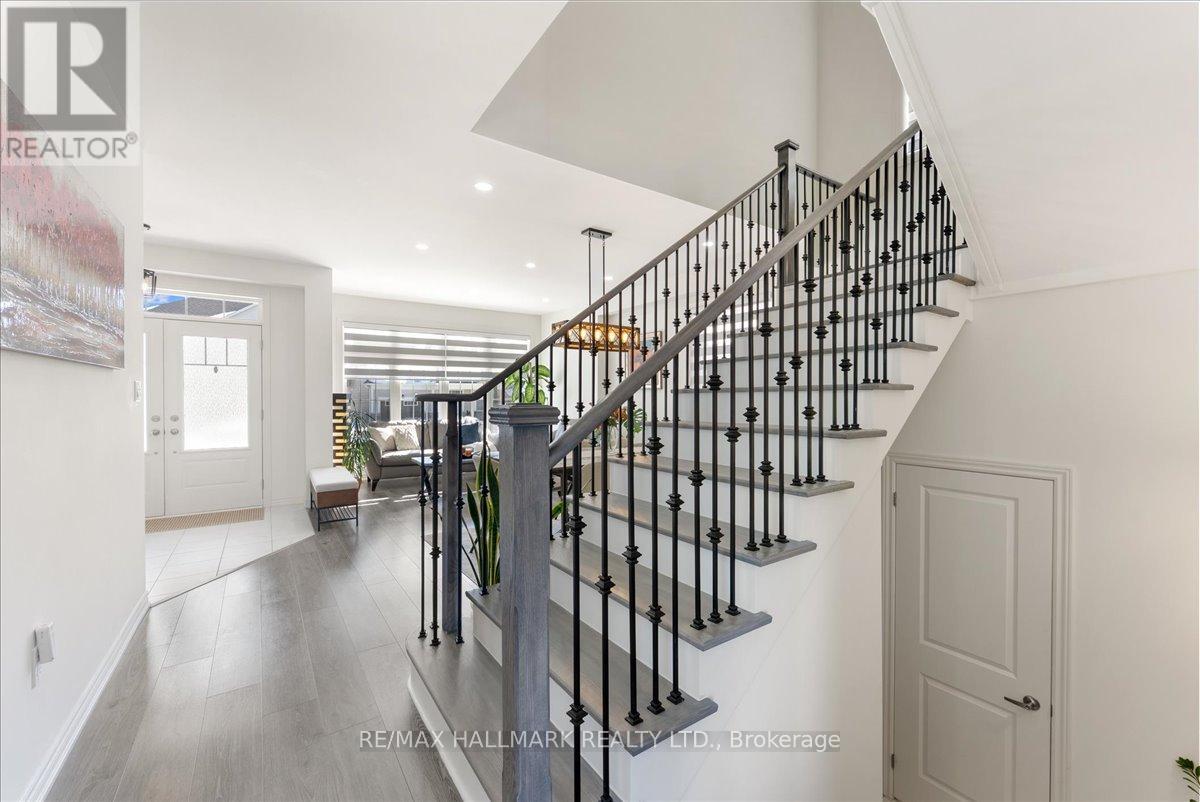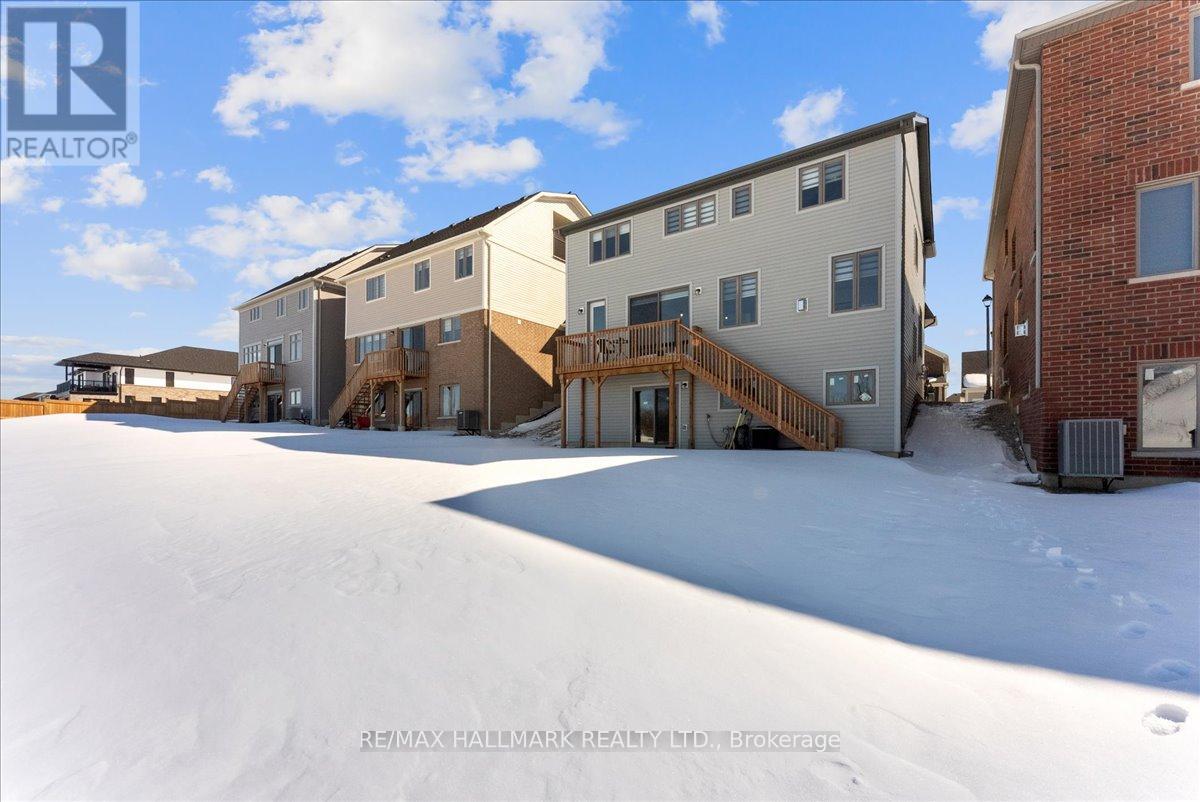 Welcome to 106 Rea Drive in the charming, Storybook community of Fergus! This beautifully maintained, 2-year-new detached home offers 4 spacious bedrooms and a bright, thoughtfully designed layout that is perfect for modern family living. Large south-facing windows in the combined living and dining area fill the home with natural light throughout the day, creating a warm and inviting atmosphere. The family room has a cozy gas fireplace, creating the perfect space for relaxing evenings or entertaining guests. The open-concept eat-in kitchen is designed with both functionality and gathering in mind, featuring ample cabinetry, a convenient pantry closet, and plenty of space for a family dining area overlooking the backyard and open field behind. An elegant oak staircase adds character and style to the home while leading to the upper level. Upstairs, you'll find four generously sized bedrooms, ideal for growing families or those needing additional space for guests or a home office. The spacious primary suite offers a relaxing retreat, complete with a 4-piece ensuite featuring a freestanding tub, separate shower, and a private water closet. The walk-out basement is currently unfinished and provides incredible potential for future living space. Whether you envision a recreation room, home gym, in-law suite, or additional entertainment area, this level offers a true blank canvas ready for your personal touch. Situated in a family-friendly neighbourhood, this home is within walking distance to schools, parks, and scenic trails, making it perfect for active families. The property is also conveniently located near the hospital and local amenities, offering both comfort and convenience in one of Fergus's growing and desirable communities. A wonderful opportunity to own a newer, move-in-ready home with space to grow in a welcoming and vibrant neighbourhood. (id:51158)