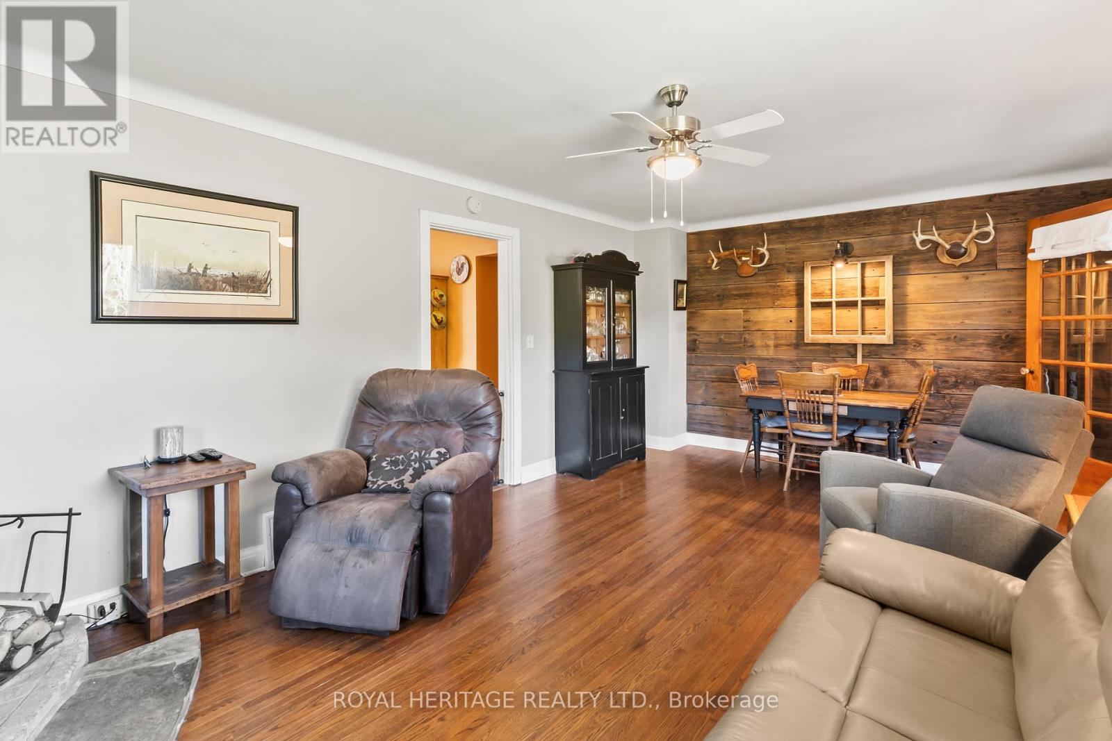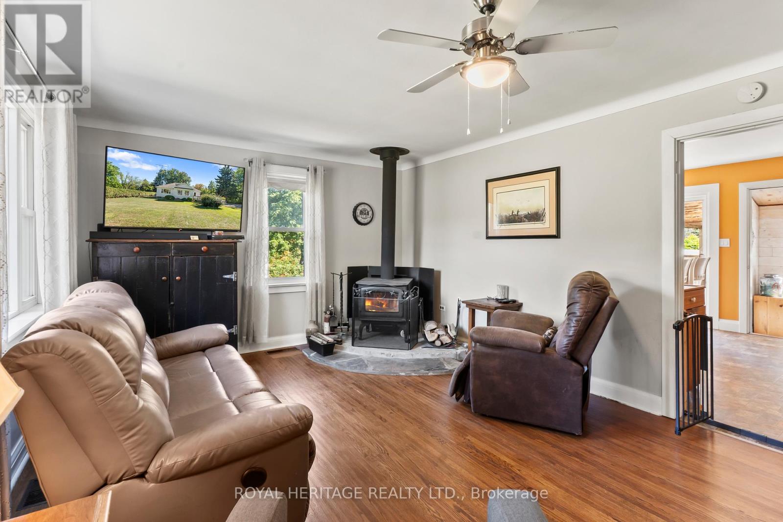 Drive up your own long private lane and step into a property that truly has it all. Over 12 acres of rolling land with winding trails, wide-open fields, and a breathtaking lookout point with panoramic views of Lake Ontario and the hills beyond. At the heart sits a charming two-bedroom bungalow with a walkout deck, hot tub, and BBQ space- the perfect spot for everyday relaxation. The home has seen meaningful updates over the years, including a renovated bathroom in 2024, central air installed in 2022 (with a 10 yr warranty), propane furnace 2017, and ongoing upgrades that provide peace of mind for the next owners. Inside, you'll also find useful touches like a pantry/office space and plenty of natural light. Step outside to a large fenced yard, ideal for pets or kids, with a generous quantity of seasoned firewood ready for use. Beyond the home, the land opens up to a pond, multiple sheds, three chicken coops, and a dog kennel, blending function with country charm. For those who dream bigger, the 24 X 24 garage/workshop is insulated, rewired, and comes with loft storage and an attached carport- a true hub for projects, cars, or hobbies of any kind. All of this is located just minutes from the 401 and close to local conveniences including the library, pharmacy, school and community arena. With ample space for parking and projects, this property offers the rare combination of privacy, space, and convenience. This property is more than just a home, its a lifestyle, an investment, and an opportunity waiting to be unlocked. Your country escape. Your future vision. All here, on 12 unforgettable acres. (id:51158)