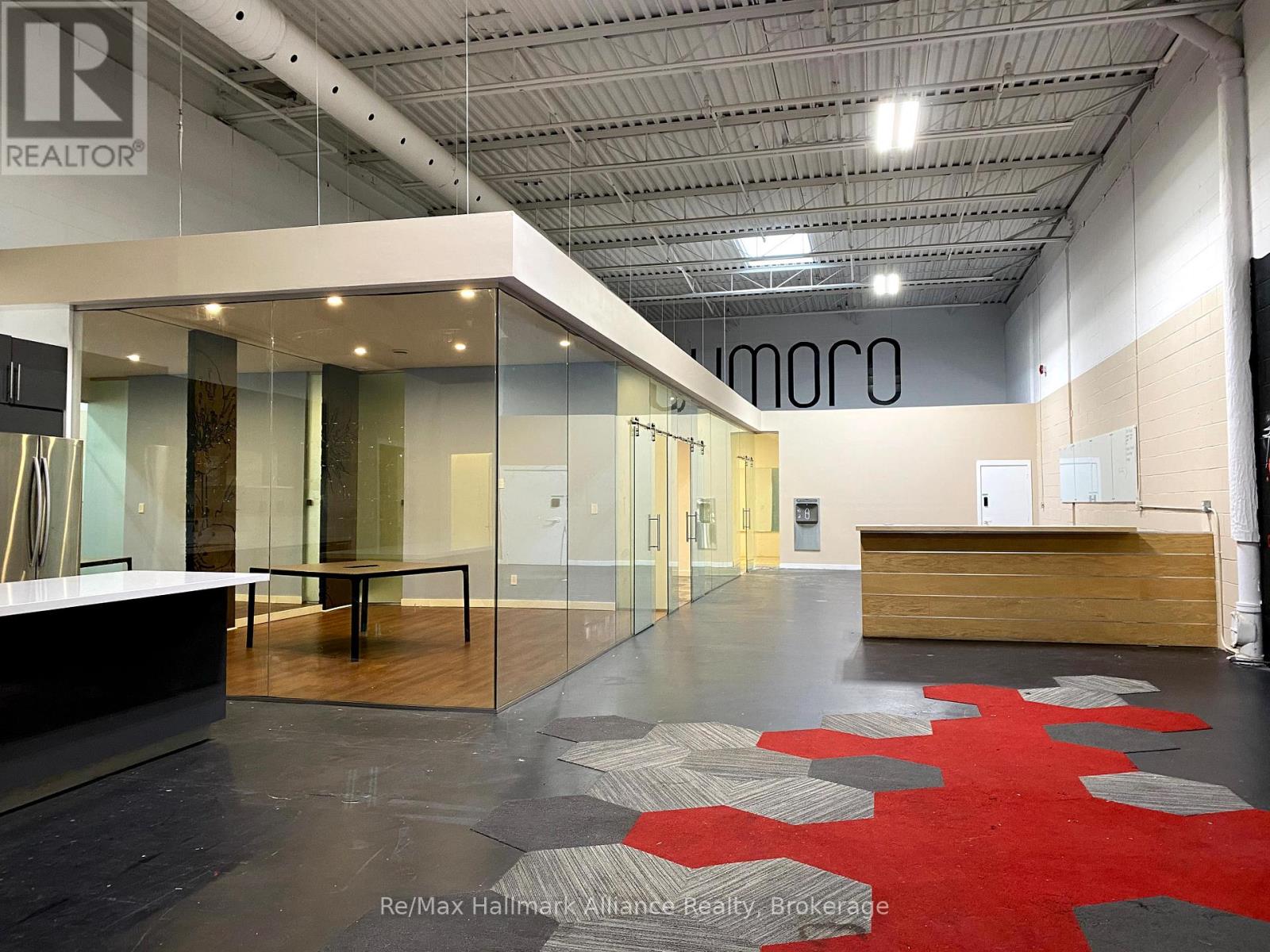Turnkey Designer Industrial/Office Unit. An exceptional opportunity to lease a beautifully upgraded designer unit offering 3,152sq ft of flexible space. This turnkey unit provides direct ground-level access, featuring 19 ft ceilings and a dedicated roll-up door, ideal for businesses requiring seamless access and a polished client-facing environment. Inside, the space boasts three expansive showroom/meeting rooms or private offices, divided by modern glass partition walls and finished with smooth drop-down ceilings all fully climate-controlled for year-round comfort. Additional features include:Two washrooms, both equipped with showers A stylish, designer kitchen for staff or client entertaining and Thoughtfully designed layout, perfect for a creative, tech, showroom, or hybrid office setup. Move-in ready and meticulously finished this is the perfect space for businesses looking to make a strong impression while enjoying functionality and comfort. (id:51158)