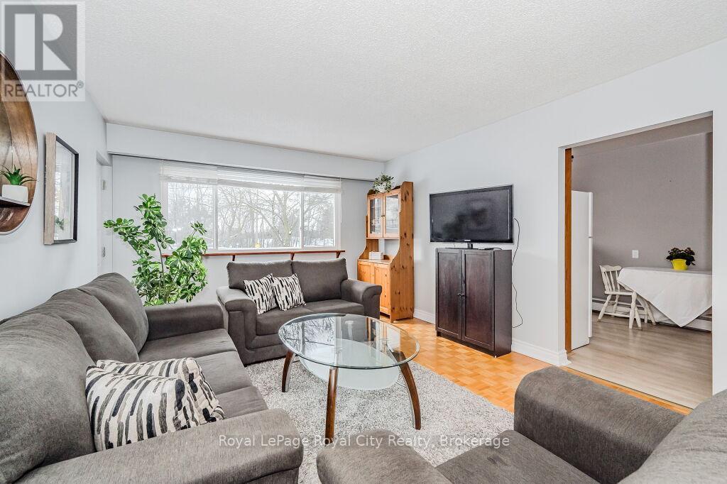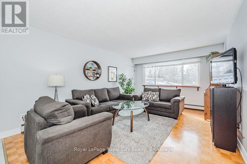 $592 MonthlyWelcome to 1 Sunnylea Crescent, a charming condominium nestled in Guelph's tranquil General Hospital neighbourhood. This intimate Low-Rise building comprises just Eight units offering a serene living environment. The second floor suite boasts a sunlit, open concept living and dining area with a door to your private balcony, perfect for your morning coffee amidst mature trees. With two generous sized bedrooms. The unit includes one Parking space and a convenient storage locker. The Common Area laundry room is open 24-7 (catering to shift workers) and is not coin operated. (id:51158)