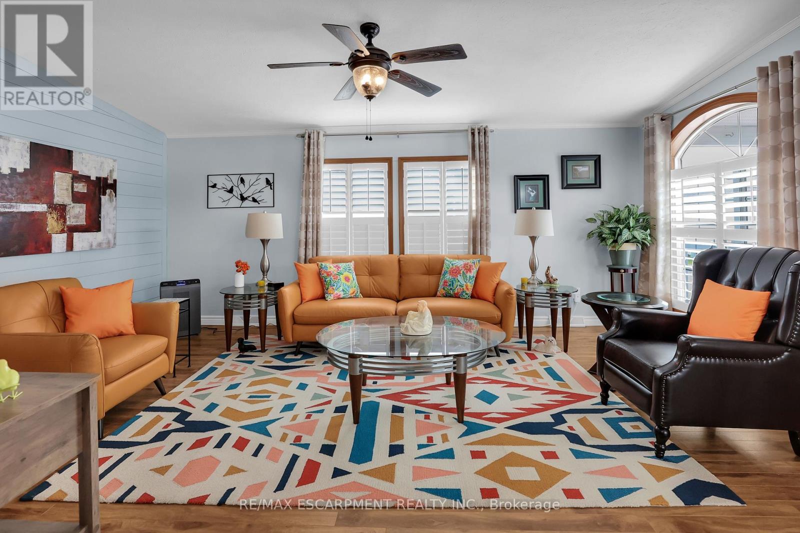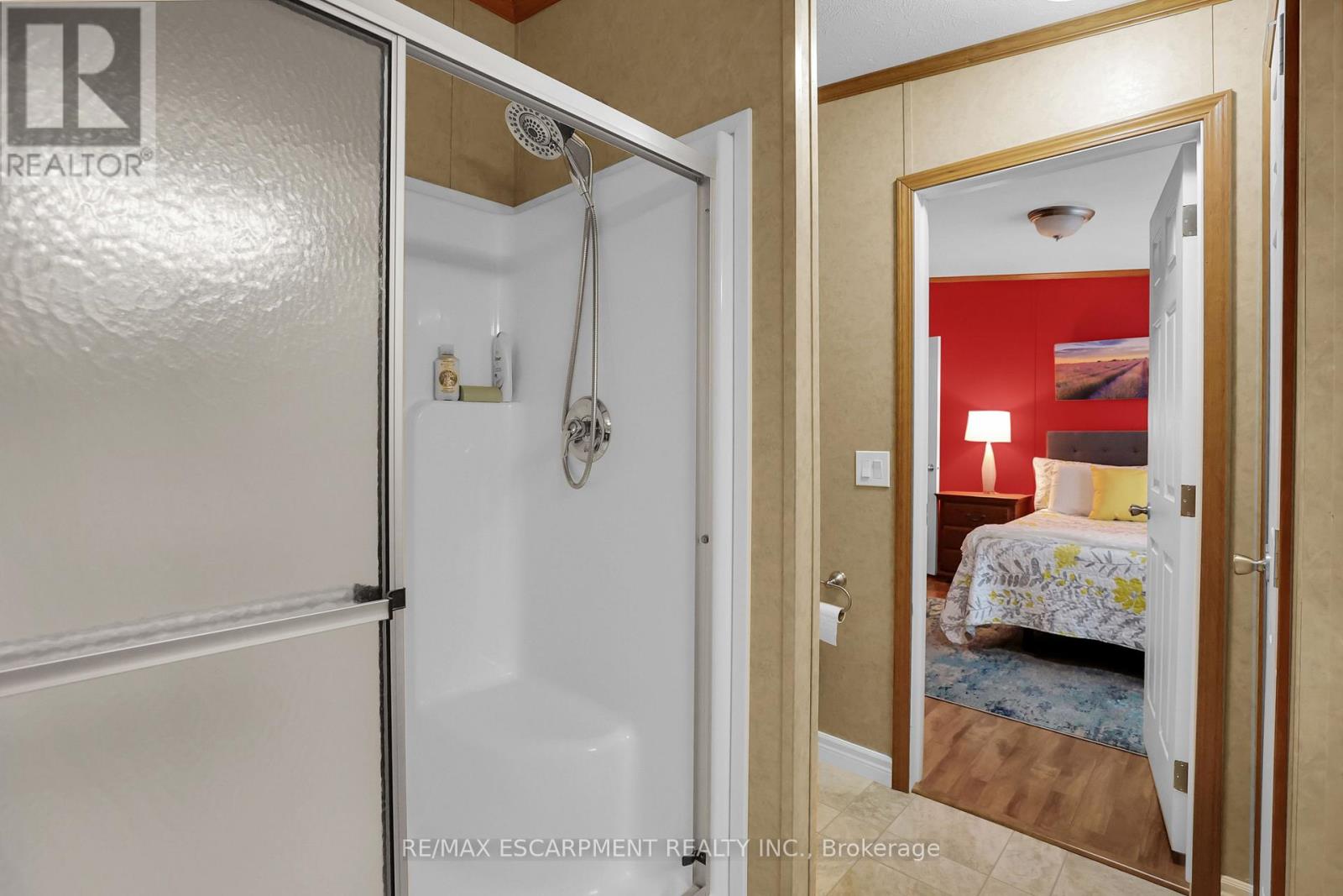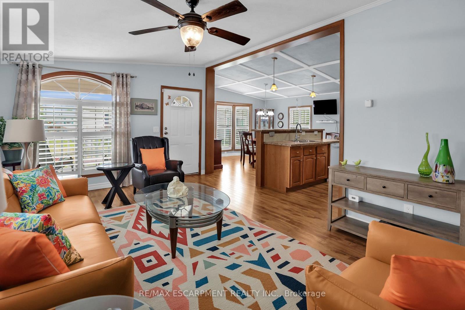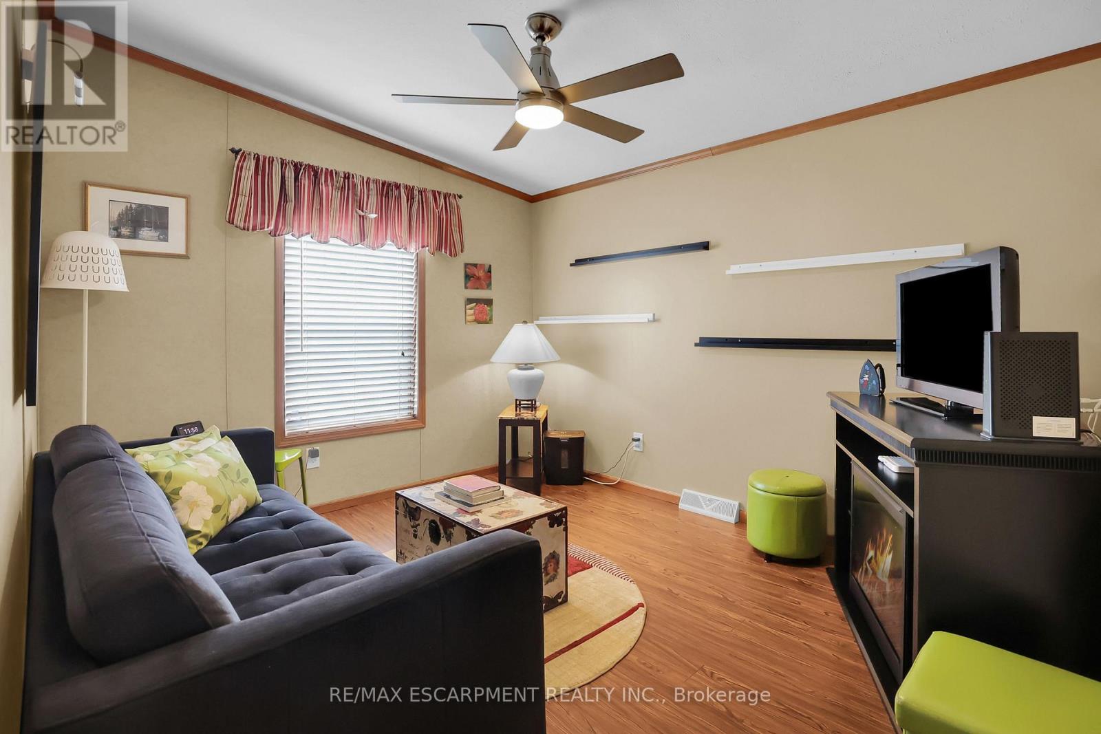 BRIGHT & SPACIOUS BUNGALOW ... Welcome to 107-3033 Townline Road (107 Tamarack Ave), nestled in the heart of Stevensville's vibrant and welcoming adult lifestyle community - a perfect blend of comfort, convenience, and carefree living. This beautifully maintained 3-bedroom, 2-bathroom home offers 1284 sq ft of thoughtfully designed space that's ideal for those seeking a relaxed and active lifestyle. Step inside to find a bright, OPEN CONCEPT layout featuring vaulted ceilings and California shutters throughout, a spacious living room with lovely accent wall, and flows seamlessly into the dining area and well-equipped kitchen - complete with a breakfast bar island, gas stove, and built-in microwave. The spacious primary suite is a private retreat with a WALK-IN CLOSET and ensuite bath featuring a WALK-IN SHOWER. Two additional bedrooms, a second full 4-pc bath, and a large linen closet offer plenty of room for guests or hobbies. Outside, enjoy your morning coffee on the covered front deck or unwind on the covered side deck with direct access from the laundry room. A walkway leads to a charming STAMPED CONCRETE patio beside the garden shed, perfect for enjoying the outdoors, and continues all the way out front to the double wide stamped concrete driveway (2022). Additional features include leaf filter gutter protection (2021) and a welcoming low-maintenance exterior. Living here means more than just a beautiful home; its a lifestyle. Enjoy full access to the community's incredible amenities: indoor/outdoor pools, sauna, clubhouse, shuffleboard, tennis/pickleball courts, fitness classes, and an active calendar of social events. If you're ready for low-maintenance living in a close-knit community that offers both peace and activity, this is your opportunity. Monthly Fees $1088.36 ($825.00 Land Lease + $263.36 Taxes, Approximate). (id:51158)