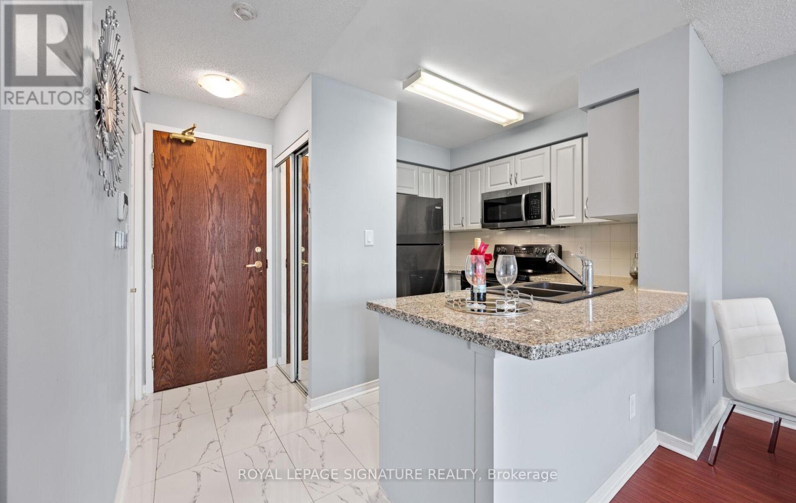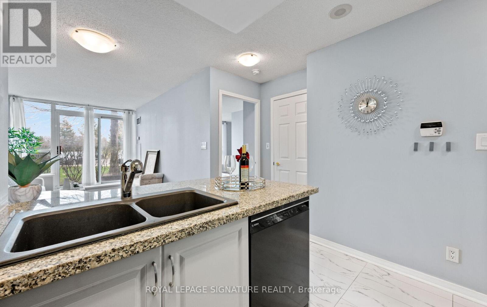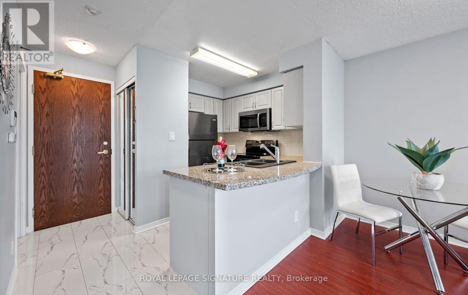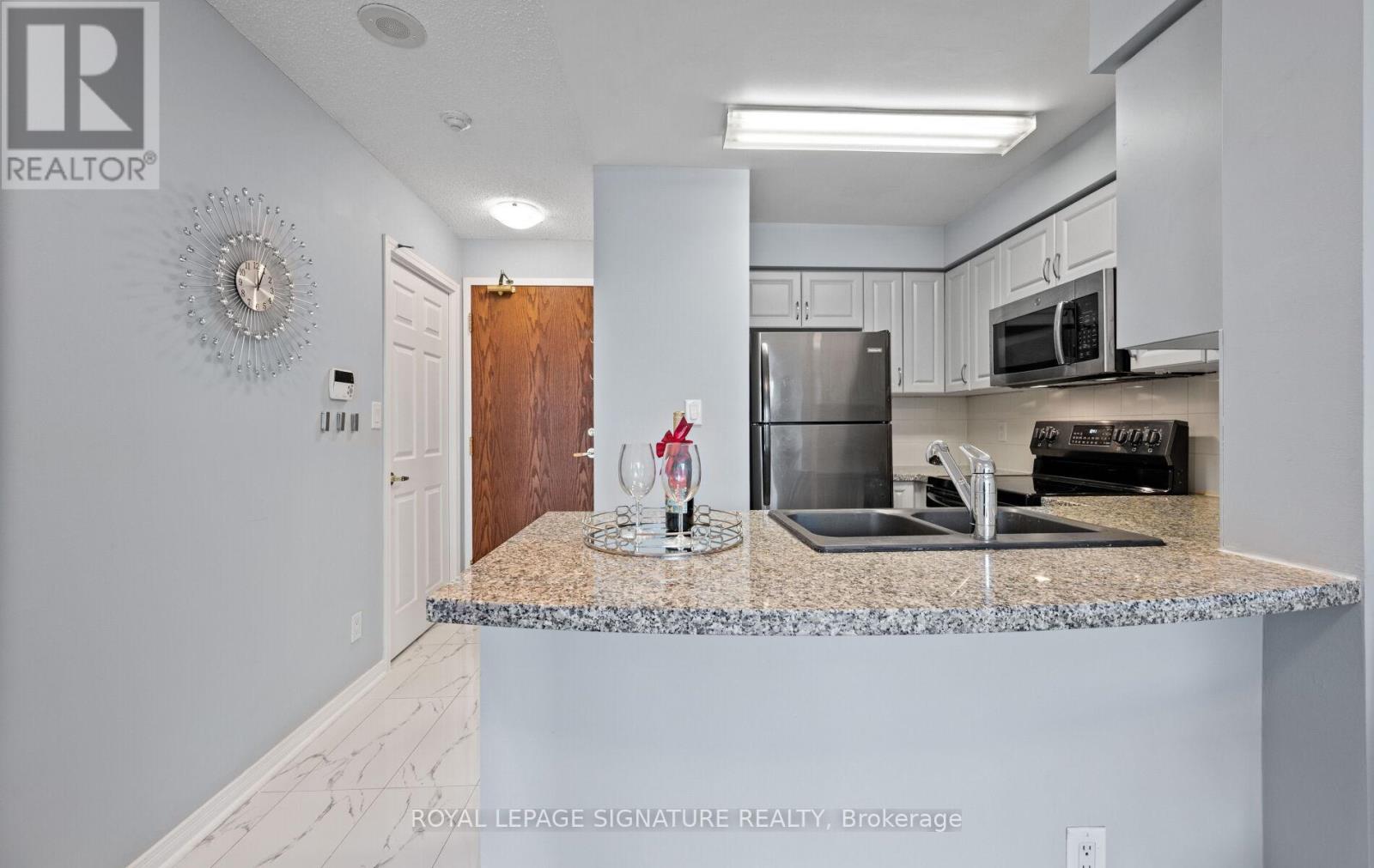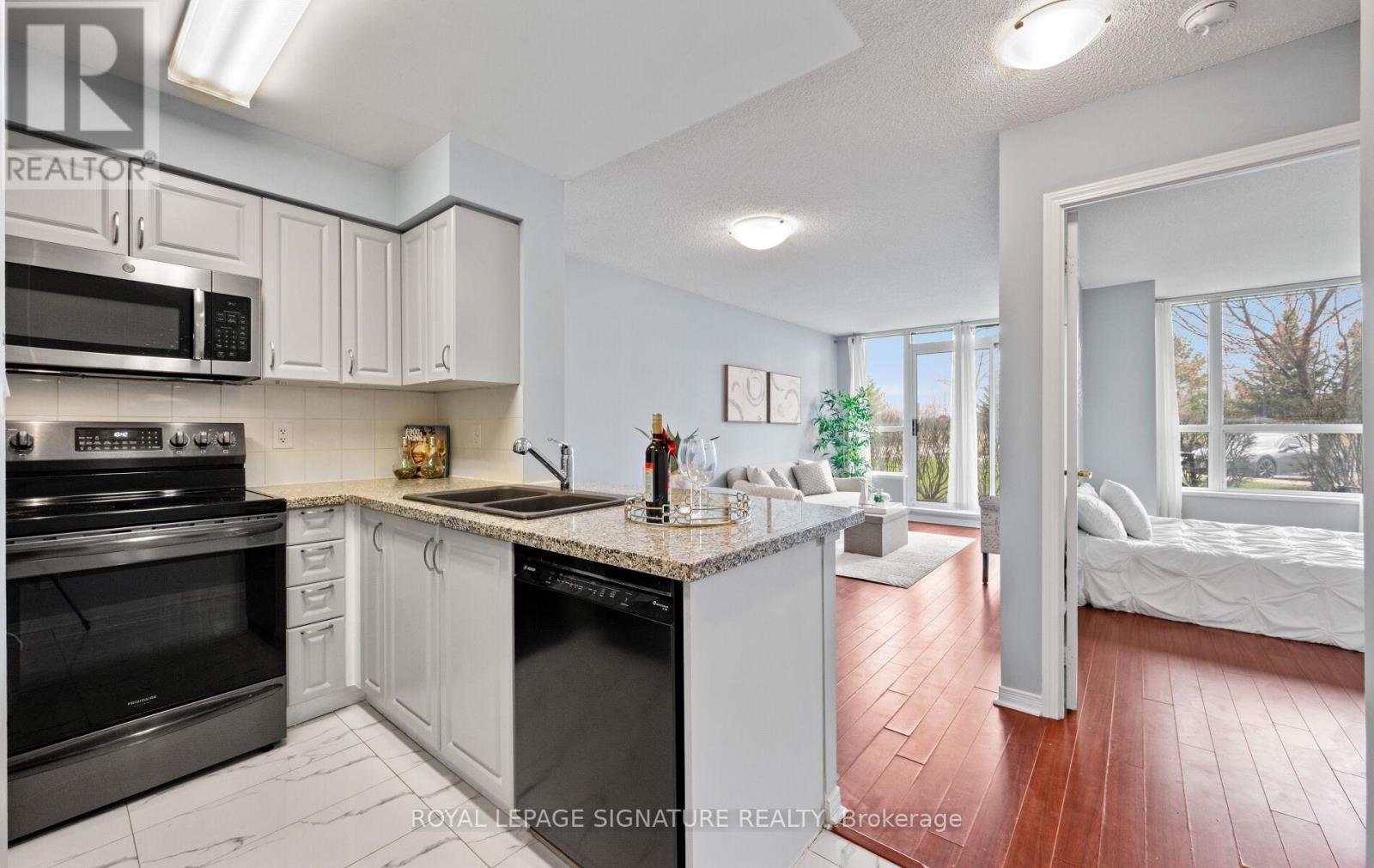 $533.90 MonthlyLooking for easy, low maintenance living? This rarely Offered ground floor condo has everything you need-Including your own private patio to relax, or sip your morning coffee. No stairs, no elevators to deal with, no hassle. Inside you'll find a bright and cheery open layout with 1 bedroom plus den. The Kitchen offers updated cabinet fascia & floor tiles, Stainless steel appliances and granite countertops with breakfast bar- perfect for casual dining. Spacious open concept living/dining room. Ensuite laundry. 1 underground parking, Locker. Freshly painted. This impeccably maintained building offers top notch amenities: an indoor pool, fully equipped gym & exercise room, party room, games/billiard area, fabulous outdoor deck/BBQ area, 24hour concierge /Security, ample visitor parking and is ideally located near Credit Valley Hospital, Hwy 403, Transit, Erin Mills TC, shopping and more. Whether you're a first- time buyer, downsizing or looking for a great Investment opportunity, this inviting condo checks all the boxes. (id:51158)