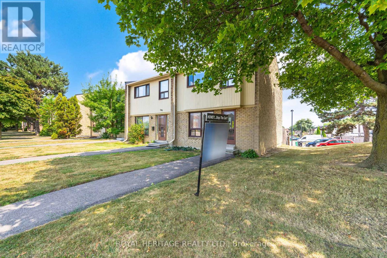 $607 MonthlyLarge end unit townhouse is currently undergoing outdoor renovations and improvements . This fine, family friendly community offers steps to green space, parks, all shopping, schools, transit + places of worship. Beat the heat in the outdoor pool. Ample room sizes throughout .Finished basement with wet bar. Eat in kitchen. Main floor powder room. Fenced backyard, Snow removal, ground maintenance, water, cable, internet all included in your maintenance fees. Prime Location, perfect for commuting, close to Go station, churches and schools. Steps to public transit, shopping, dining and community centre. Heating and cooling w cost effective heat pump . Forced air gas if back up required. (id:51158)