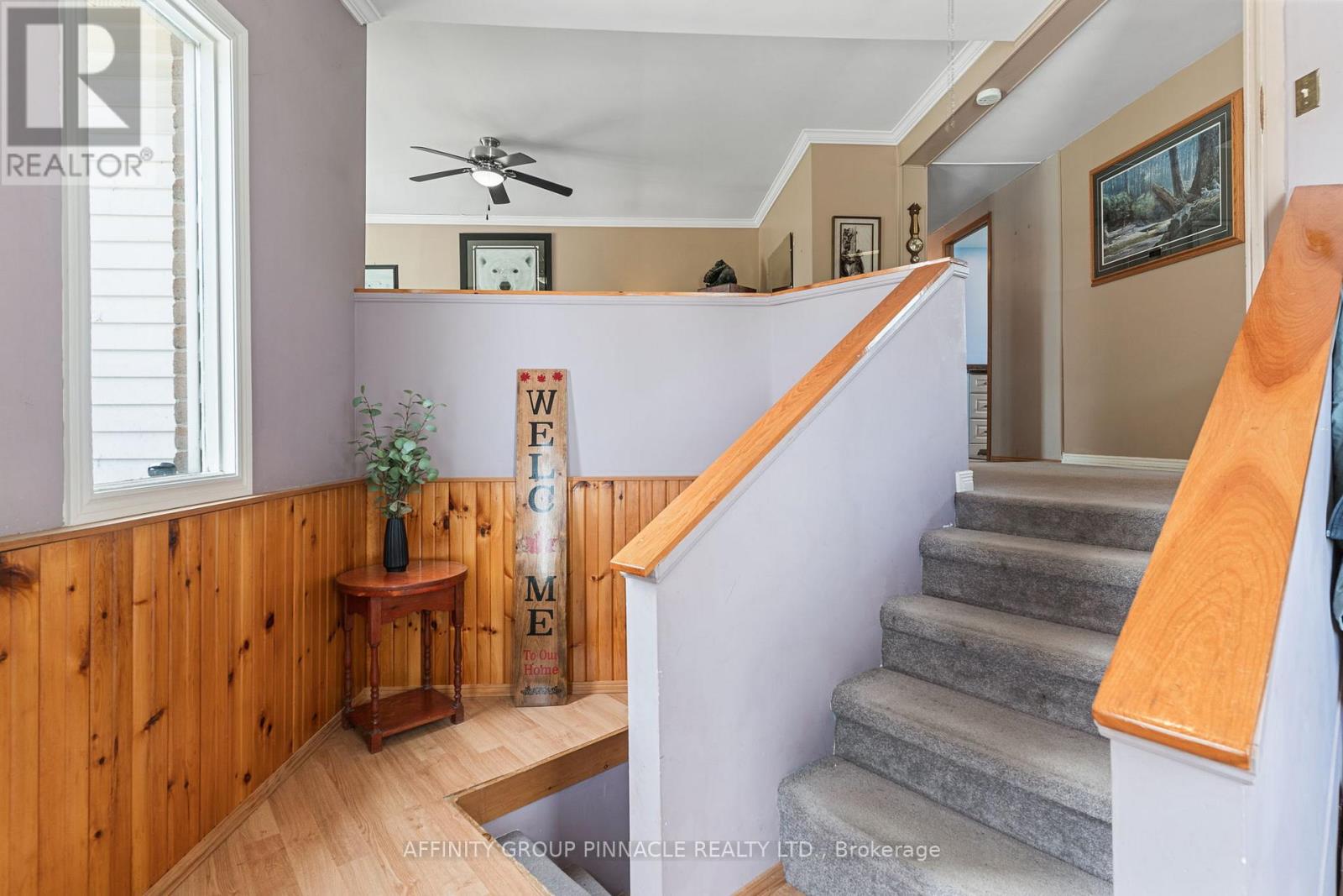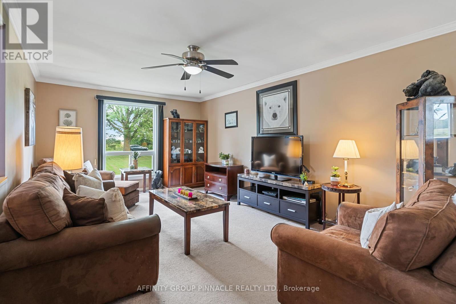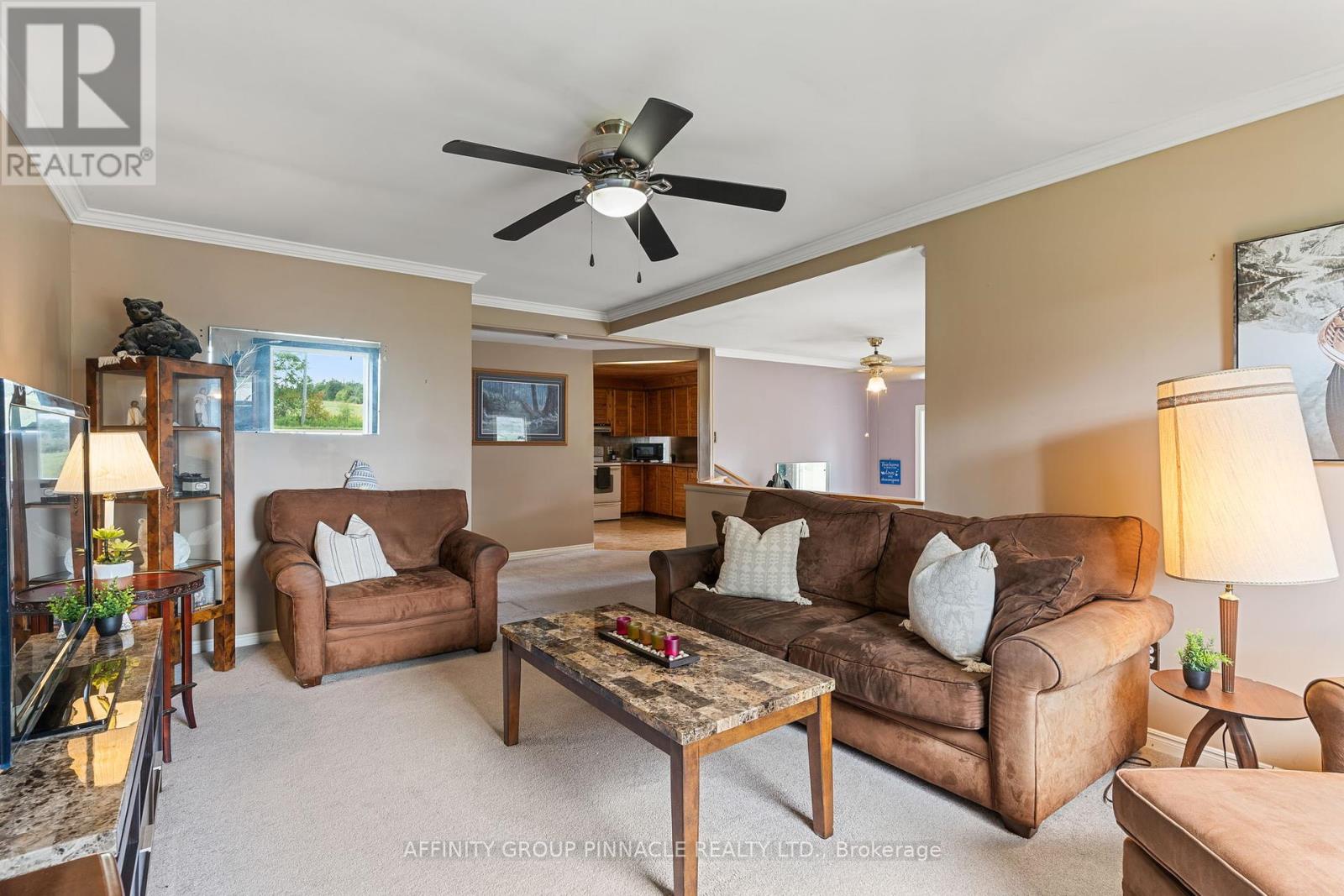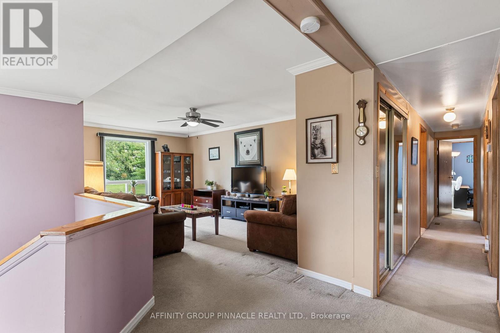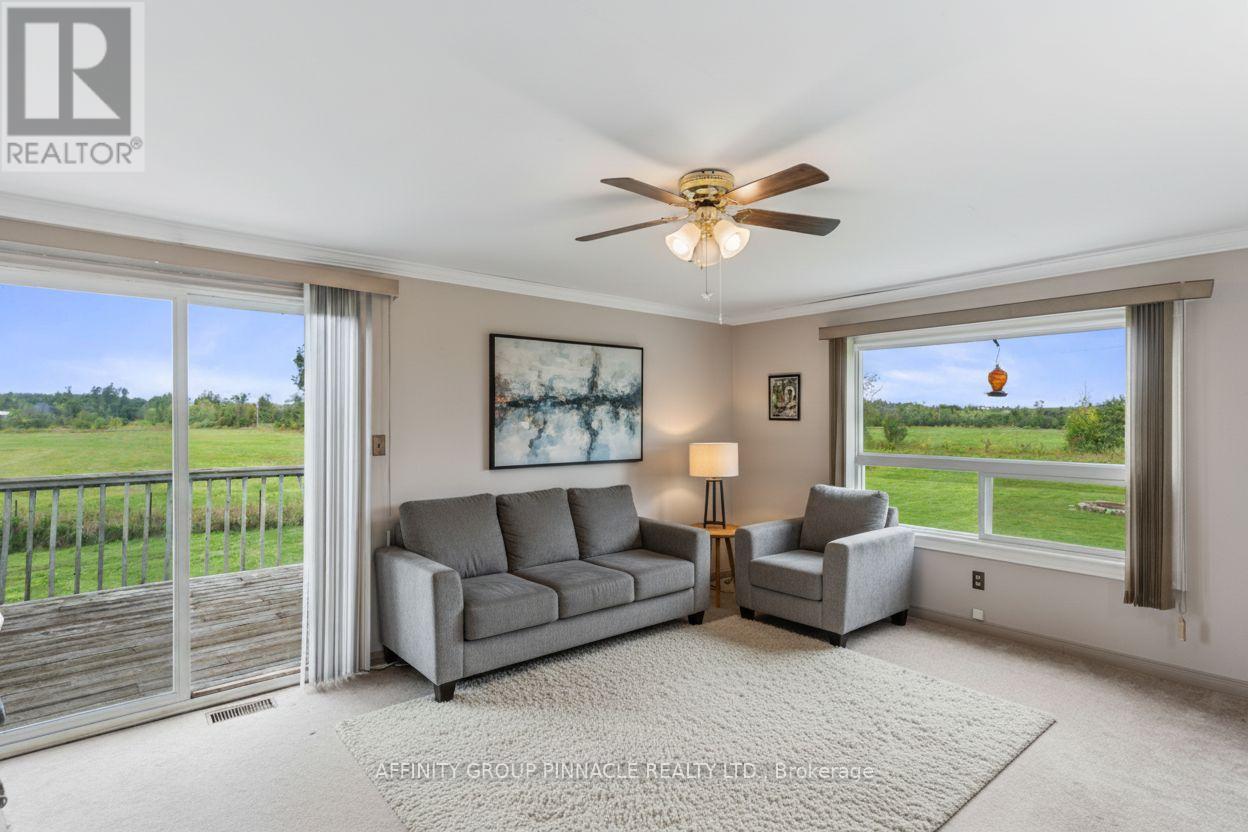 Spacious and full of potential, this 3+1 bedroom, 2 bathroom home sits on nearly a full acre corner lot just 10 minutes from Lindsay. With two generous upstairs living areas, theres plenty of room for both relaxed family time and formal entertaining. The warm, wood eat-in kitchen makes everyday meals comfortable and inviting, while the updated main bath (2024) and private master ensuite add modern convenience. The fully finished lower level is designed for fun, featuring a large rec room, bar area, an additional bedroom and plenty of storage. Recent updates include 12 new windows (Sept 2023) and a brand-new furnace (July 2024), giving peace of mind for years to come. Outdoor enthusiasts will love the three versatile sheds (two for storage, one set up as a hangout), plus a spacious lot with endless possibilities for gardening, play, or entertaining. With abundant living space inside and out, large closets throughout, and a prime location close to town, this property is the perfect blend of comfort, updates, and lifestyle opportunity. (id:51158)