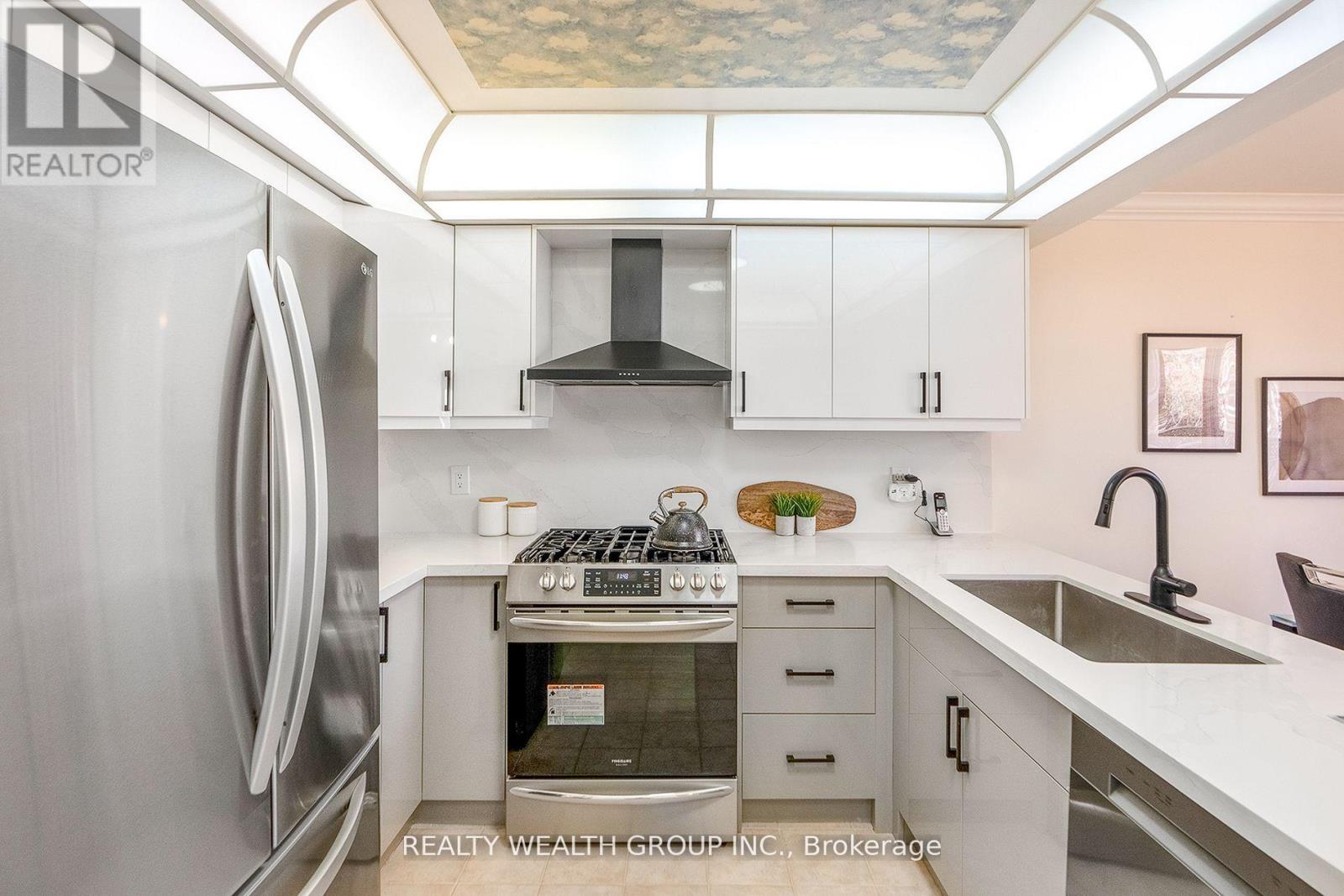 Beautifully maintained and thoughtfully updated home in one of Mississauga's most sought-after neighborhoods. The newly renovated kitchen boasts quartz countertops, Updated Pot lights modem cabinetry, stainless steel appliances, and a gas stove combining style with everyday functionality. Upgrades include new flooring, custom staircase with sleek railings, updated vanities, pot lights, and large windows that flood the home with natural light. This rare and spacious, multi-use family room on its own level is perfect as a second living space or potential 4th bedroom. Enjoy a private backyard retreat with a cedar patio and lush greenery ideal for relaxing or entertaining. A finished basement offers additional flexible space for a home office, gym, playroom, or media room. Extras: double-car garage with 240V EV charger, close to top-rated l flexible space for a home office, gym, playroom, or media room. Extras: double-car garage with 240V EV charger, close to top-rated public and catholic schools, easy access to Hwy 401, 403 and QEW, and minutes to Heartland Town Centre & Square One. (id:51158)