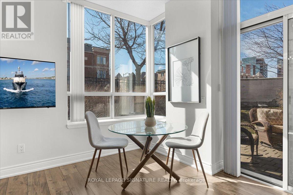 $784.04 MonthlyDon't miss this rare ground-level gem at Liberty Tower - a beautifully renovated 2-bedroom, 2-bathroom corner unit offering exceptional comfort & convenience. This bright and open suite features $27,000 in upgrades in the kitchen and bathrooms, enhancing every square foot with style & function. Largefloor-to-9' ceiling windows with new blinds flood the indoor space with natural light. Extend your living space to the outdoors by stepping outside to your private terrace with direct garden access for a peaceful,green escape, perfect for entertaining, relaxing or hanging out with your pet. The unit includes underground parking & locker for added storage. Ideally located, minutes away from 404, 407, and 401, with a GO shuttle 5 minutes away for both trains & buses & the local VIVA bus is right outside your door! Perfect for professionals and/or smart-sizers. (id:51158)