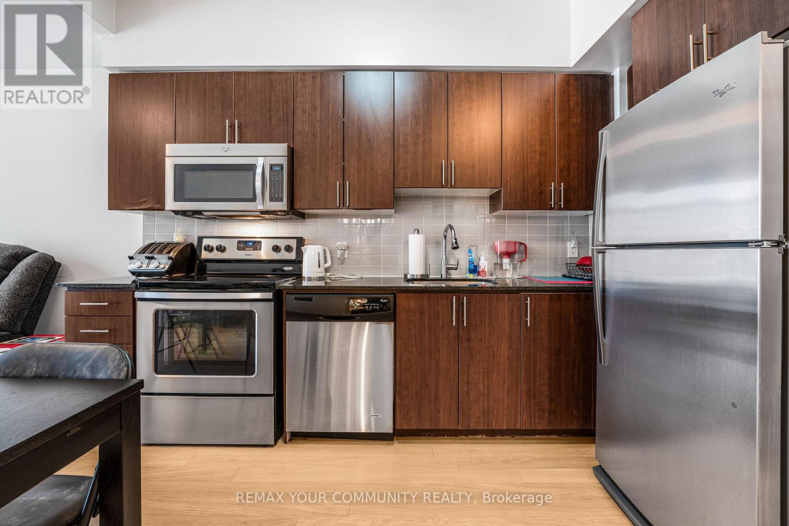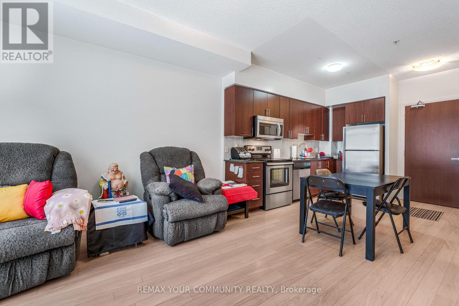 $561.49 MonthlyWelcome to a bright and thoughtfully designed 1-bed + den condo at The Fountains, nestled in the heart of Vaughan's desirable Beverley Glen community. This comfortable ~645 sq ft suite features an open-concept layout with 9-foot ceilings, abundant natural light, stainless steel appliances, and in-suite laundry. Step outside to your private ground-level patio - a perfect extension of your living space for morning coffee or casual evenings. Residents enjoy a full range of resort-style amenities including an indoor pool, fitness centre, party and games rooms, 24-hour concierge and more. Ideally located just steps from Promenade Mall, shops, restaurants, parks, transit and with easy access to Highways 7, 407 and 400, this home strikes a great balance of convenience and lifestyle for first-time buyers, investors or anyone seeking low-maintenance urban living. (id:51158)