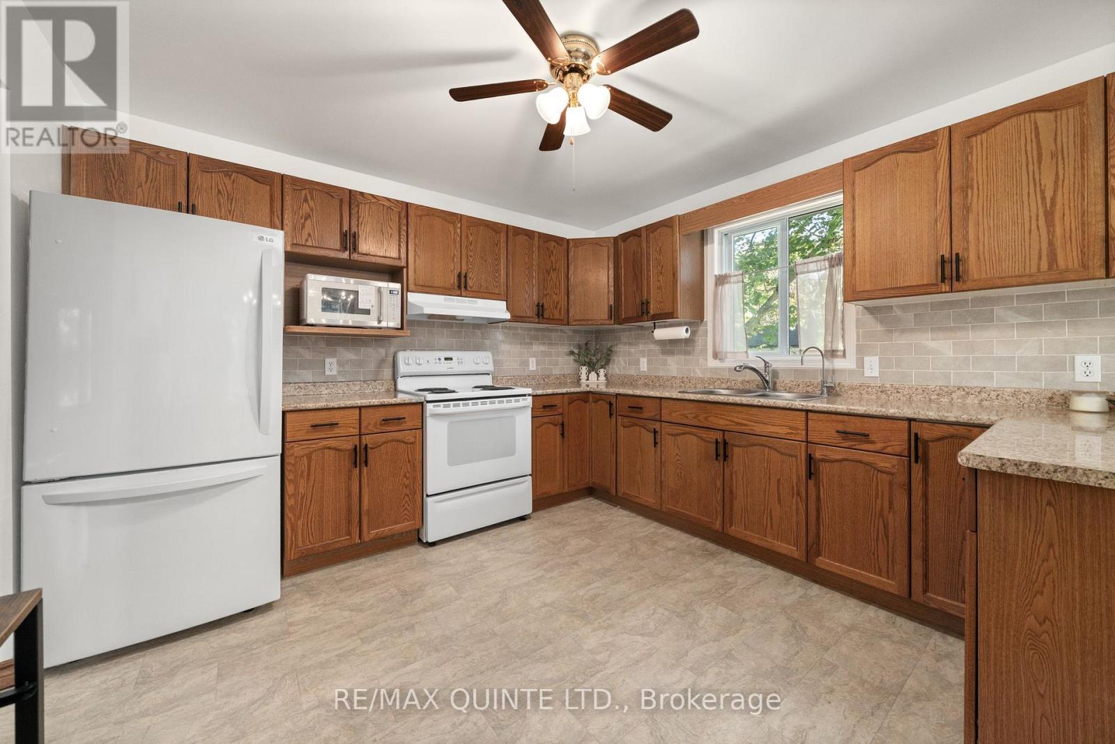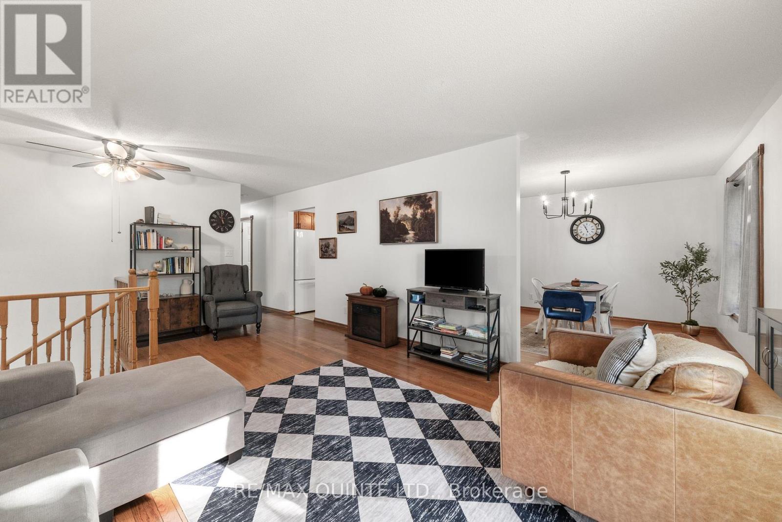 This meticulously maintained property is located in Madoc and is within walking distance to all amenities in the heart of the village, including a daycare and public school closeby, perfect for families. This home offers a bright and spacious foyer leading to a semi-open concept layout on the main level, which features 3 bedrooms and 1 bathroom. The main area is enhanced by hardwood flooring and wood trim work, creating a welcoming living space ideal for both everyday living and entertaining. The primary bedroom links to the main bathroom for functionality and includes direct access to a sunroom overlooking your private backyard space. The lower-level rec room features a gas fireplace and offers additional living space with a fourth bedroom and a second bathroom, ideal for guests or family use. Outdoors, you have a bright welcoming porch with manicured front lawn or enjoy the two-tier deck out back overlooking your green space bordered by a mature cedar fence line and no immediate rear neighbours. A paved driveway provides ample parking for 4 vehicles leading to the attached garage. The home has been freshly painted throughout, updated mechanical systems and water treatment systems offer peace of mind and makes this property move-in ready. (id:51158)