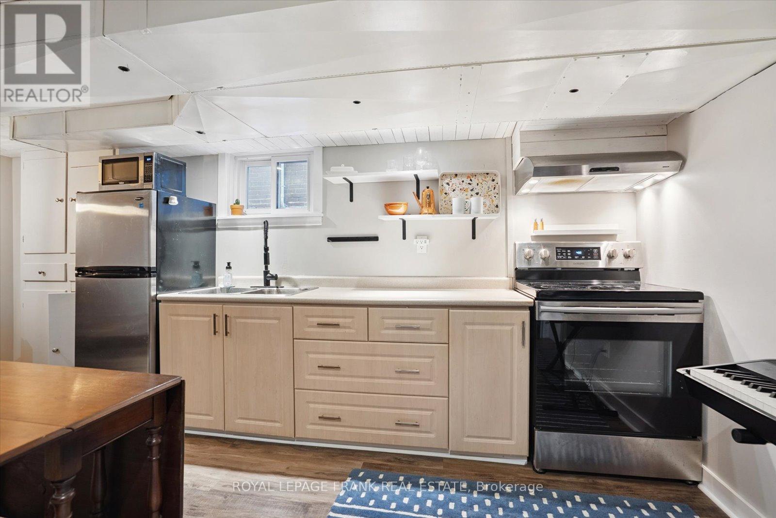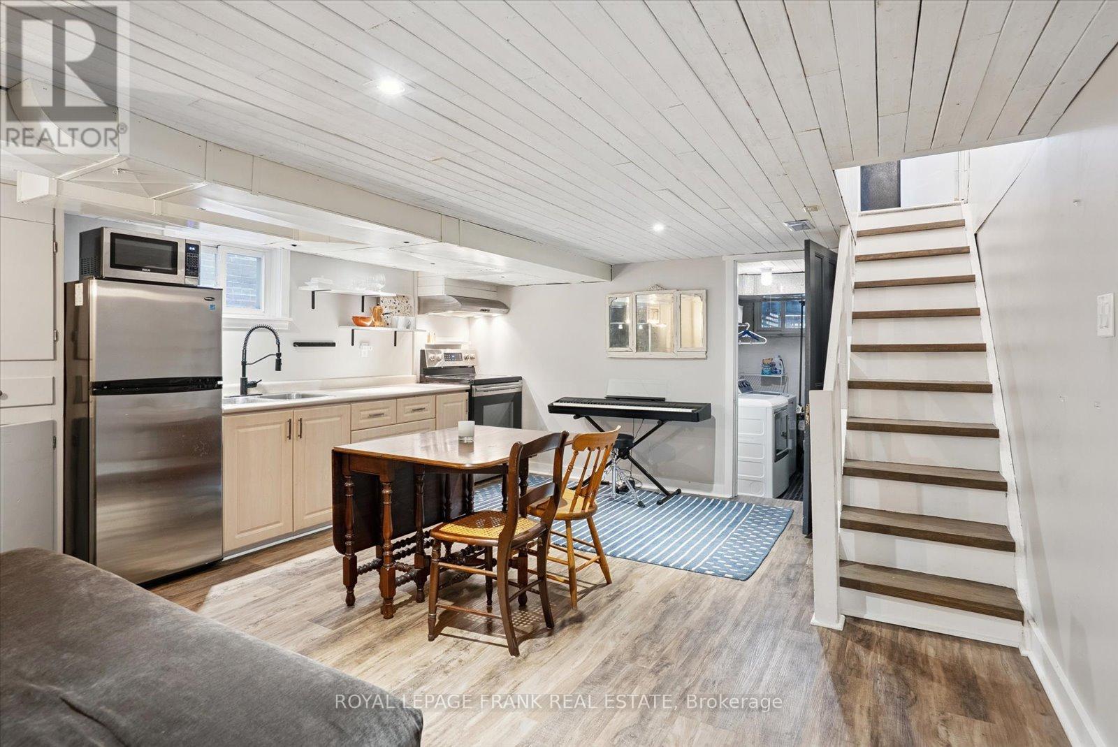 Charming Detached Home in the Heart of Leslieville.Welcome to this beautifully maintained home,perfectly situated in one of Toronto's most sought-after neighbourhoods.Enjoy all that Leslieville has to offer-an area known for its vibrant culinary scene,family-friendly amenities,&distinct community atmosphere that effortlessly blends urban energy w/strong neighbourhood feel.Located steps from Greenwood Park&short walk to the 24-hr Queen St or Gerrard streetcar,you're close&connected to downtown while enjoying the comforts of a close-knit community.The fenced front yard&oversized enclosed front porch offer charming curb appeal&a welcoming, functional entry.Inside,you're greeted w/gleaming hardwd flrs in the family&dining rms which flow into the bright kitchen creating a warm&inviting space for entertaining&everyday living.From the kitchen,W/O to back deck ideal for morning coffee or evening dining.A renovated powder rm completes the main flr.The 2nd flr features 3 generously sized bedrms fully renovated bath beautifully updated while maintaining the homes original character.The fully finished lower level includes a self-contained in-law suite w/its own kitchen,bedrm&bath perfect for extended family,guests,or additional income potential.The private backyard offers a serene setting for relaxation or play.Additional highlights include a detached garage&parking behind the home,providing practical storage&convenience.Unbeatable location:Just steps from Greenwood Park,where you'll enjoy a wealth of amenities including a playground,outdoor pool,splash pad,skating trail,outdoor rink,dog off-leash area,& the beloved Leslieville Farmers' Market an ideal family home.Recent updates include:Full home rewiring&removal of knob and tube,Basement kitchen,Basement bath,All appliances '18*A/C unit '19*Primary bedrm&2nd-floor windows '20*2nd floor bath,Roof shingles&flat roof replacement '21*Backyard fence'23*2nd&3rd bedrm windows,Front door&windows in the enclosed porch '24*Powder rm'25. (id:51158)