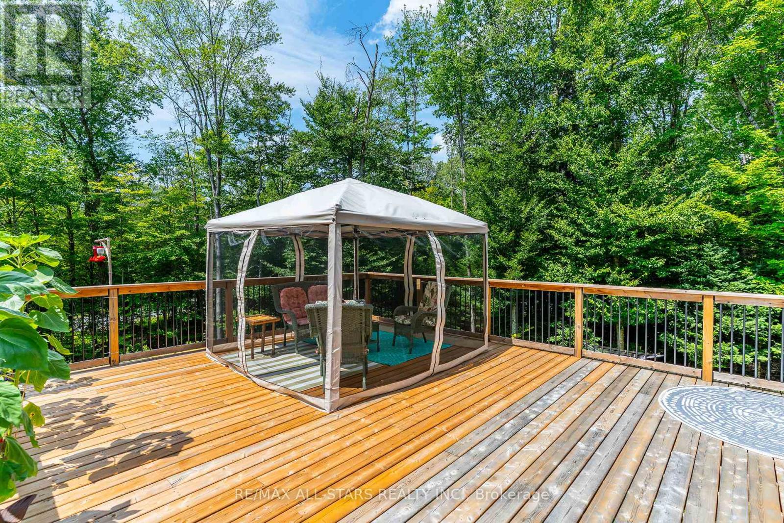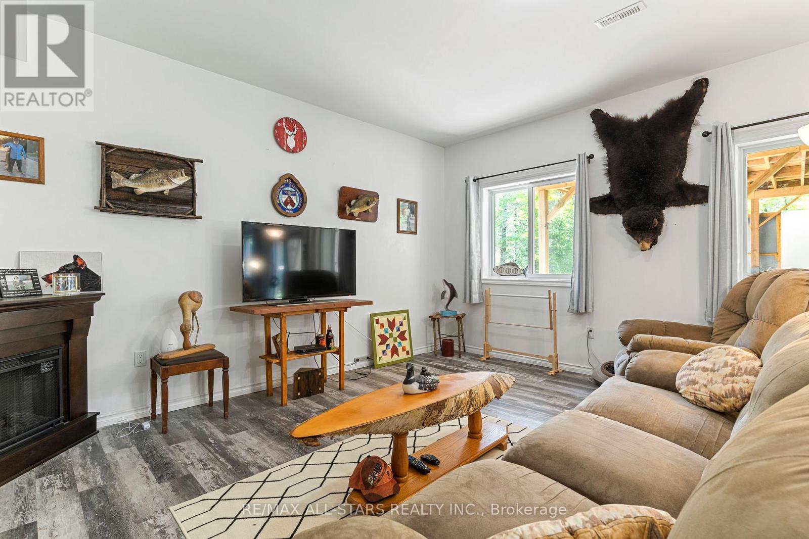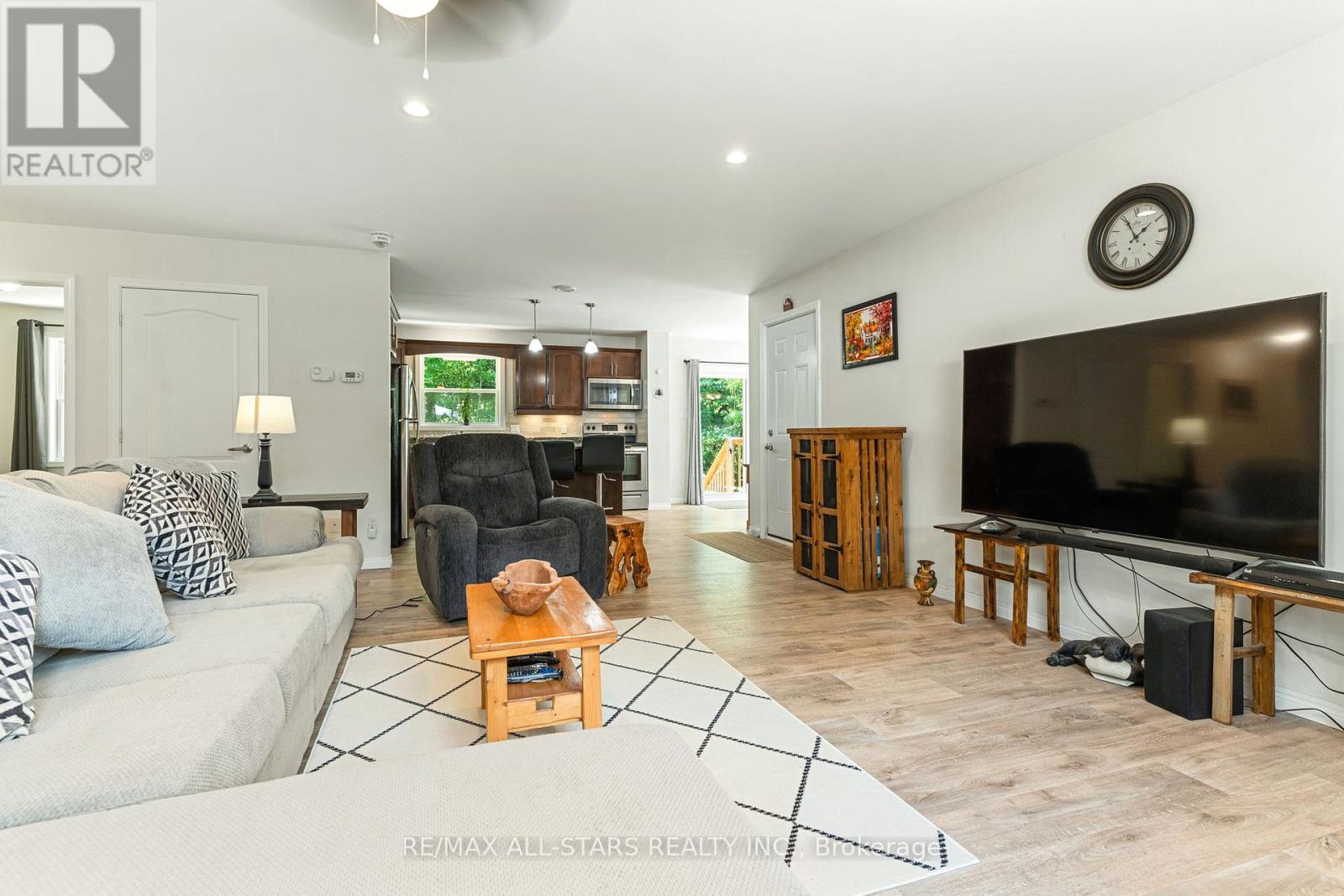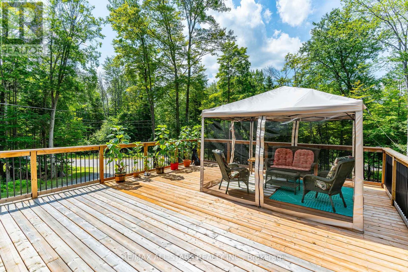 Tucked away on a quiet township road just 10 minutes form Haliburton, this well maintained raised bungalow offers the perfect mix of comfort, privacy, and outdoor adventure.  Set on a peaceful 1.8 -acre lot, this 4-bedroom, 2-bathroom home is only 7 years old and move-in ready.  The main floor features a bright, open-concept layout with a modern kitchen, stainless steel appliances, and a dedicated dining space framed by large windows that bring in views of the surrounding forest.  The spacious living area includes a walkout to a large deck. Ideal for entertaining, relaxing or grilling with friend and family. Downstairs, the finished lower level offers incredible flexibility with a generous rec room, a fourth bedroom, 3-piece bathroom and a dedicated laundry/utility room. A walkout leads directly to the covered carport providing sheltered parking or extra storage for outdoor gear. Just a short stroll down the road brings you to municipal lake access, where you can enjoy swimming at the sandy shoreline or launch your boat for fishing and exploring the waters of Spruce and Drag Lakes (id:51158)
