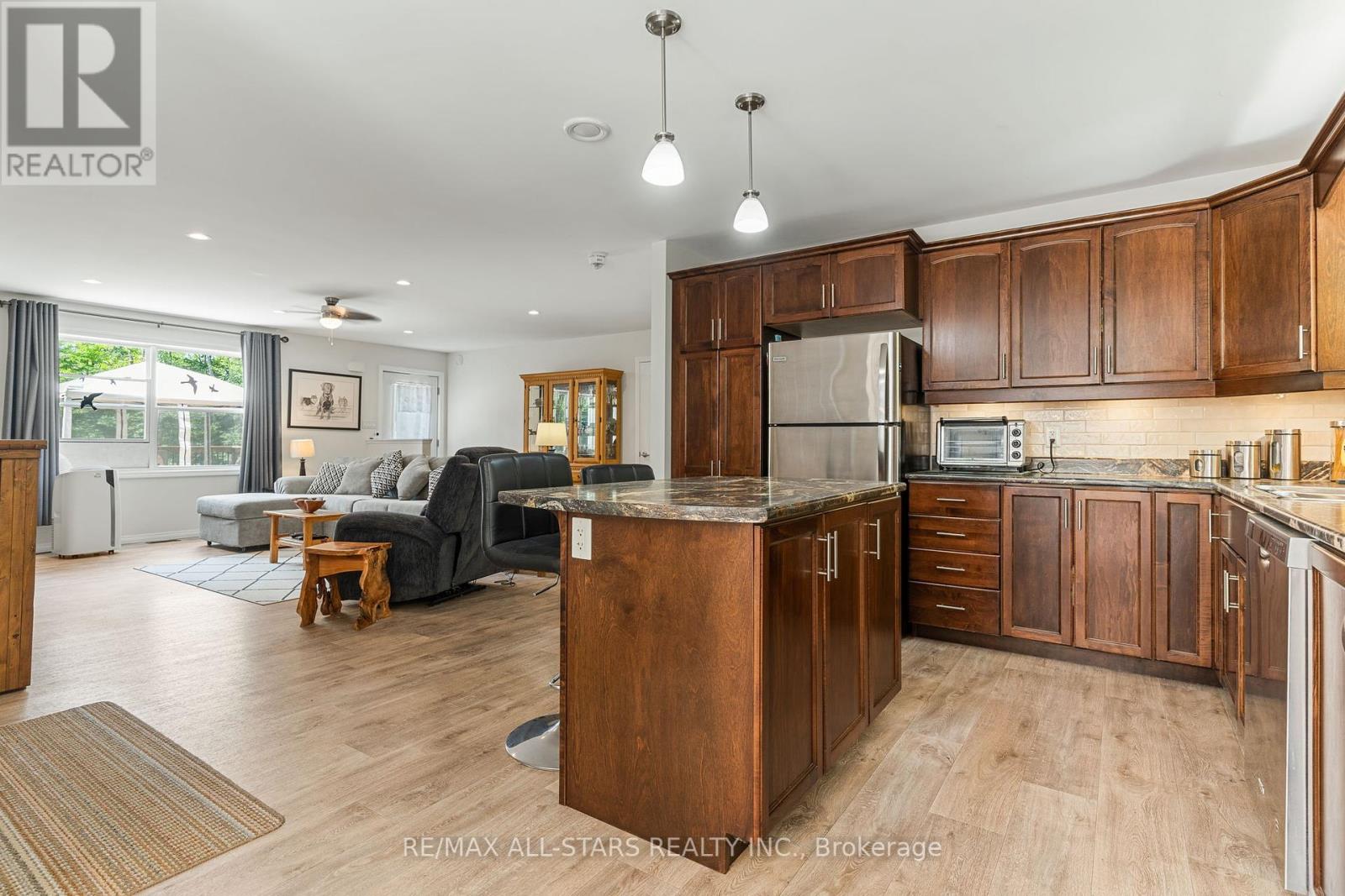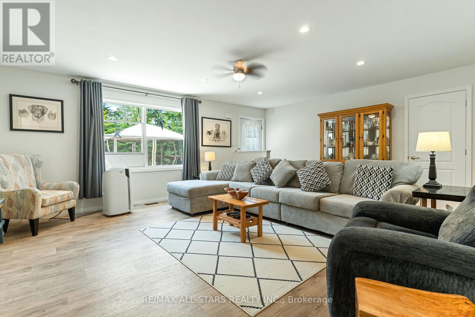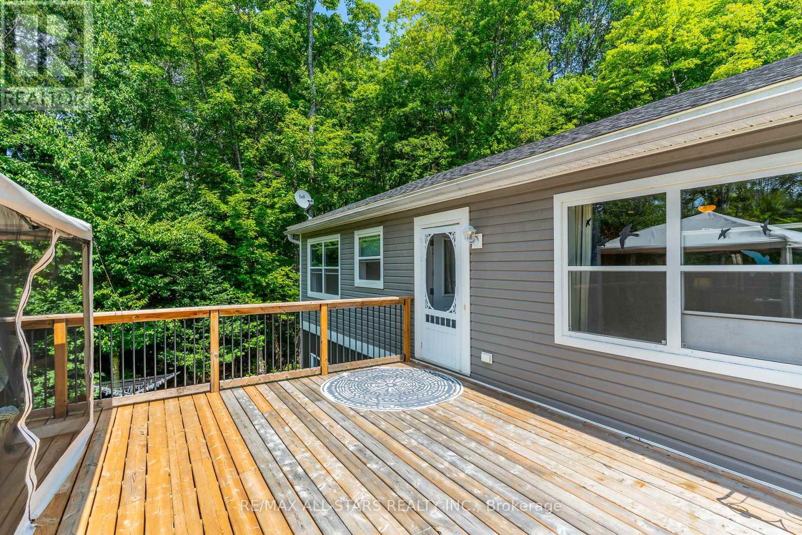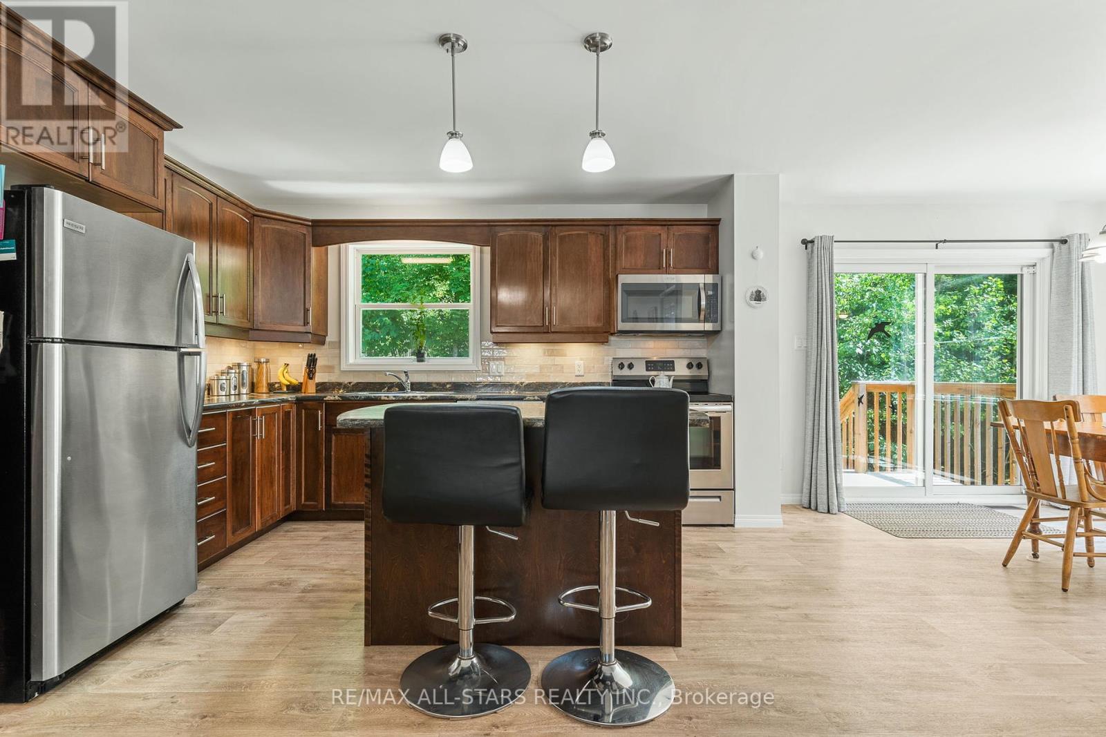 Tucked away on a quiet township road just 10 minutes form Haliburton, this well maintained raised bungalow offers the perfect mix of comfort, privacy, and outdoor adventure.  Set on a peaceful 1.8 -acre lot, this 4-bedroom, 2-bathroom home is only 7 years old and move-in ready.  The main floor features a bright, open-concept layout with a modern kitchen, stainless steel appliances, and a dedicated dining space framed by large windows that bring in views of the surrounding forest.  The spacious living area includes a walkout to a large deck. Ideal for entertaining, relaxing or grilling with friend and family. Downstairs, the finished lower level offers incredible flexibility with a generous rec room, a fourth bedroom, 3-piece bathroom and a dedicated laundry/utility room. A walkout leads directly to the covered carport providing sheltered parking or extra storage for outdoor gear. Just a short stroll down the road brings you to municipal lake access, where you can enjoy swimming at the sandy shoreline or launch your boat for fishing and exploring the waters of Spruce and Drag Lakes (id:51158)