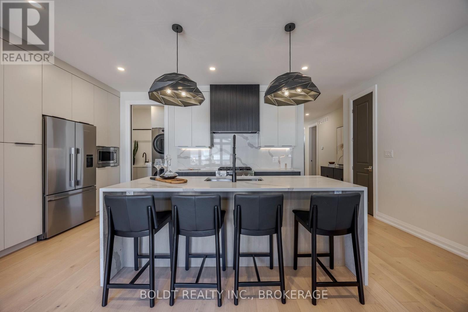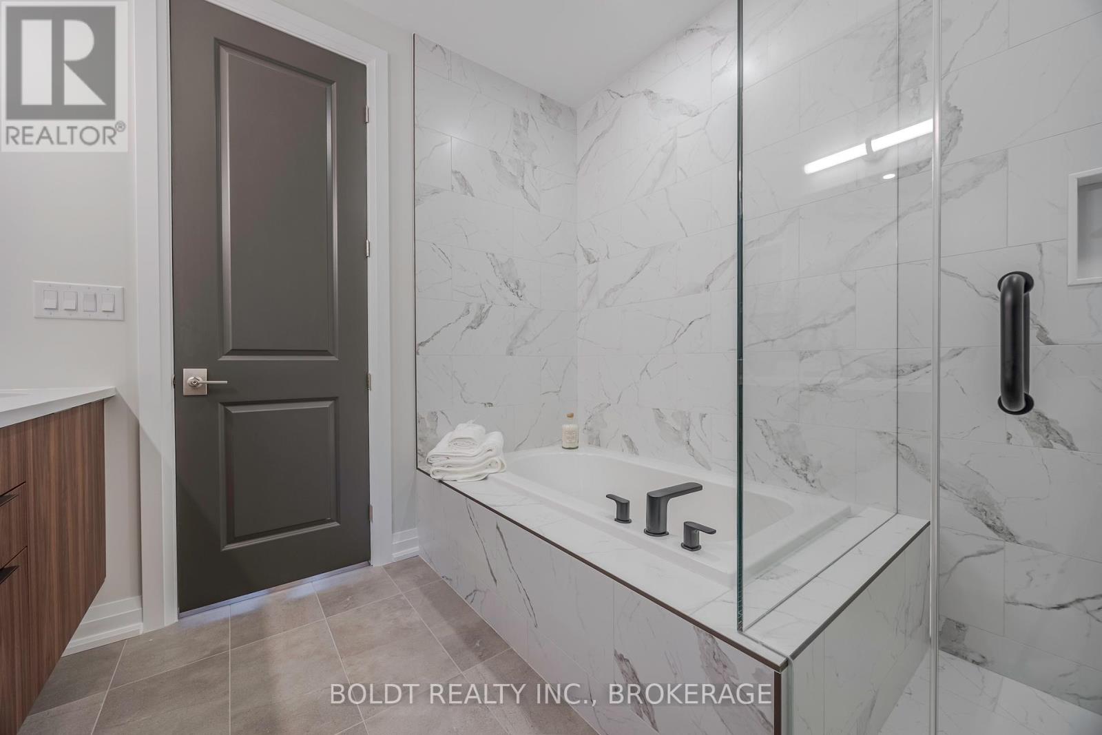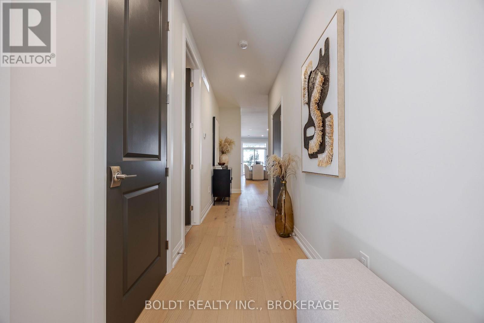 FOR LEASE! IMMEDIATE POSSESSION AVAILABLE! Welcome to 205 St. David's Road, Unit #11, an exquisite new 1428 sq ft condo townhome with an attached double garage, ideally situated in Thorold's convenient neighborhood just minutes from St. Catharines, Thorold's downtown core, and Highway 406 for effortless commuting. Enjoy proximity to schools, shopping, restaurants, parks, Brock University, and essential amenities. This beautiful bungalow townhome features a spacious, well-designed main floor with 9' ceilings, 8' doors, engineered hardwood flooring, pot lighting and tasteful neutral decor. The custom open-concept kitchen showcases quartz countertops, a large center island with breakfast bar, and stainless-steel appliances. Relax in the bright living room with a gorgeous 42'' electric fireplace and access the expansive raised covered wood deck, complete with a staircase leading down to the rear yard. Convenient main floor laundry includes a sink and stackable washer & dryer. Two generous bedrooms include a primary suite with a walk-in closet and a luxurious 5-piece ensuite featuring a tub, glass walk-in shower, and double sinks. An additional 4-piece bathroom with a built-in linen closet adds convenience. The unspoiled basement offers ample potential for additional living space and plenty of storage. Outside, an exposed aggregate concrete double drive enhances curb appeal. Move-in ready, this stunning townhome is perfect for those seeking comfort, convenience, and modern style in a prime location. $3500/month + heat, hydro & HWT rental. Water included. No pets and non-smokers preferred. (id:51158)