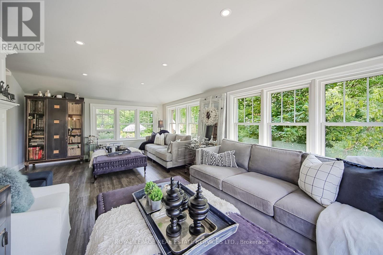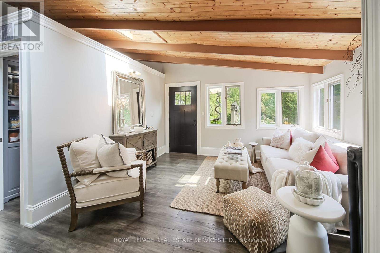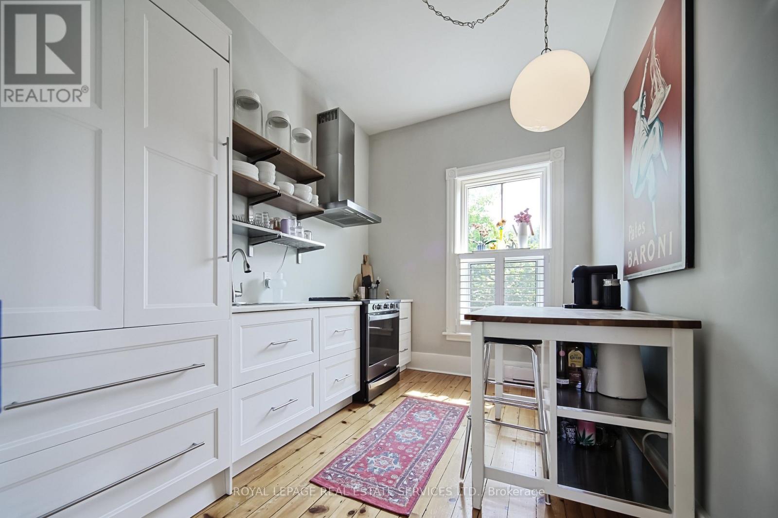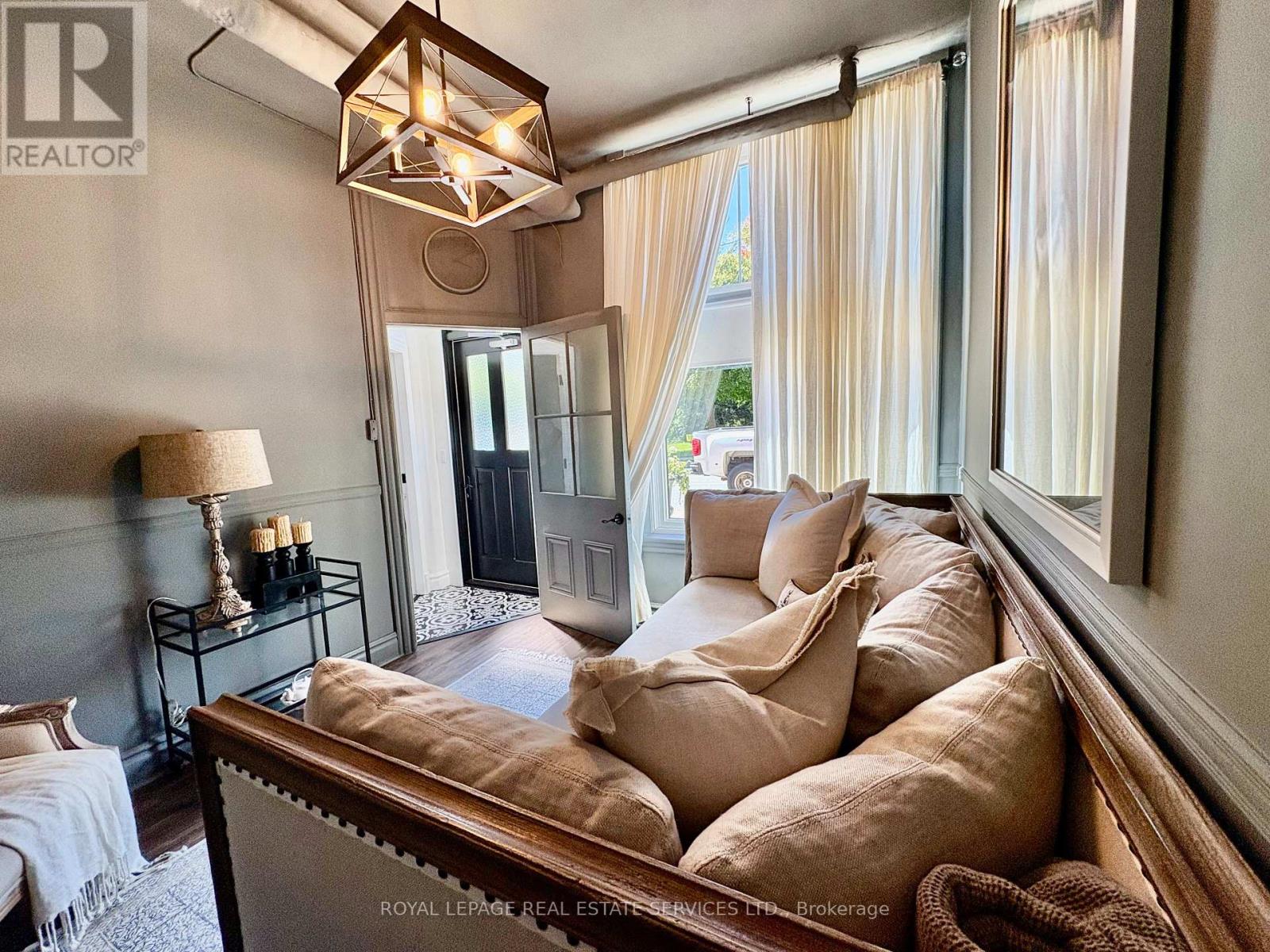 Renovated Mixed-Use Gem on Main Street. This stunning circa 1890 build blends historic charm with modern updates and offers mixed-use zoning in the heart of Campbellville across from Conservation Area. All four levels are above grade thanks to the unique topography, providing exceptional natural light and flexibility throughout. The layout is currently configured as separate residential units for multi-generational living. The Street Level features its own entrance off Main Street, a large family room, bedroom/office, full bath and interior access to storage/garage. The Main Floor features 10' ceilings, 8' doorways, windows on all four sides and rich hardwood floors. The beautifully reno'd kitchen incl.: quartz counters, floor to ceiling cabinets, a side-by-side fridge/freezer, Wolf gas stove, s/s dishwasher, views of the outdoors plus large pantry. A welcoming family room with vaulted ceiling walks out to the terrace & backyard. The spacious living room offers a gas fireplace and windows on three sides and the expansive dining room sits at the heart of the home. Two bedrooms, a stylish 4-piece bath and a laundry room with quartz counters complete this level. The Second Floor (with separate access) has pine floors, a full kitchen, living room, bedroom, large closet. The Top Floor Loft/Bedroom is an open space with tin-clad dormer ceilings, north/south views, pine floors and a privacy door. Outside enjoy mature landscaping, a pergola, fire pit, private terraces, a workshop and storage/garage. Private driveway for 2+ cars. Whether you're looking to continue as a multi-generational home, open a professional office or explore other permitted uses, this property offers incredible flexibility and value. Campbellville is a hub for outdoor enthusiasts with access to Hilton Falls, Kelso and cycling routes like the Limehouse Loop, Escarpment View and Heat Map 100. With its unique mixed zoning, flexible layout and scenic location, this is a rare and exceptional offering! (id:51158)