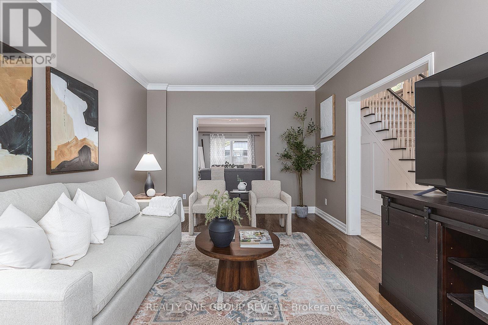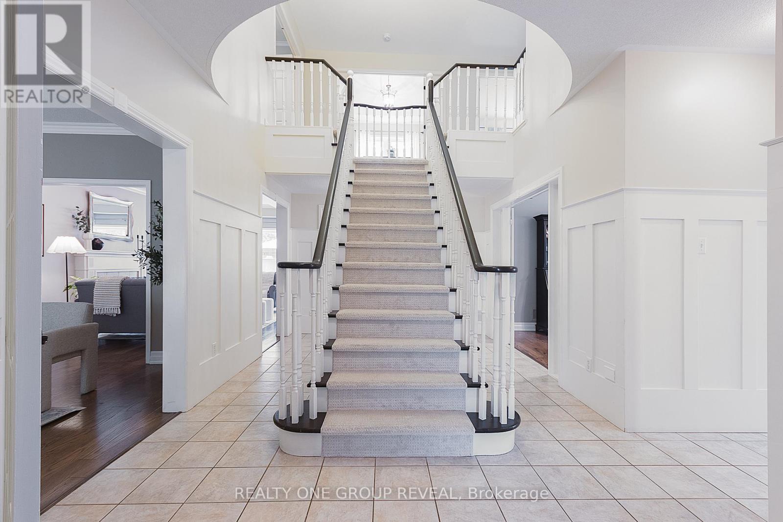 Tucked away on a private cul-de-sac in the established Queens Common community, this beautifully designed Monarch built model home offers abundant space and versatility for multigenerational living with the elusive grand Scarlette O' Hara staircase entrance. Backing onto lush parkland, conservation area, and a peaceful creek, the property delivers privacy and serene views from every window and established perennial garden beds. Inside, find an expansive open layout highlighted by a large family room, elegant dining and living spaces, and a dedicated breakfast nook perfect for daily gatherings. The upper-floor office and a spacious attic loft with ample storage areas, bedroom and washroom provide ideal options for home offices, guest suites, or retreats for teens and in-laws. Four well-sized bedrooms, including a grand principal suite with an elevated sitting area, and two bedrooms in the basement suite with full kitchen, living area and egress window ensure room for everyone. Enjoy convenient access to top-rated schools, mature parks, and vibrant community amenities including downtown Whitby, the Whitby Library, and Highways 401 and 412 only minutes away for commuters. Modern upgrades include an EV charger for electric vehicles, Central Vacuum and 2x electrical panels in basement. Set among mature trees and proud neighbours, this home invites you to relax in its tranquil setting while still being close to every convenience. Experience the best in luxury living, privacy, and nature all in one exceptional residence. (id:51158)