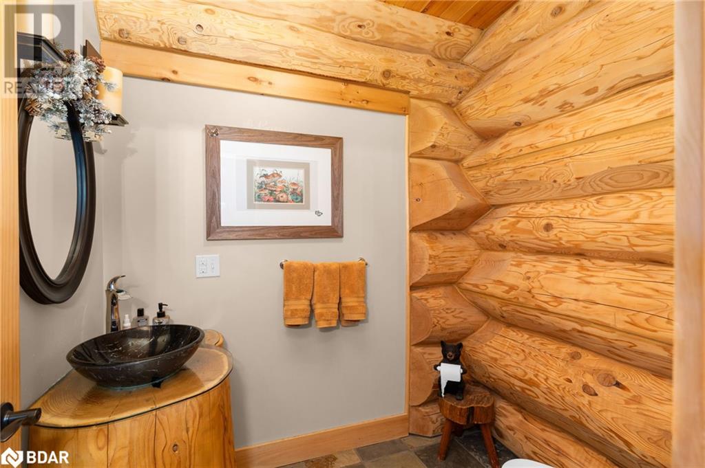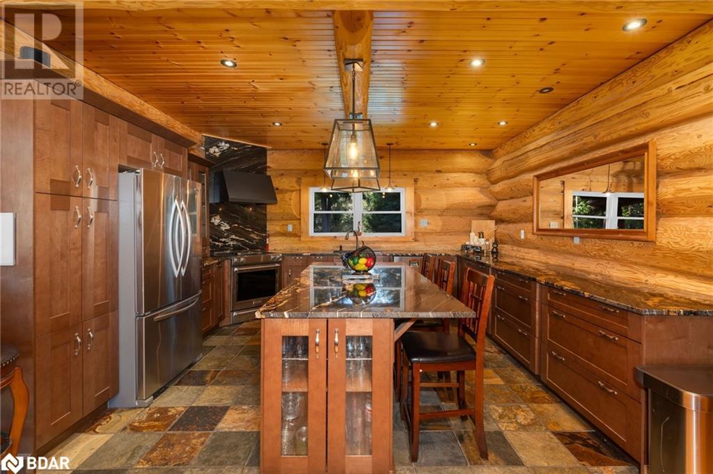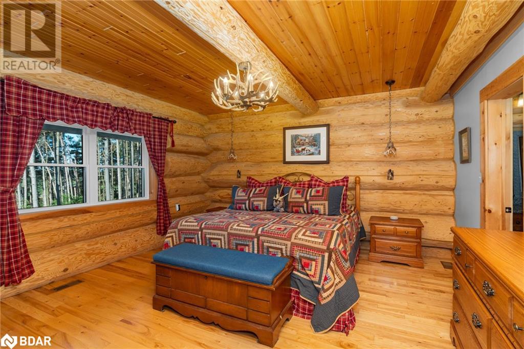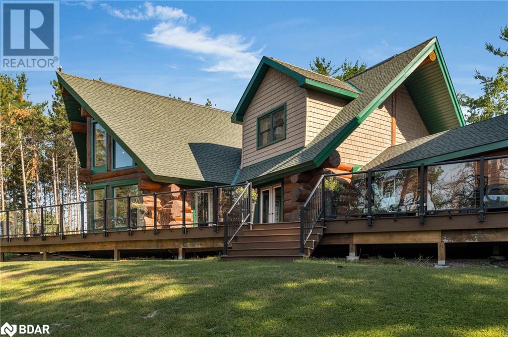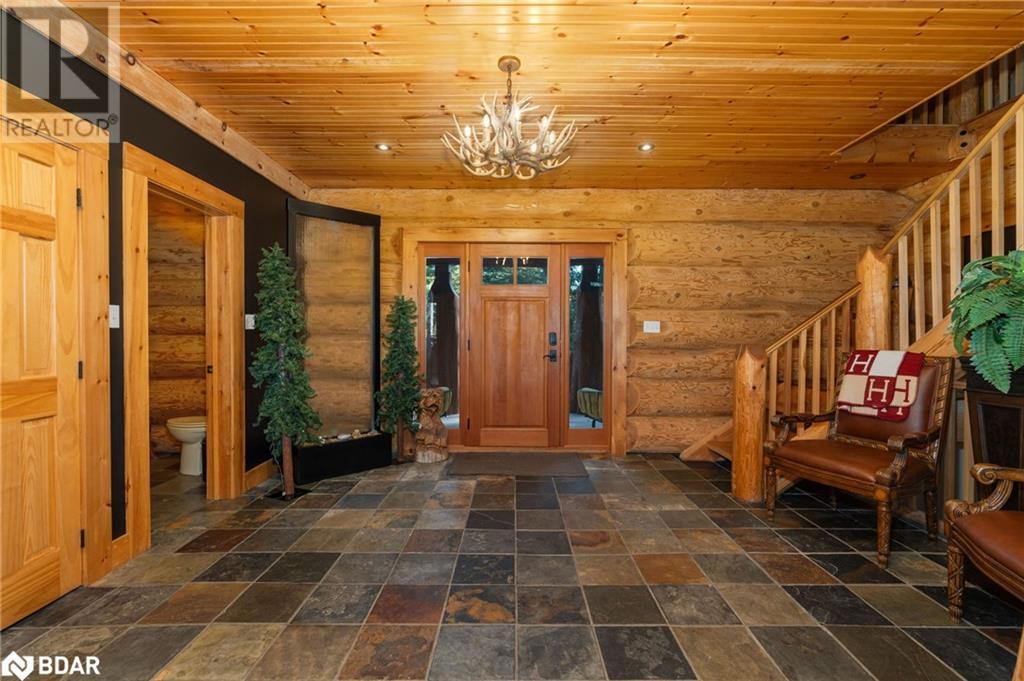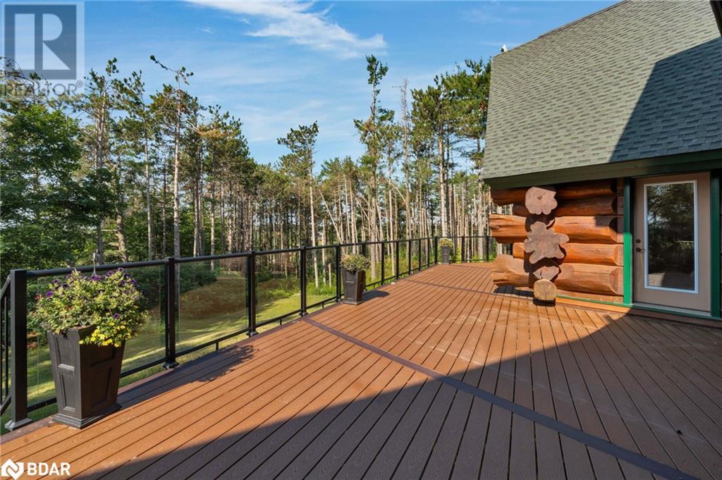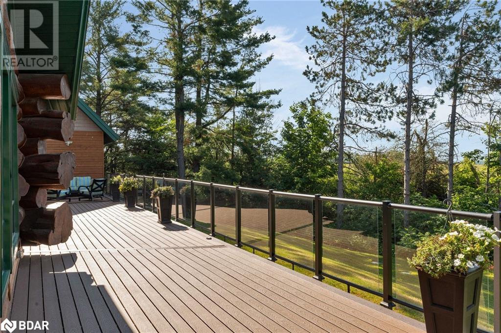 Prepare to be awestruck by this one-of-a-kind custom-built log home crafted from hand-peeled Western Red Cedar. Nestled on a private, tree-lined 2.1-acre lot at the end of a peaceful cul-de-sac, this spacious home offers over 5,900 sq. ft. of warm and inviting living space that embodies true character and charm. Exquisite craftsmanship and superior quality are evident in every detail of this home, from its 6 bedrooms and 4.5 baths to its energy-efficient geothermal system, while the Western Red Cedar construction guarantees many lifetimes of low-maintenance beauty. Step into the awe-inspiring great room, where soaring vaulted ceilings and a stunning stone fireplace anchor the home with both grandeur and coziness, seamlessly flowing into a chef’s kitchen equipped with granite countertops, stainless steel appliances, and ample prep space. At the same time, the adjacent dining area offers the perfect setting for intimate family meals or unforgettable gatherings. The main floor master suite is a sanctuary in itself, complete with an ensuite bathroom and walk-in closet. Every corner of this home exudes comfort, from the private upper-level den with scenic views and ensuite bedrooms that provide a retreat-like experience for family and guests, to the radiant-heated lower level, an inviting haven perfect for cozy winter evenings or year-round entertaining. The attached radiant-heated garage with smart openers includes an incredible 650 sq. ft. loft, ideal for a home office, studio, or creative endeavours. Meanwhile enjoy the outdoors from the new 1,100 sq ft back deck or charming front porch surrounded by armor stone landscaping, gardens and walkways. A Year-Round Escape located just 7 minutes from Orillia and 1 hour from Toronto, this home is perfectly positioned for convenience and leisure. Whether you're exploring nearby lakes, trails, or ski hills, or enjoying the magical ambiance of the home during the holidays, this property offers an unparalleled lifestyle. (id:51158)