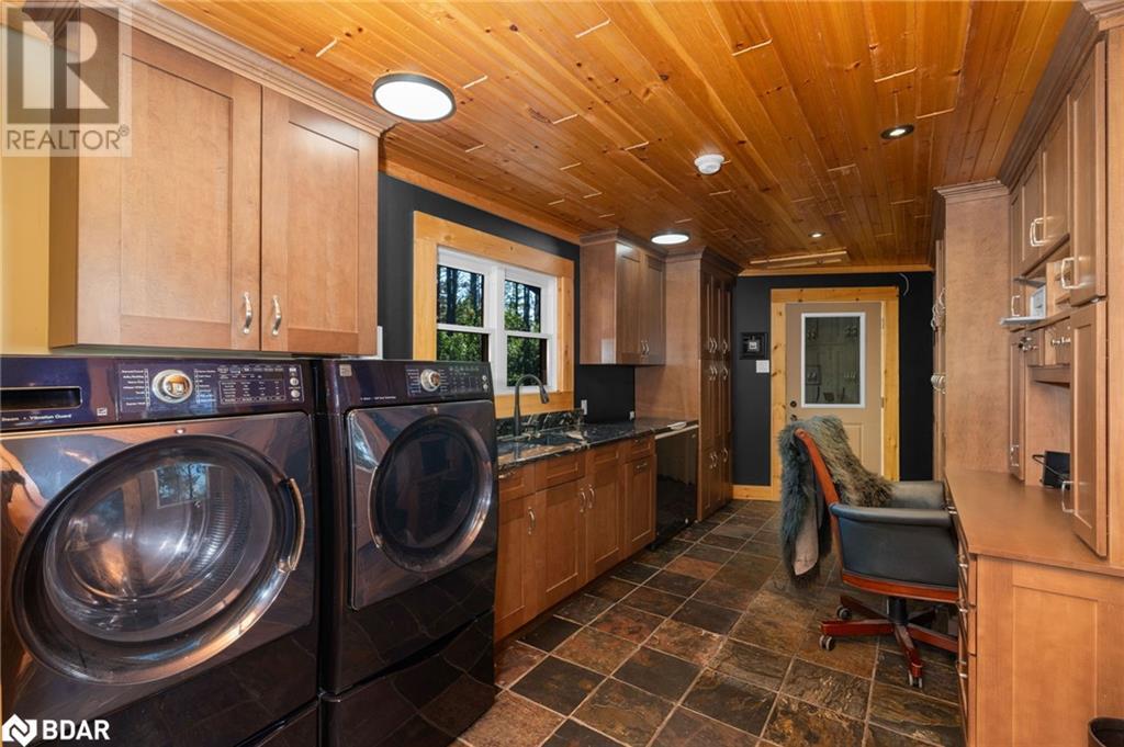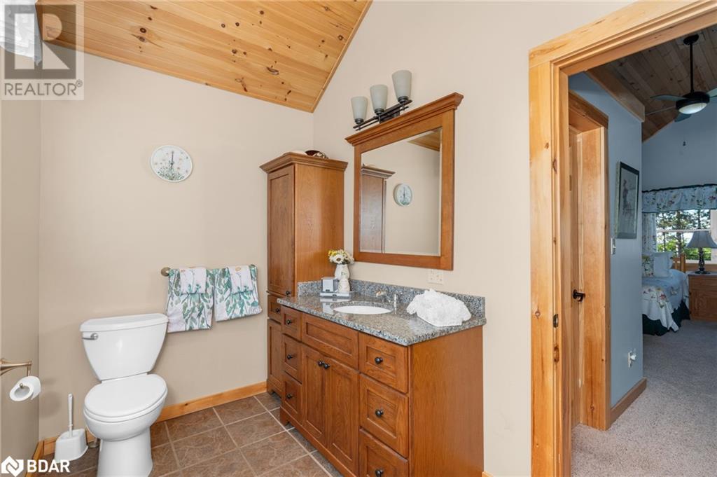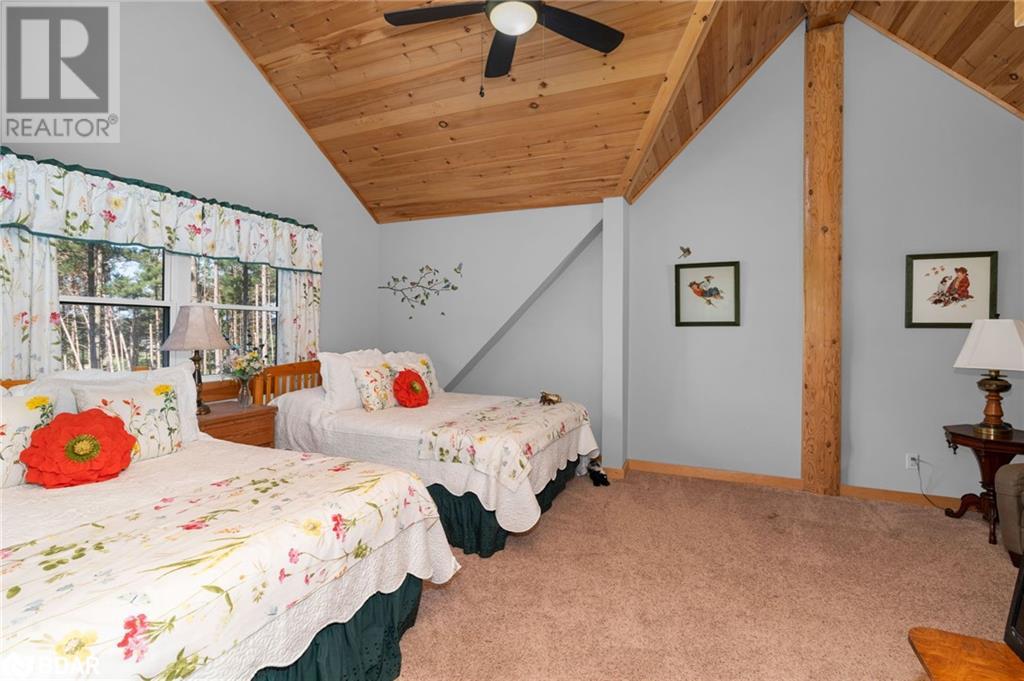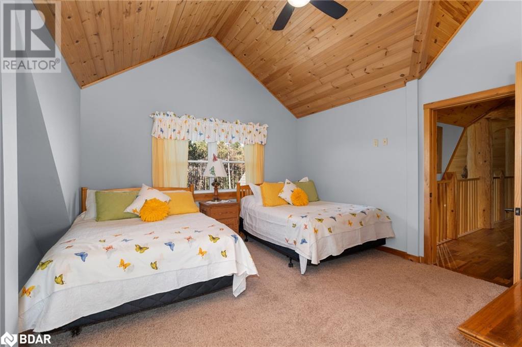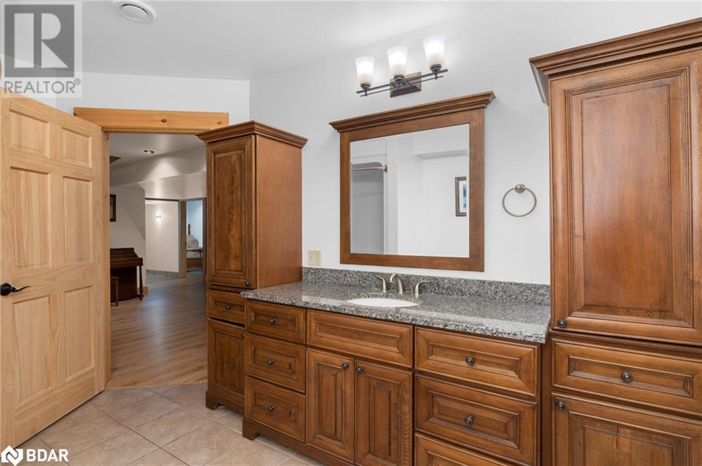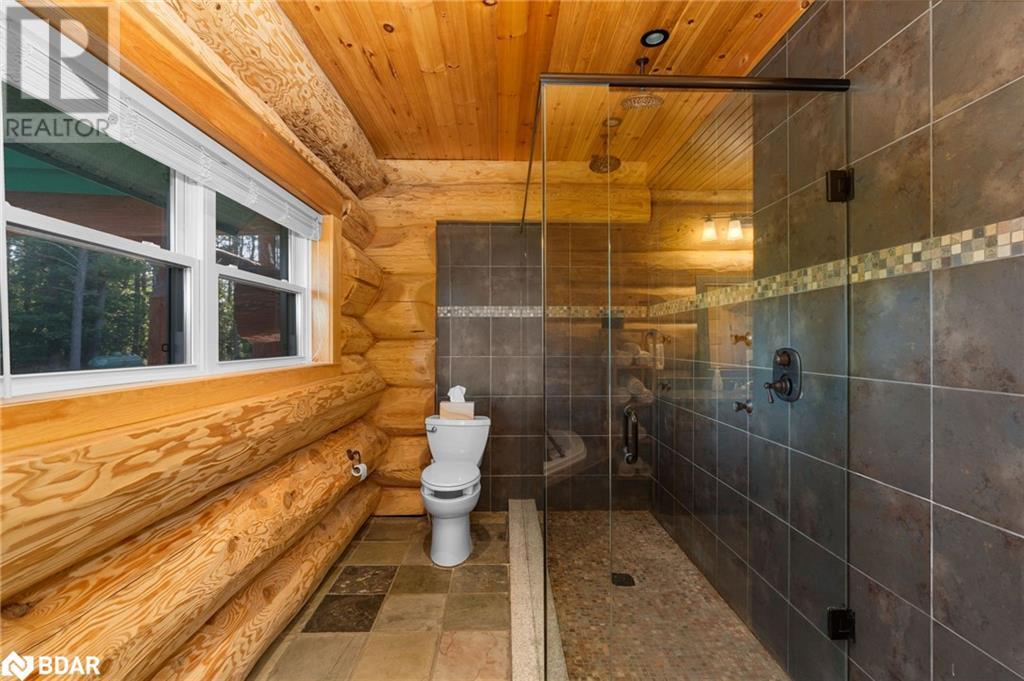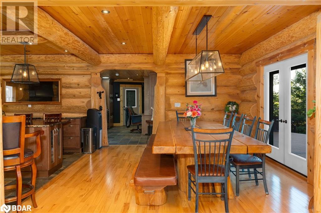 Prepare to be awestruck by this one-of-a-kind custom-built log home crafted from hand-peeled Western Red Cedar. Nestled on a private, tree-lined 2.1-acre lot at the end of a peaceful cul-de-sac, this spacious home offers over 5,900 sq. ft. of warm and inviting living space that embodies true character and charm. Exquisite craftsmanship and superior quality are evident in every detail of this home, from its 6 bedrooms and 4.5 baths to its energy-efficient geothermal system, while the Western Red Cedar construction guarantees many lifetimes of low-maintenance beauty. Step into the awe-inspiring great room, where soaring vaulted ceilings and a stunning stone fireplace anchor the home with both grandeur and coziness, seamlessly flowing into a chef’s kitchen equipped with granite countertops, stainless steel appliances, and ample prep space. At the same time, the adjacent dining area offers the perfect setting for intimate family meals or unforgettable gatherings. The main floor master suite is a sanctuary in itself, complete with an ensuite bathroom and walk-in closet. Every corner of this home exudes comfort, from the private upper-level den with scenic views and ensuite bedrooms that provide a retreat-like experience for family and guests, to the radiant-heated lower level, an inviting haven perfect for cozy winter evenings or year-round entertaining. The attached radiant-heated garage with smart openers includes an incredible 650 sq. ft. loft, ideal for a home office, studio, or creative endeavours. Meanwhile enjoy the outdoors from the new 1,100 sq ft back deck or charming front porch surrounded by armor stone landscaping, gardens and walkways. A Year-Round Escape located just 7 minutes from Orillia and 1 hour from Toronto, this home is perfectly positioned for convenience and leisure. Whether you're exploring nearby lakes, trails, or ski hills, or enjoying the magical ambiance of the home during the holidays, this property offers an unparalleled lifestyle. (id:51158)