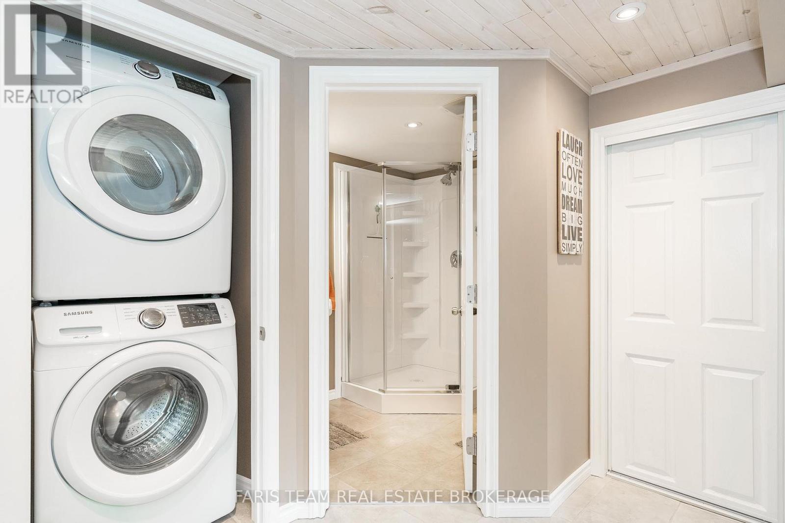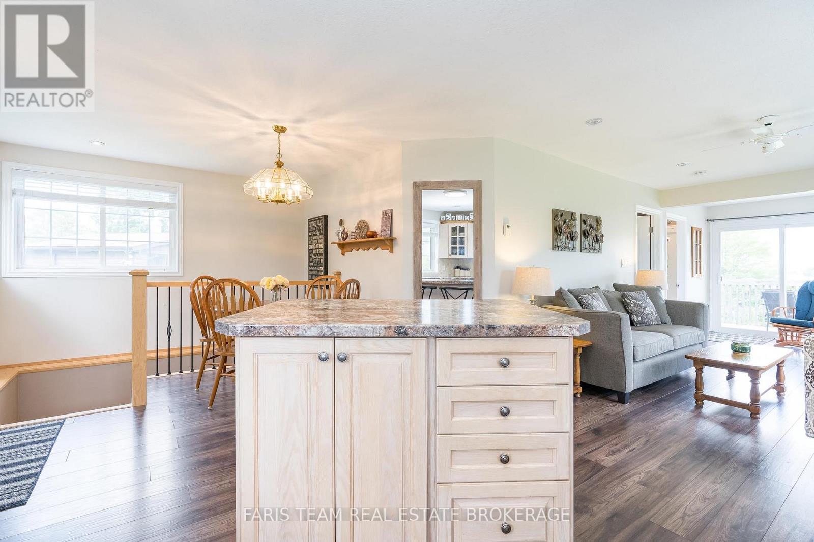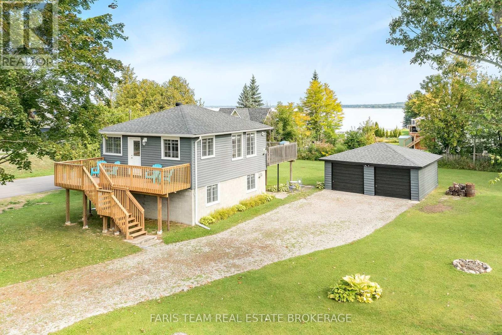 Top 5 Reasons You Will Love This Home: 1) Enjoy peace of mind with this fully winterized, 2-level home or cottage featuring updated windows, a newer roof, spray-foamed lower level, modern vinyl siding, and a brand-new front deck (2025); with no money left to spend, its ready for year-round enjoyment or rental income immediately 2) Wake up to direct water views and enjoy deeded access to the Georgian Bay, complete with a private boat launch and dock, perfect for boating, fishing, or relaxing by the bay, without the waterfront taxes 3) The interior of this home delivers a bright open-concept layout, perfect for both everyday living and entertaining where you will enjoy upgraded flooring, new carpeting, updated bathrooms, and tongue and groove ceilings, all thoughtfully finished with quality materials, also enjoy a small formal dining area creating an intimate space for meals and walkouts to both the front and rear raised decks extending your living space outdoors; appreciate a central vacuum system and excellent in-law suite potential, delivering both function and flexibility 4) Tucked away on a private road with full-time access and part of a great homeowners association, this property is still just minutes from Highway 12 and Highway 400, offering both seclusion and convenience 5) Situated on a flat, oversized lot, this property features a two-car garage with a concrete pad, beautifully landscaped perennial gardens, and a cozy firepit, with plenty of room for vehicles, recreational toys, and outdoor gatherings, and just walking distance to the Tay Trail, perfect for hiking, cycling, or snowmobiling in the winter. 763 above grade sq.ft. plus a finished lower level. (id:51158)