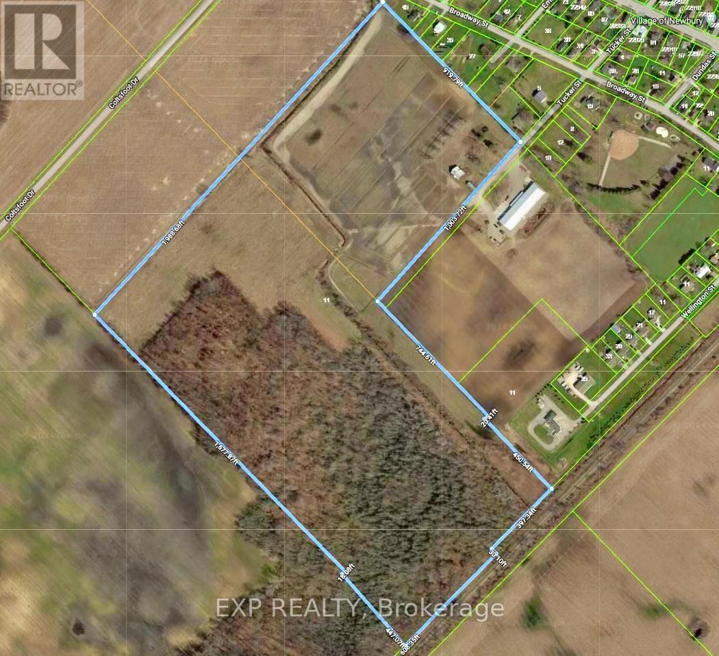 MLS: X12261479 For sale : 11 TUCKER STREET Incredible opportunity to own 69.76 acres of certified organic farmland in Newbury & Southwest Middlesex. With 30 acres of workable land and direct access from paved Tucker Street, this property sits beside a growing residential subdivision offering both agricultural value and future development potential. About 20 acres fall in Newbury. The Remaining falls in Southwest Middlesex. The land features a 104′ x 50′ insulated metal shop with 16′ ceilings, three 14′ x 12′ overhead doors, a 10′ x 8′ loading dock door, walk-in cooler, Hydro vegetable cooler, two washrooms, shower, kitchenette with stove, washer/dryer, and office space. Two fully serviced bunkhouses include kitchens, baths, heat & A/C ideal for seasonal workers or extra space. A roadside shed and a 40′ x 20′ barn (needs repair or removal) add further utility. Water and drainage are excellent with a large irrigation pond (approx. 75′ x 150′, 25′ deep), a surrounding creek, and tiled fields. City water, sewer, and gas are at the lot line; currently serviced by propane and 200 Amp electrical. The Township has shown a favorable stance toward rezoning, making this a smart investment for farmers, developers, or agri-business owners. Don’t miss this rare chance to secure a versatile property with strong income potential and long-term upside. Development potential. Seller may be open to vendor takeback. Book your showing today! (id:51158)