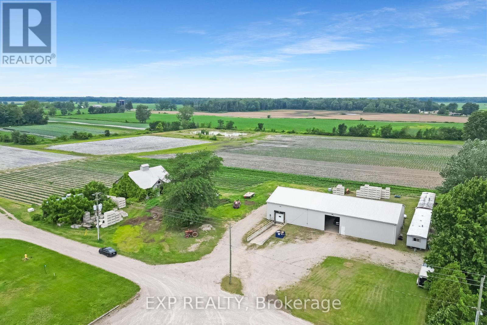 Own 69.76 acres of certified organic farmland in Newbury & Southwest Middlesex. With 30 acres of workable land and direct access from paved Tucker Street, this property sits beside a growing residential subdivision offering both agricultural value and future development potential. Village of Newbury capacity at 44.48% of rated 297m3 for wastewater treatment & sewage. The land features a 104' x 50' insulated metal shop with 16' ceilings, three 14' x 12' overhead doors, a 10' x 8' loading dock door, walk-in cooler, Hydro vegetable cooler, two washrooms, shower, kitchenette with stove, washer/dryer, and office space. Two fully serviced bunkhouses include kitchens, baths, heat & A/C ideal for seasonal workers or extra space. A roadside shed and a 40' x 20' barn (needs repair or removal) add further utility. Water and drainage are excellent with a large irrigation pond (approx. 75' x 150', 25' deep), a surrounding creek, and tiled fields. City water, sewer, and gas are at the lot line; currently serviced by propane and 200 Amp electrical. The Township has shown a favorable stance toward rezoning, making this a smart investment for farmers, developers, or agri-business owners. Don't miss this rare chance to secure a versatile property with strong income potential and long-term upside. Development potential. Seller may be open to vendor takeback. Book your showing today! (id:51158)