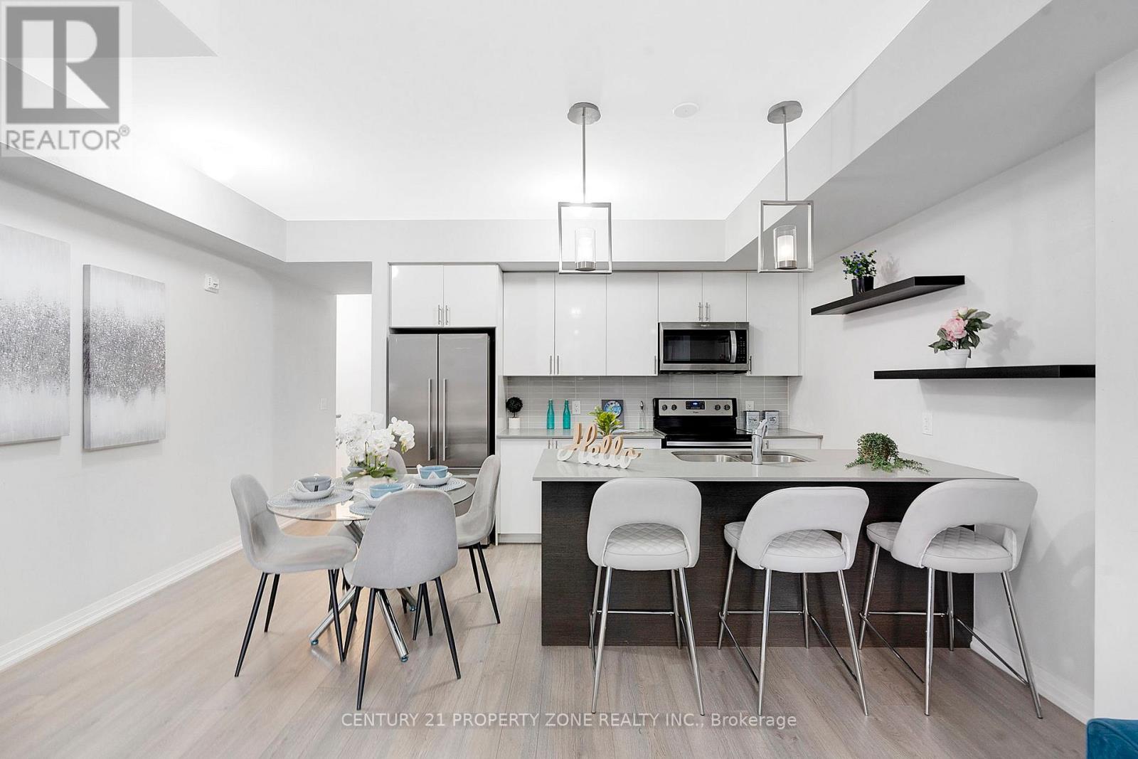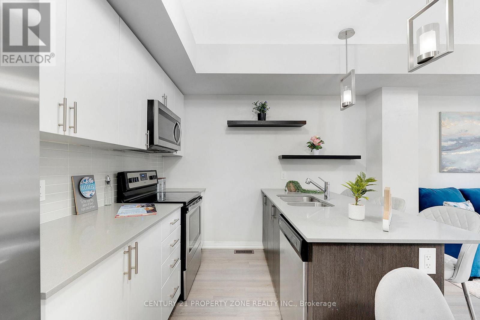 $318.45 MonthlyStylish 2-Bedroom, 3-Washroom Main-Level Stacked Townhome in the Heart of Milton. Welcome to this beautifully upgraded, move-in-ready main-level stacked townhome located in one of Milton's most sought-after and vibrant communities. Thoughtfully designed for modern living, this spacious 2-bedroom, 3-washroom home offers an exceptional blend of comfort, style, and everyday convenience. Step inside to find 9-foot smooth ceilings, upgraded laminate flooring, elegant trims, and tasteful mouldings that create a bright and sophisticated ambiance throughout. The contemporary kitchen is both functional and eye-catching, featuring quartz countertops, a designer backsplash, stainless steel appliances, and an oversized breakfast bar-ideal for casual dining and entertaining. The spa-inspired bathroom boasts a luxurious glass-enclosed super shower, creating a relaxing retreat. Additional highlights include modern lighting, ample storage, and all electrical light fixtures, window blinds, curtains, and rods. Enjoy an unbeatable, walkable lifestyle-just seconds to minutes from grocery stores, restaurants, cafés, gyms, the central library, community swimming pool, parks, walking trails, and arts and entertainment. Located across the street from an elementary school and daycare, and just minutes to downtown Milton, Milton GO Station, and Highway 401, this home offers outstanding connectivity and convenience. A rare and valuable bonus includes two secure underground parking spaces. Set in a quiet neighbourhood with friendly neighbours, this residence delivers comfort, functionality, and location in one complete package. (id:51158)