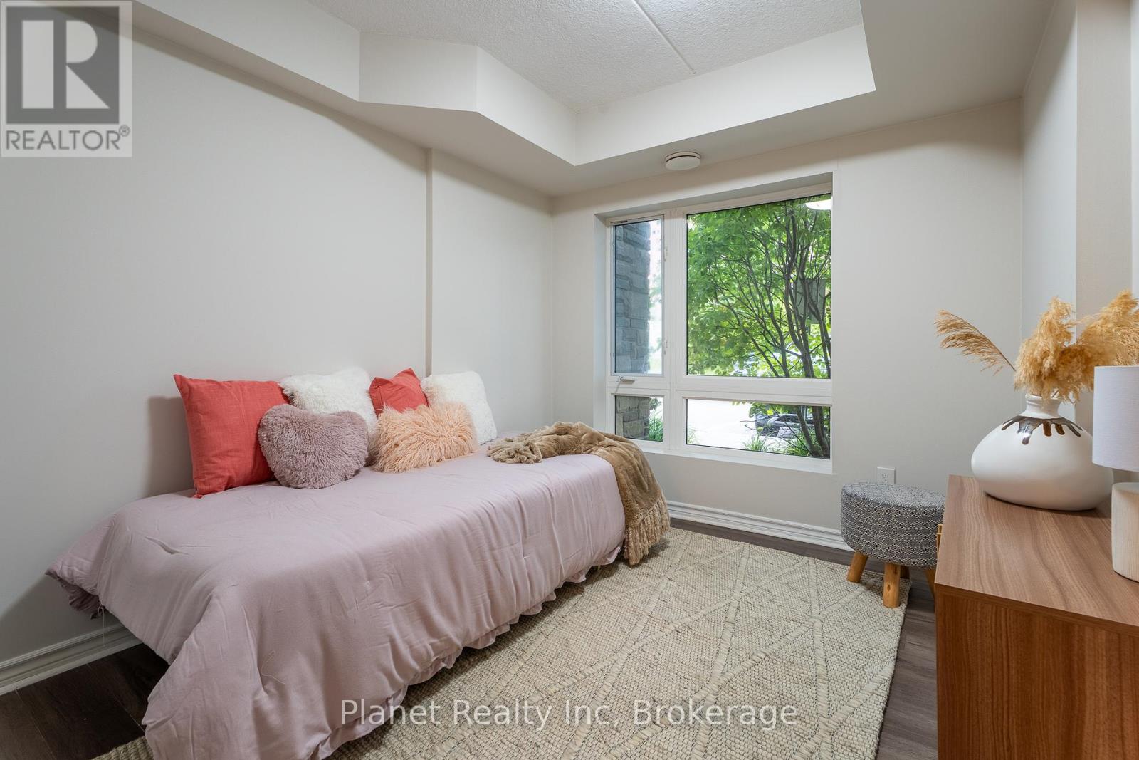 $341.45 MonthlyLocated right in the heart of the thriving South End, 39 Goodwin Drive is one of my favourite condos in the city for its unrivaled mix of value & convenience! This beautifully renovated 2-bedroom plus den suite combines style & substance in a great layout that's perfect for your day-to-day. Its southern exposure offers sun throughout the day, through both the living spaces & the bedrooms. A remodeled kitchen offers brand-new stainless appliances, gleaming white cabinetry & luxury quartz countertops. A functional den is the perfect work-from-home office, reading nook or play space; and the expansive in-suite laundry room features new, stackable washer & dryer and lots of room for storage. If that's not enough, on-site lockers are available to rent from the condo as well. Your unit features an owned parking space that is all yours, along with lots of visitor & on-street parking. Centrally-located steps to favourite dining spots State & Main and The Keg, plus Goodlife Fitness, Zehrs, the LCBO and more; you'll love having so much right at hand. And for the nights you want to spend out and about, you can catch a movie at Galaxy Cinemas, walk for ice cream at Chocolat Favoris or just enjoy the endless trails for which Westminster Woods is known. As a former resident of these condos, I know just how much you'll appreciate the incredible amenities nearby- and I could only wish my suite had looked as nice as this one! Don't miss out- book your exclusive tour today! (id:51158)