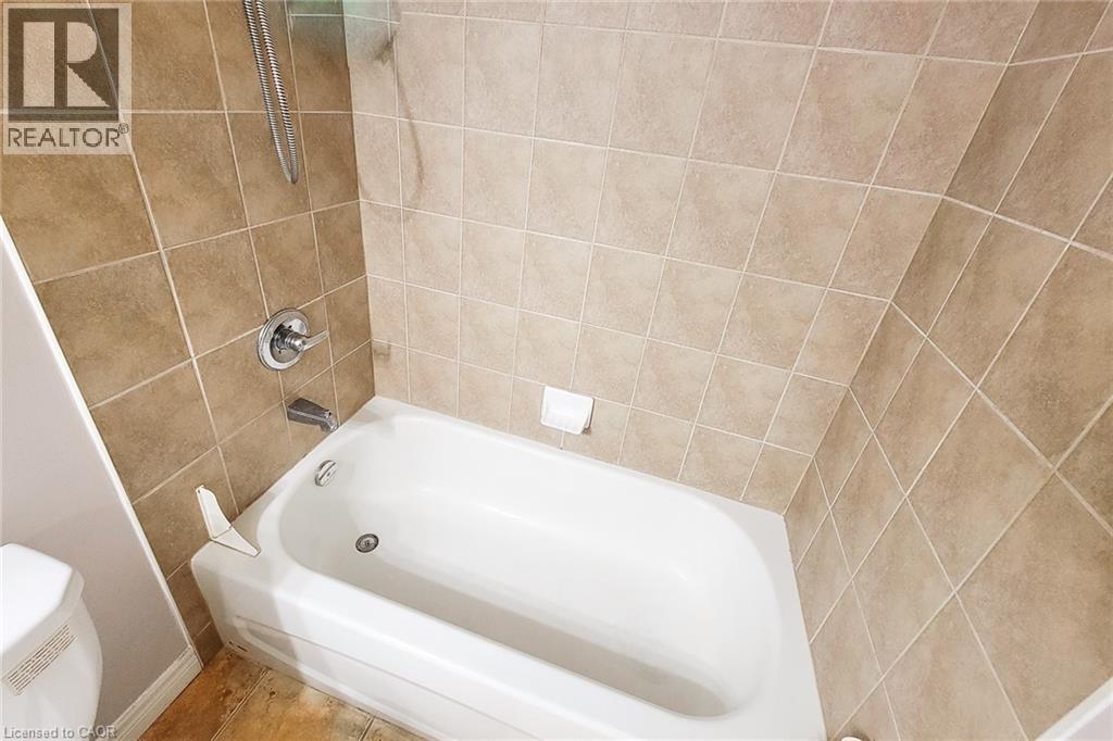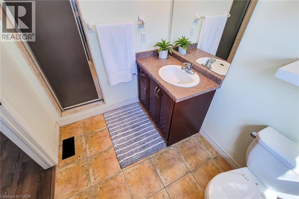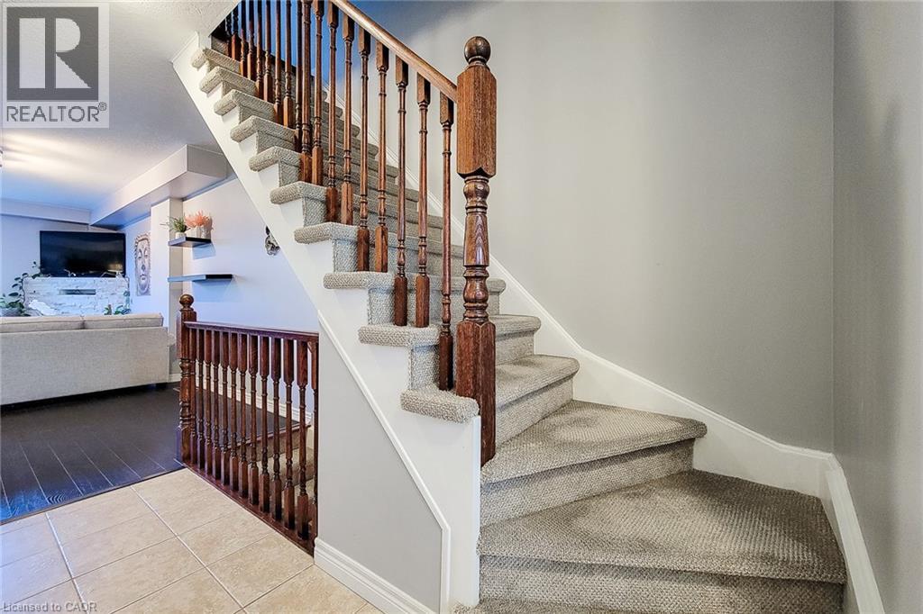Very well kept and beautiful 3 bedroom, 4 bath townhome in a prime Stoney Creek location with a short stroll to the lake! Open concept main floor features living/dining room combo with 9 foot ceilings and gas fireplace. Stunning kitchen with extended upper cabinetry, centre island with breakfast bar, stainless steel appliances and large eat-in area. Walk out to beautiful yard with concrete patio. Upper level hosts bright and welcoming primary bedroom with an ensuite, 2 large bedrooms with main 4 piece bathroom and convenient 2nd floor laundry. Finished lower level has huge rec room for entertainment and 2 piece bath. Laminated flooring on all 3 levels. Almost all windows (except patio door) are new in 2019. Close to schools, stores like Costco and parks with easy access to QEW and 10 minutes to the new Confederation GO station. (id:51158)
