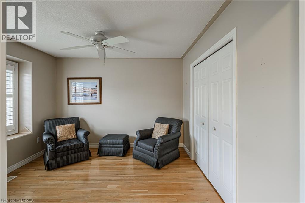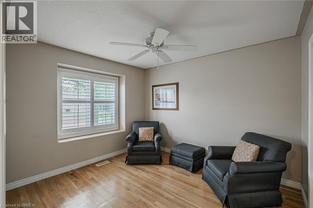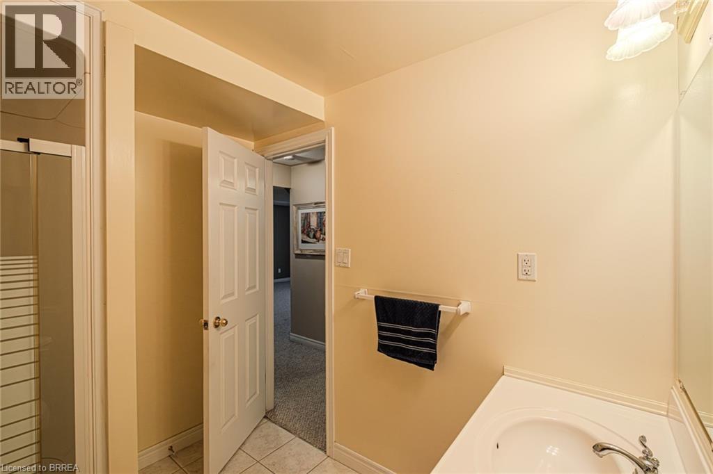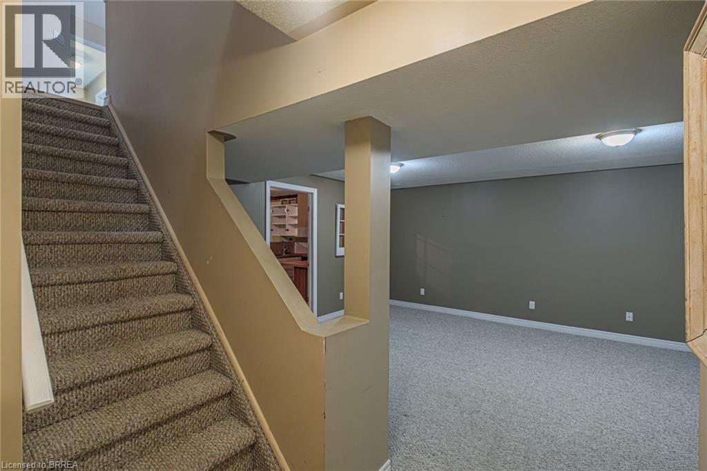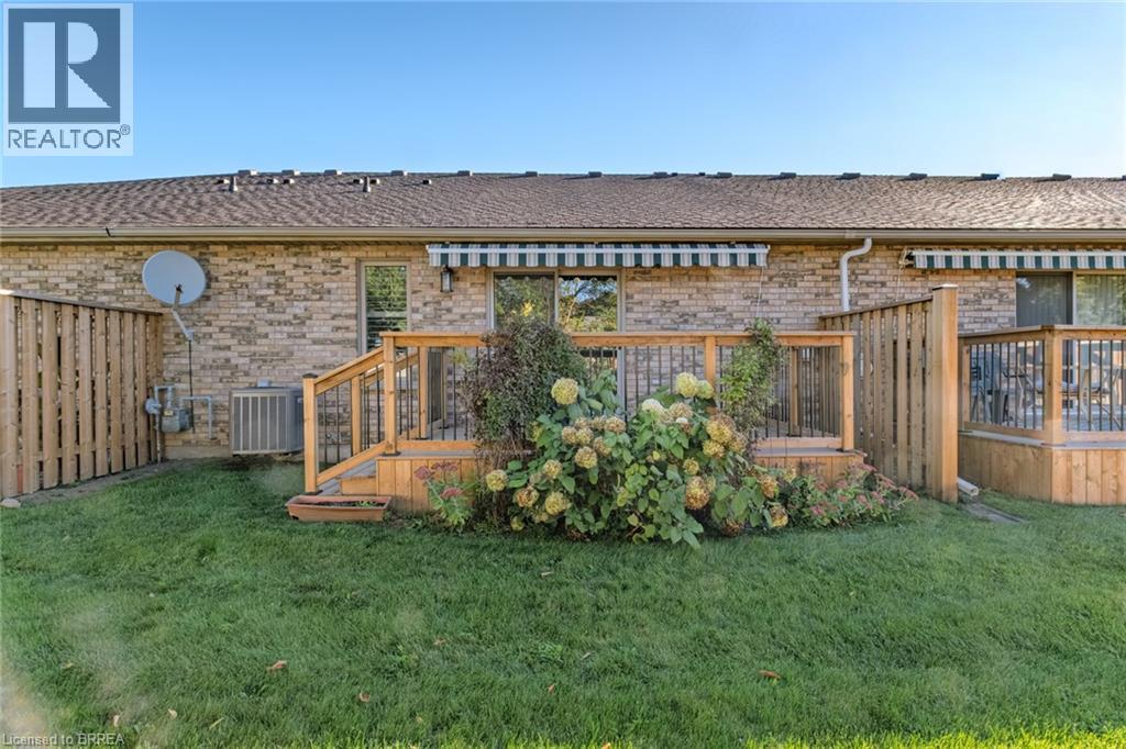 $364.27 MonthlyMAYFAIR SUBDIVISION. This is a fantastic location and one of Brantford's most desirable bungalow townhome complex's! Over 1700 square feet of finished living space and boasting vaulted ceilings with 2+1 bedrooms and 2 bathrooms. The open concept Great room encompasses a generous size kitchen with pennisula, loads of cabinetry and b-in dishwasher. The Living/dining room combo has a gas fireplace and patio door walk out to your own private deck. Convenient main floor laundry with access to a single car garage. The second bedroom on the main level is currently being used as a sitting room but could easily be made back into a bedroom The lower level is finished with a huge recreation room perfect for overflow entertaining. There is a 3 pc second bathroom with walk in shower, and a very large 3rd bedroom. Hi-efficiency F/air gas furnace and C/air are only 5 years young. This is the perfect retirement or first time buyer starter town! This small enclave of townhomes offers reasonable condo fees which cover all common area maintenance, windows, doors, roof and deck. Single car garage and private driveway plus visitor parking close by for guests. Less than a 5 minute drive to HWY 403, this is a great location for commuting. Ideally situated close to schools, parks, plaza shopping and the new Costco! (id:51158)